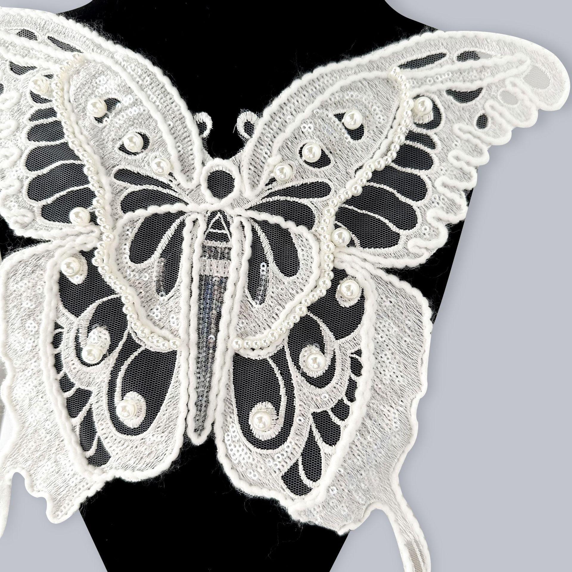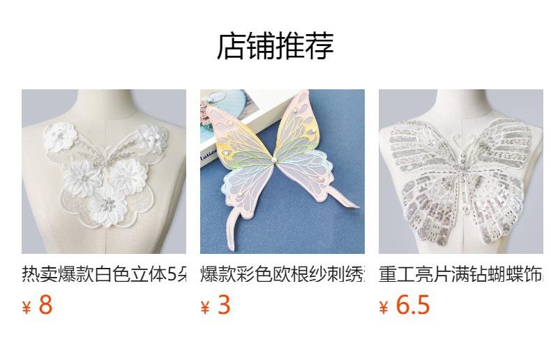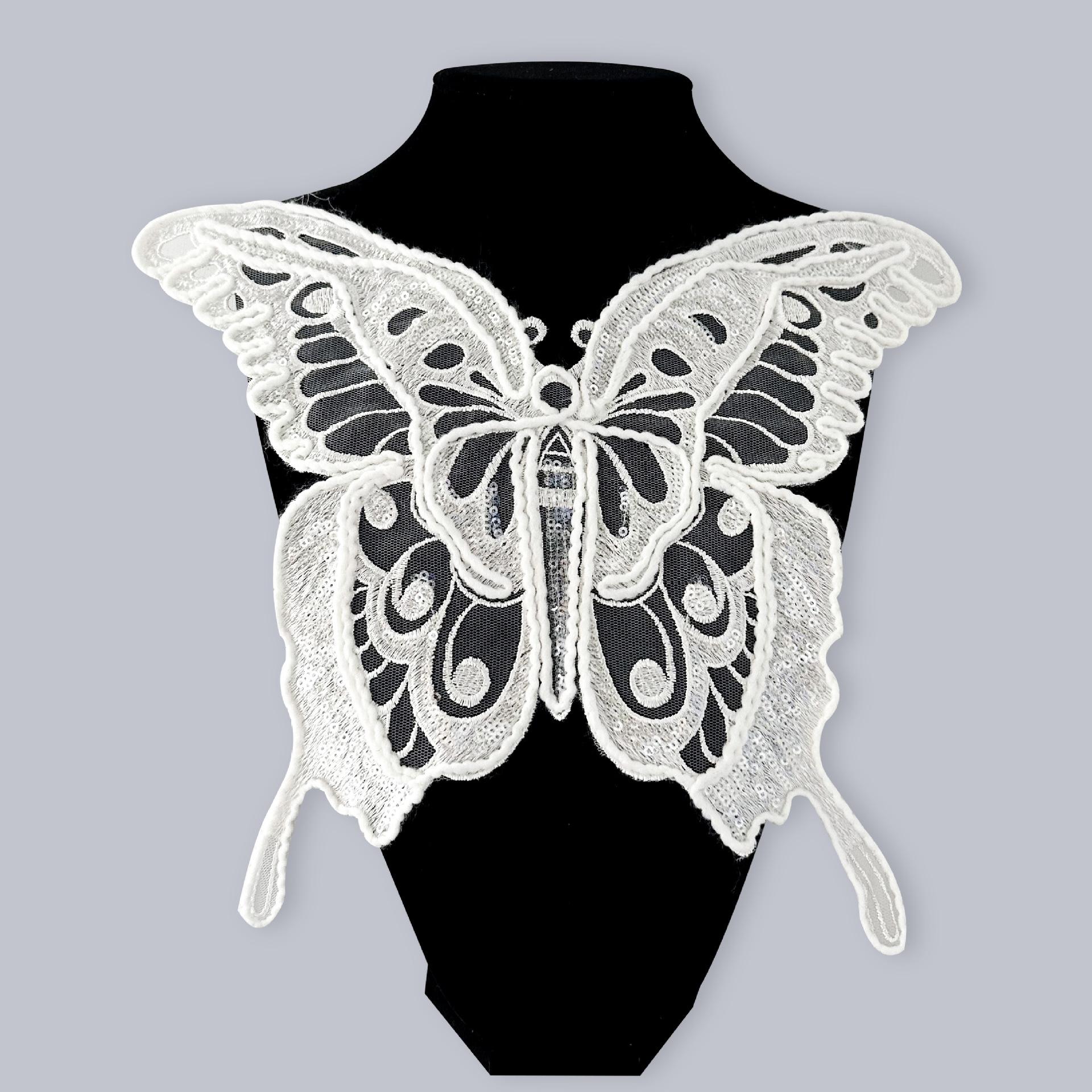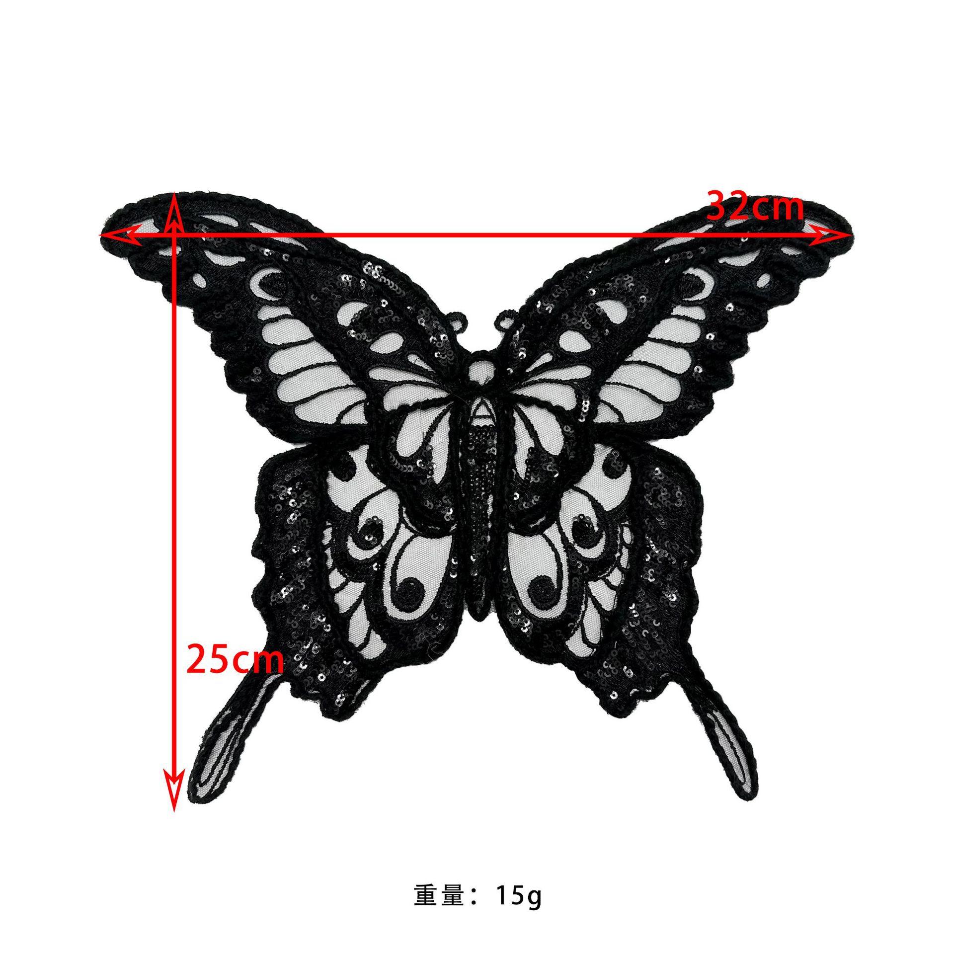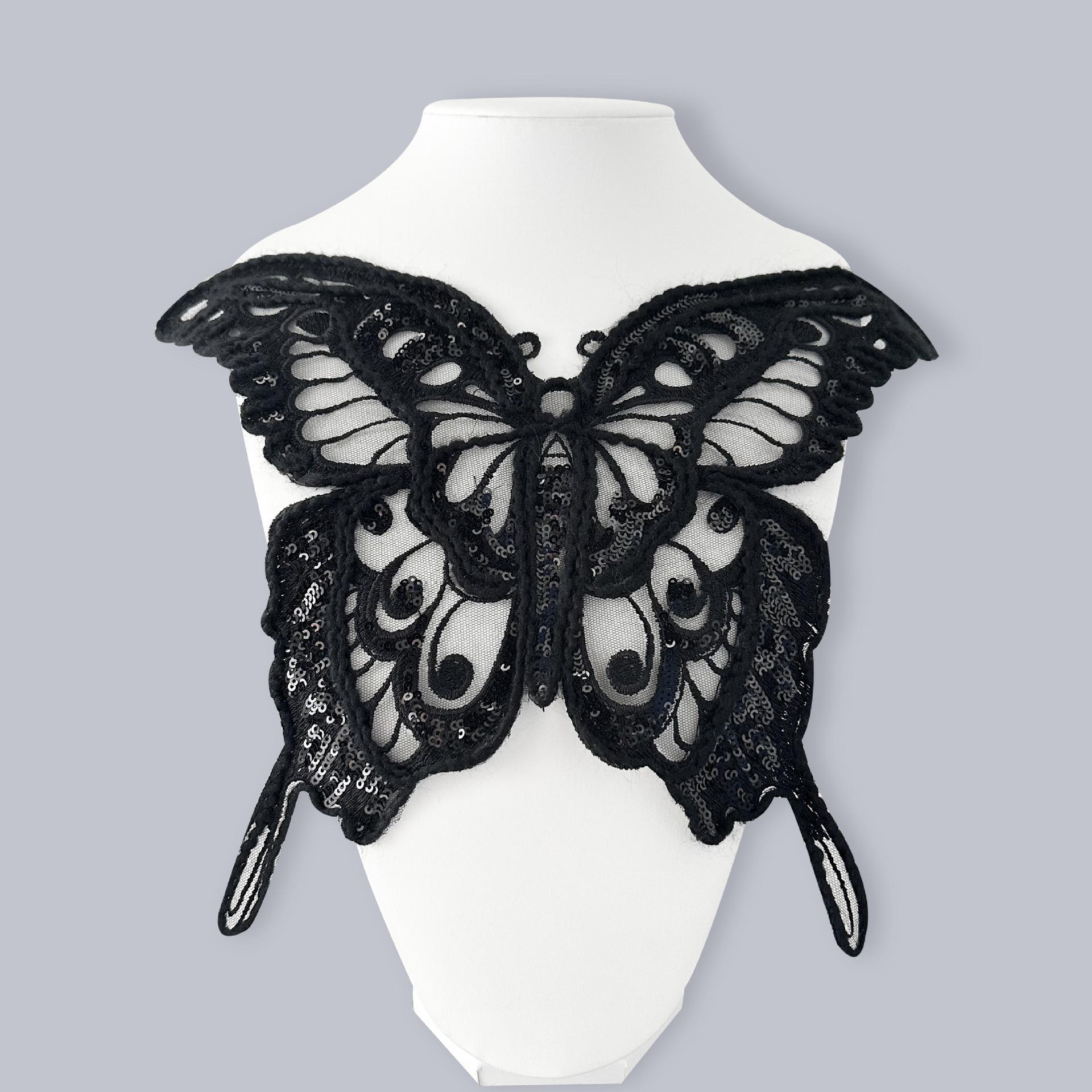 Parche de tela con mariposa de encaje bordado, bicolor, blanco y negro, para cuello, flor, accesorios de ropa, suministro de fábrica
