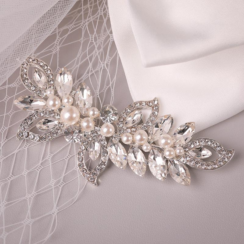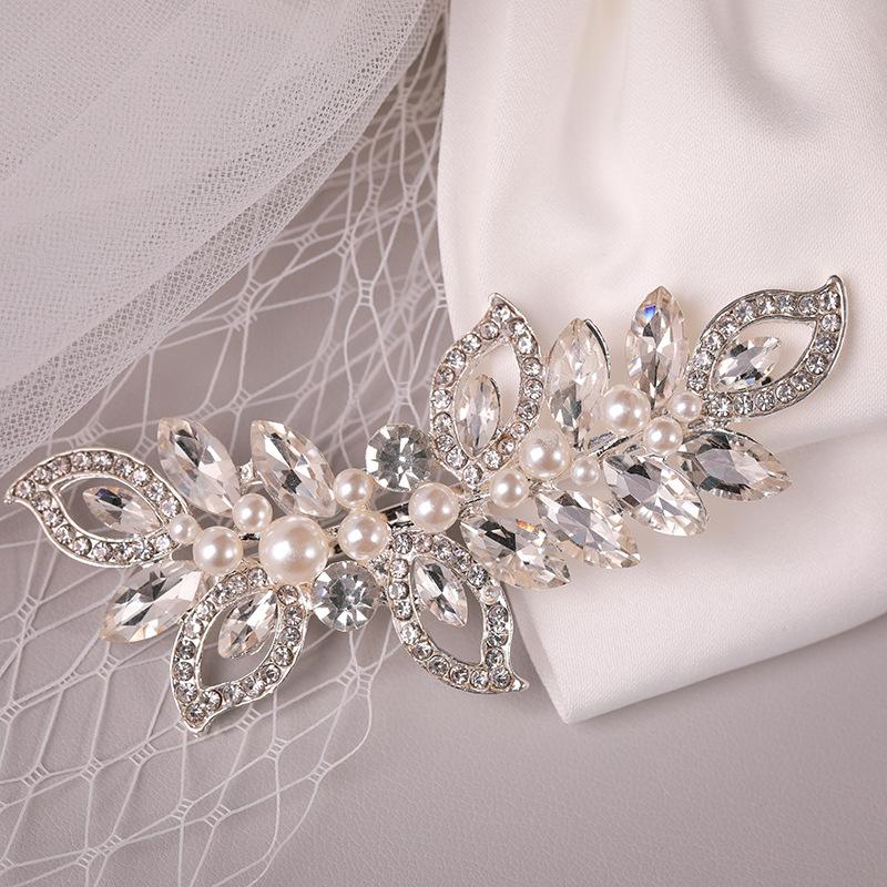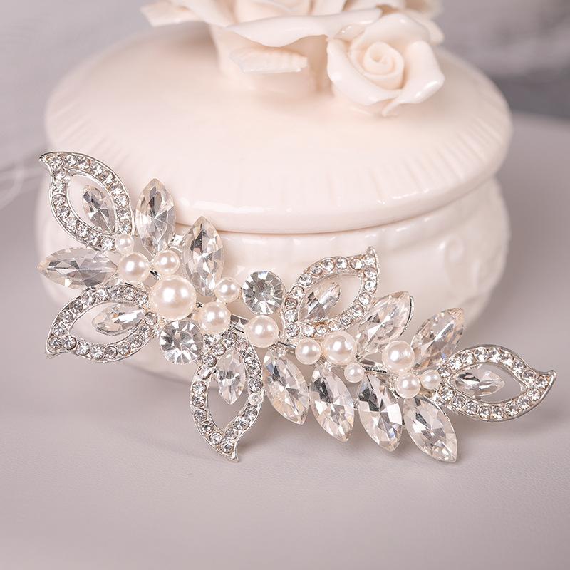 Horquilla de aleación para novia coreana, accesorio para el pelo con diamantes de imitación para boda, adorno con clip de perla, tocado