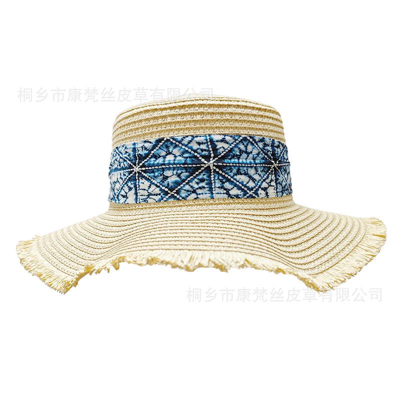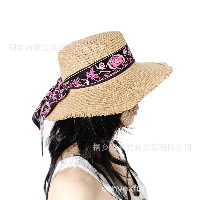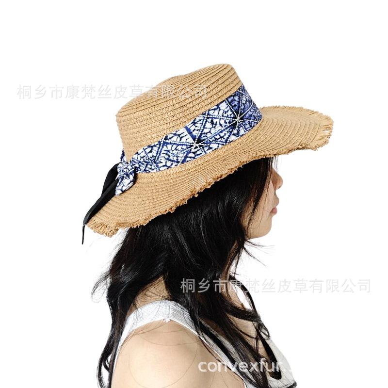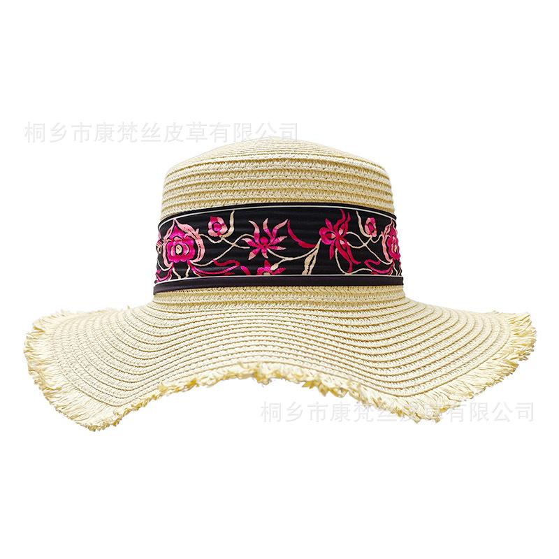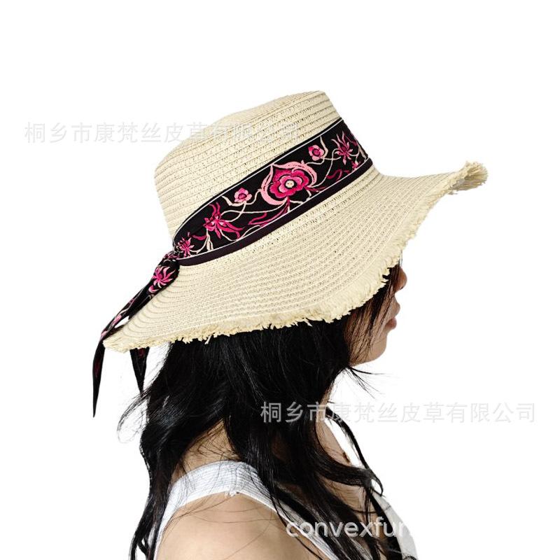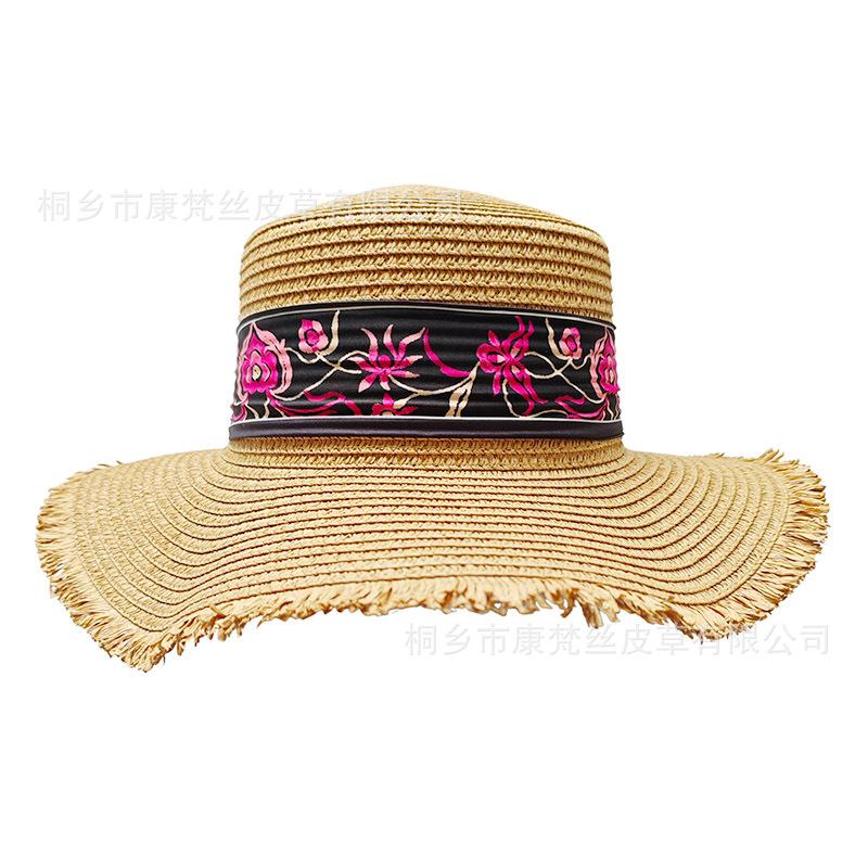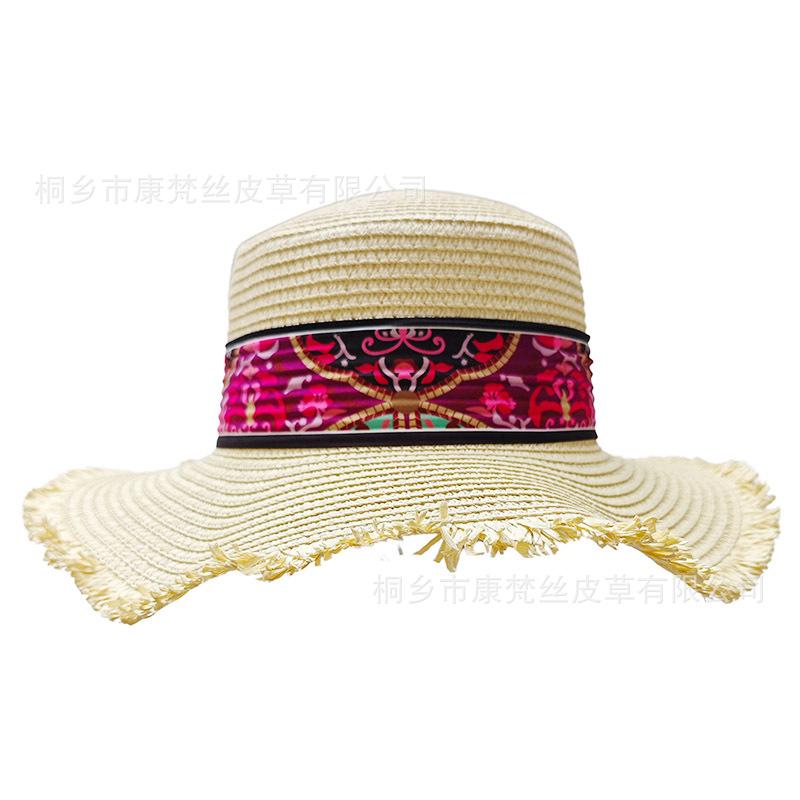 [Gongpei] Sombrero de Estilo Étnico Sombrero para el Sol Sombrero de Playa de Verano para Mujer Sombrero de Protección Solar Ala Ancha Paja Mariposa Paja Sombrero