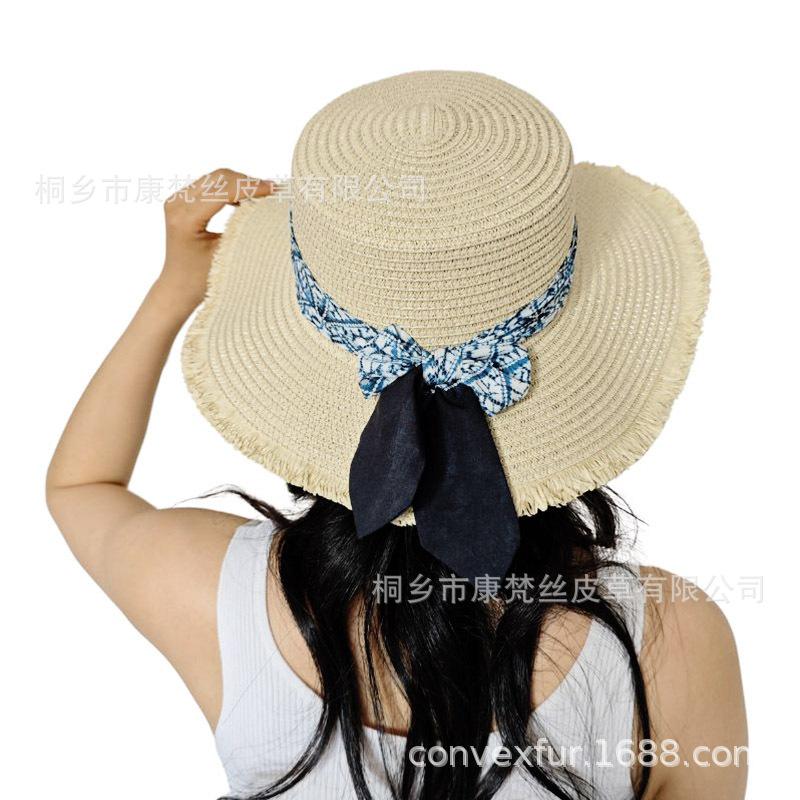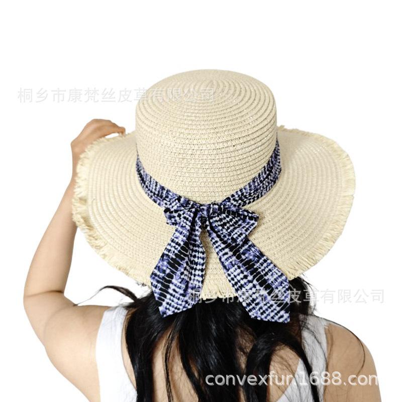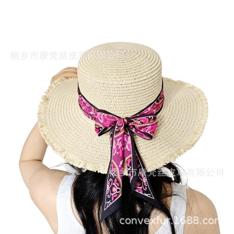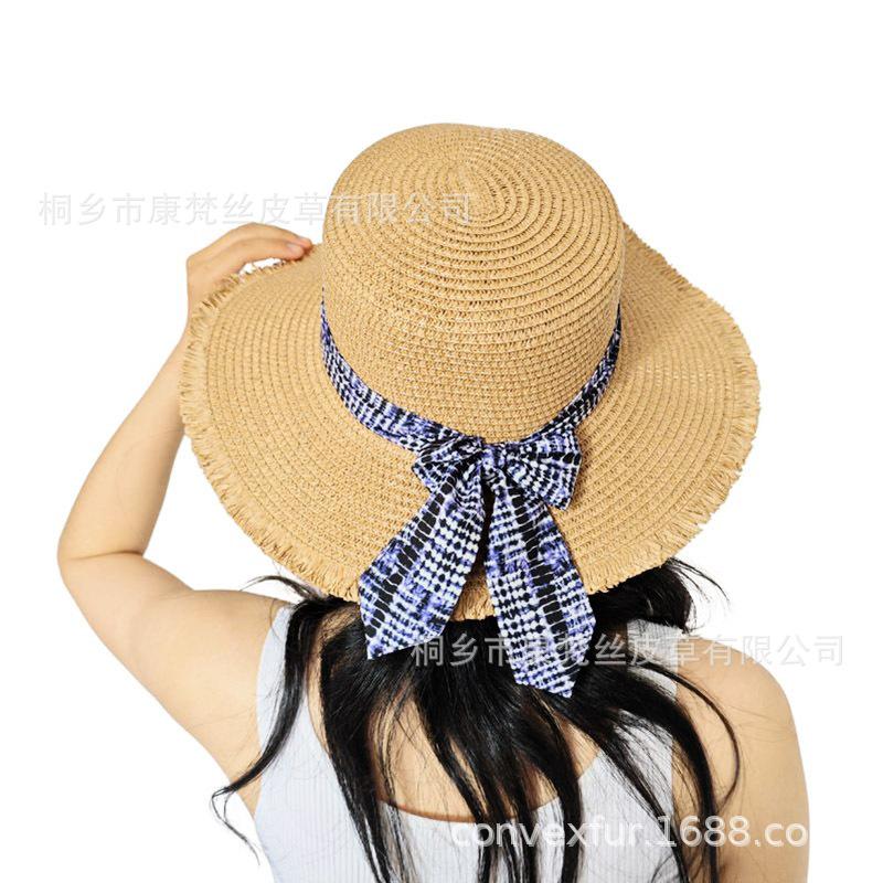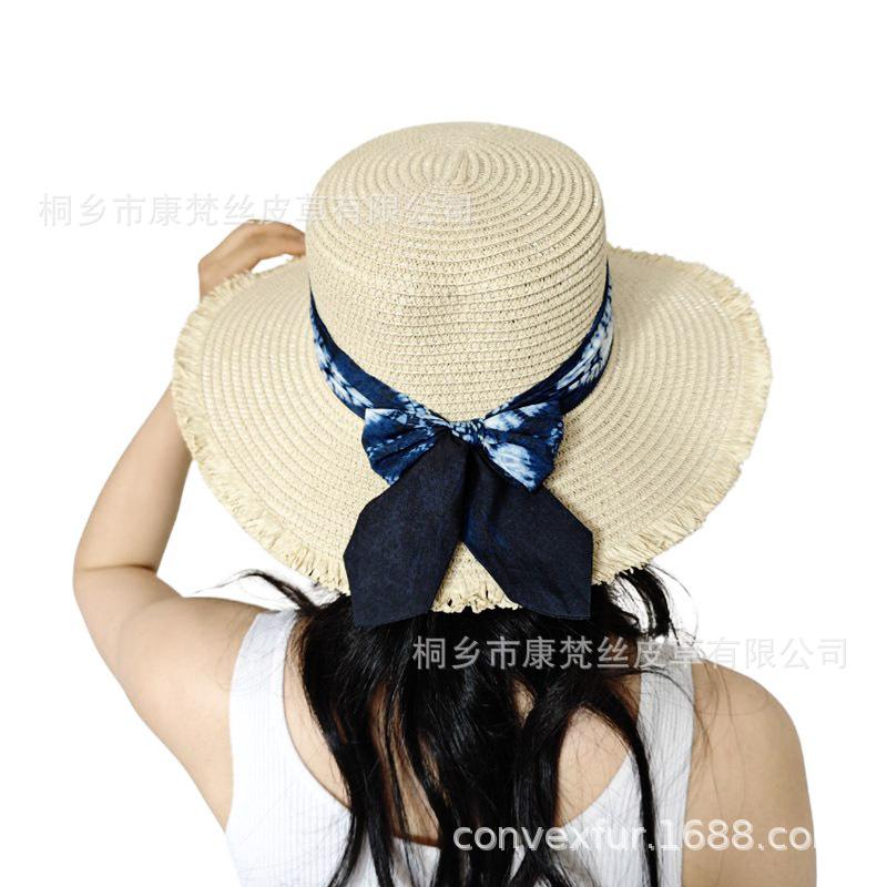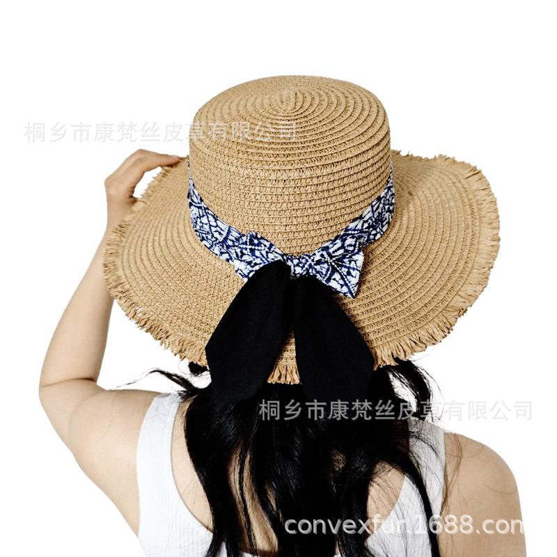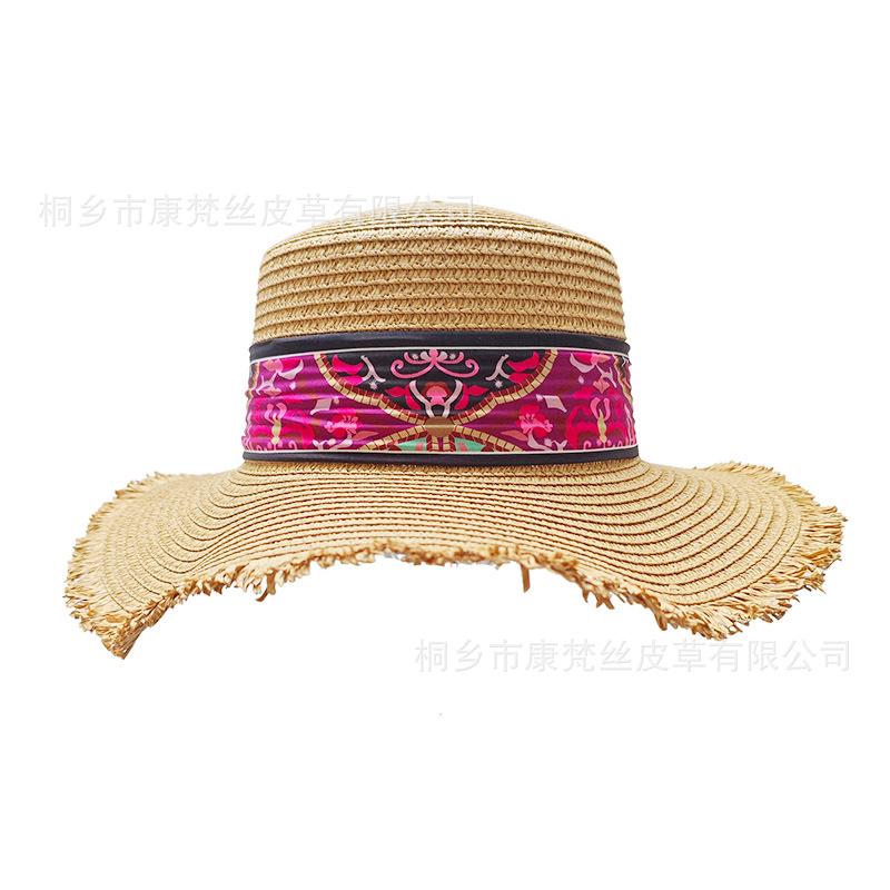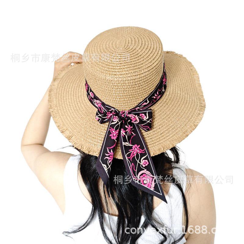 [Gongpei] Sombrero de Estilo Étnico Sombrero para el Sol Sombrero de Playa de Verano para Mujer Sombrero de Protección Solar Ala Ancha Paja Mariposa Paja Sombrero