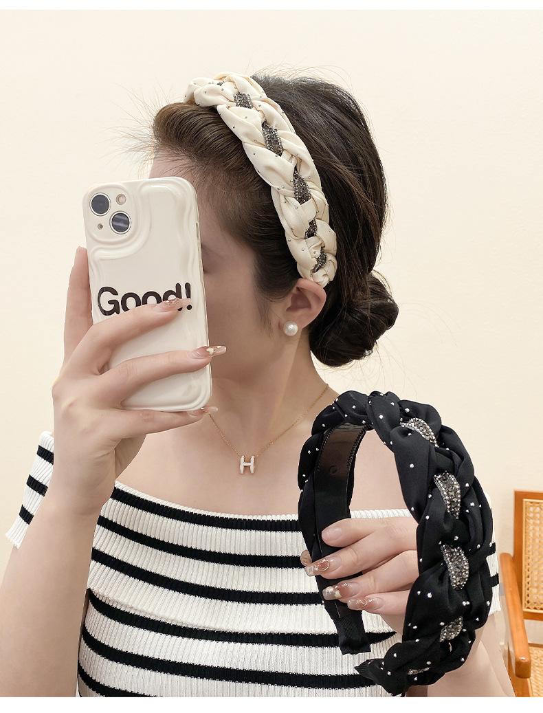 Diadema Trenzada Negra Versátil para Mujer, Sensación de Alta Gama para Salir, Versátil, Adorno para el Cabello, Tocado, Lavado de Cara, Maquillaje, Diadema para Cabello Recogido, Paquete de Cabello