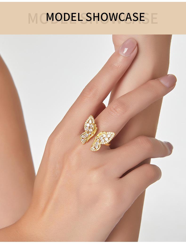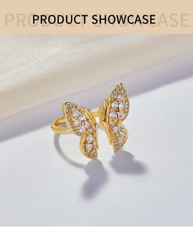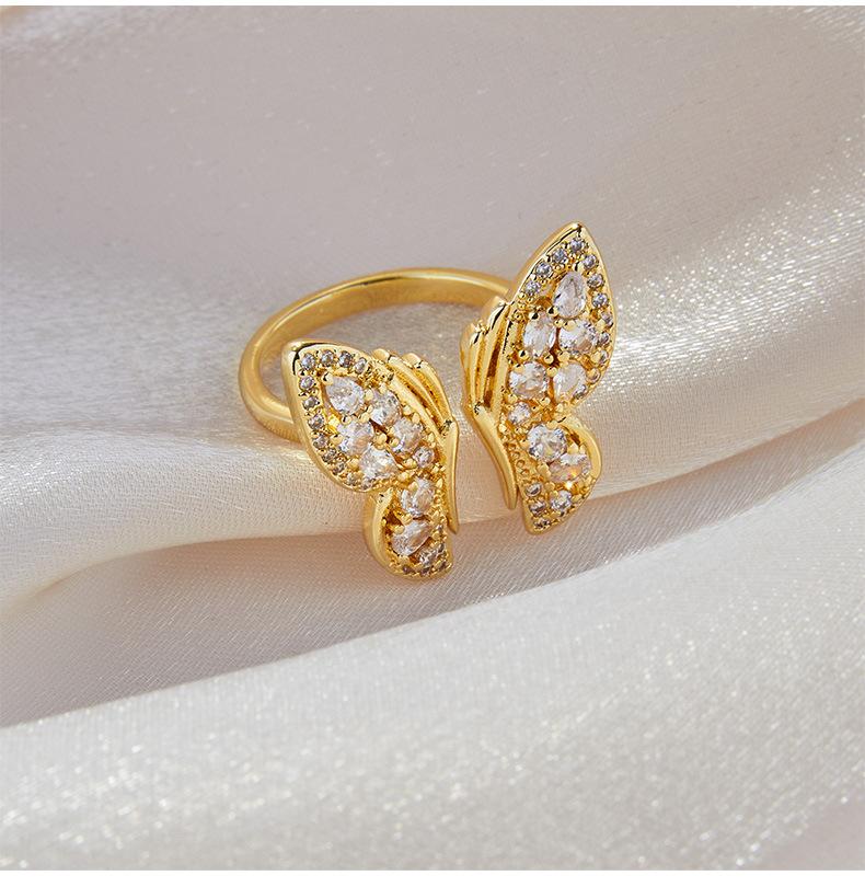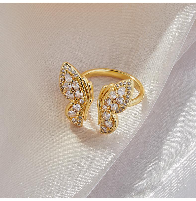 Anillo de temperamento con forma de mariposa de moda europea y americana, anillo de cobre con apertura de personalidad con diseño geométrico de incrustaciones de circonita