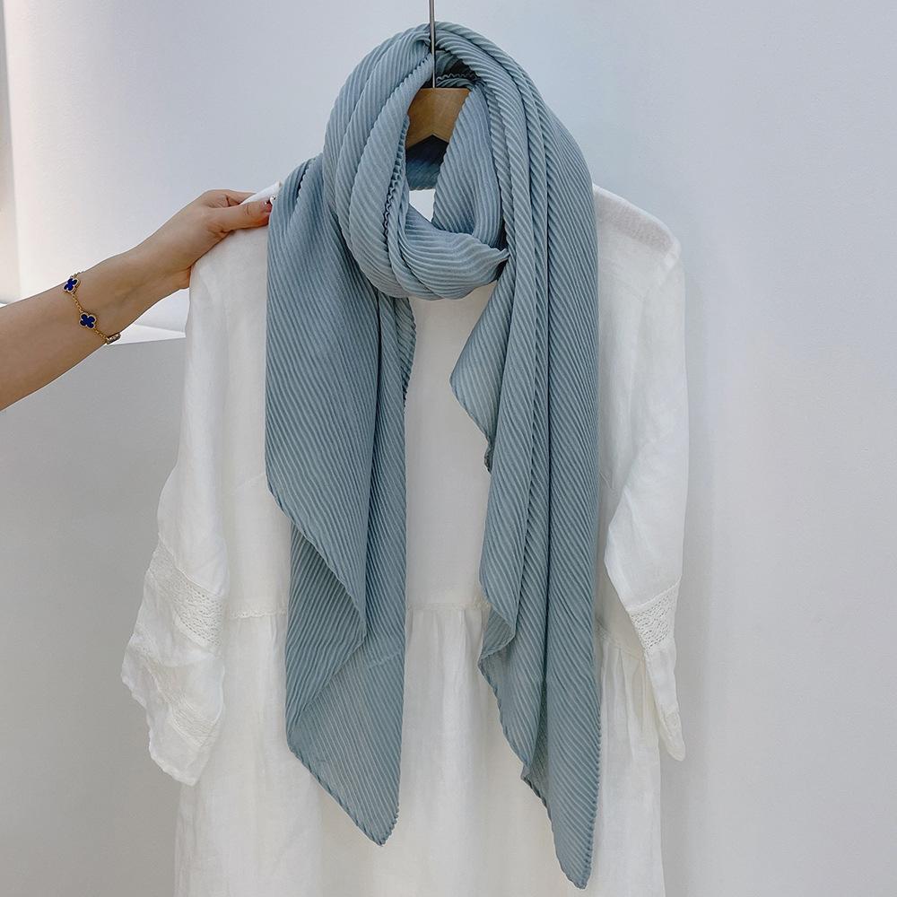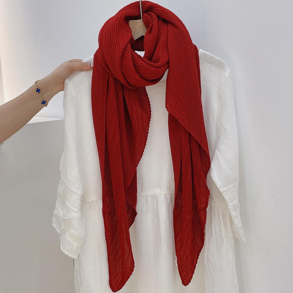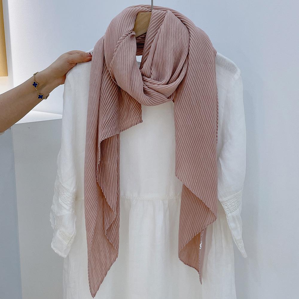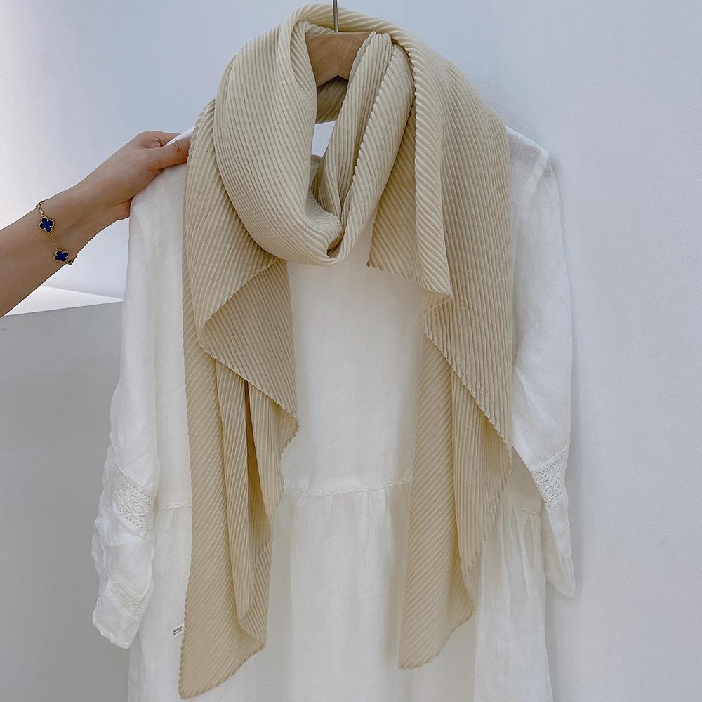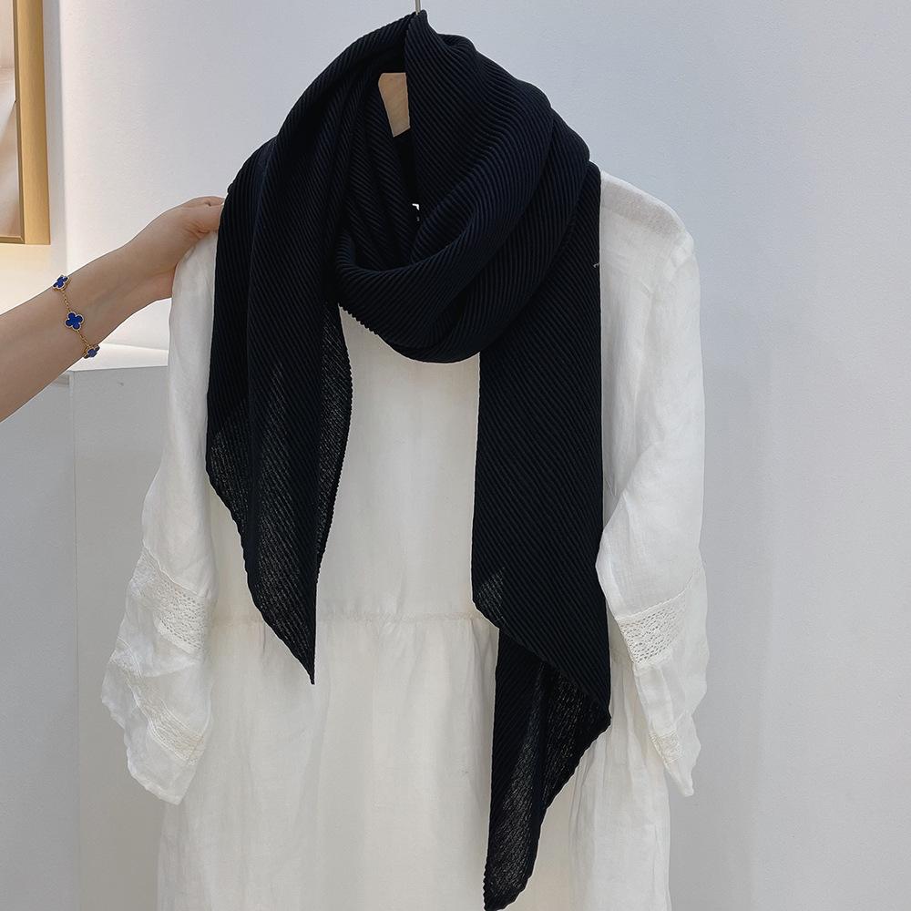 Bufanda de algodón y lino de textura plisada versátil de color sólido de alta calidad, chal suave y cálido para mujer, nueva actualización primavera 2024