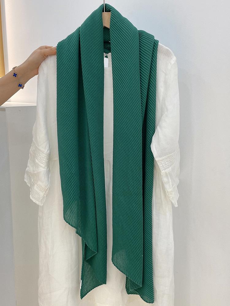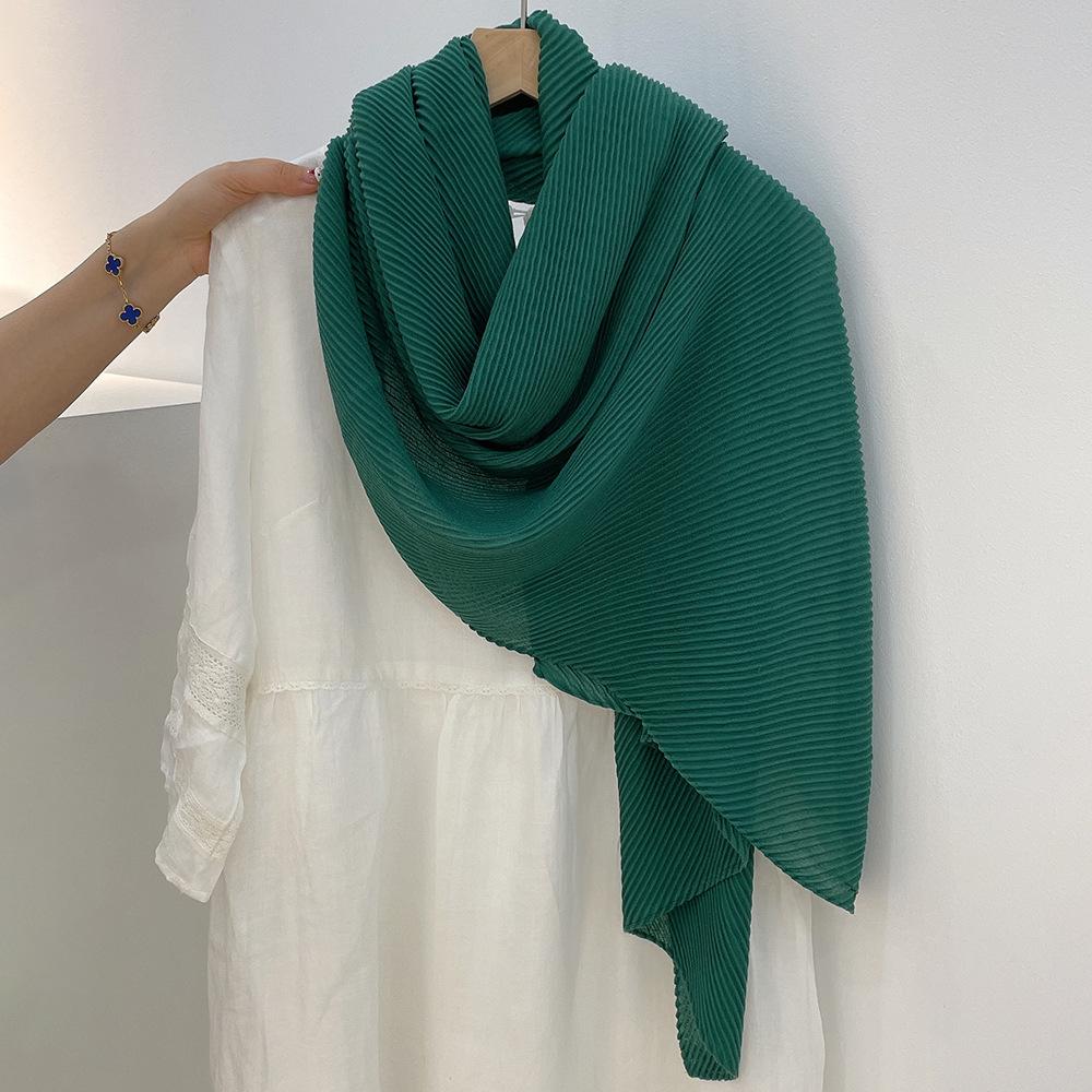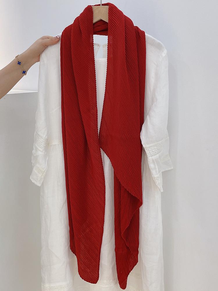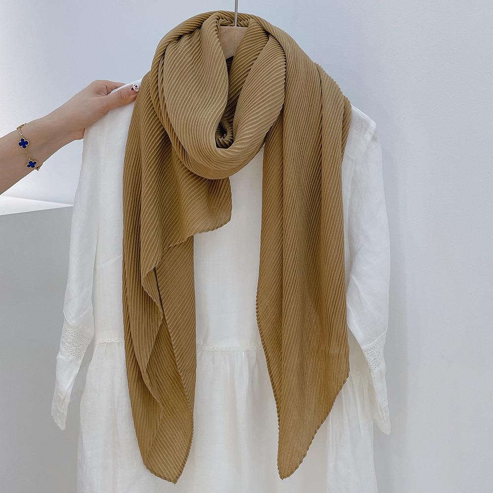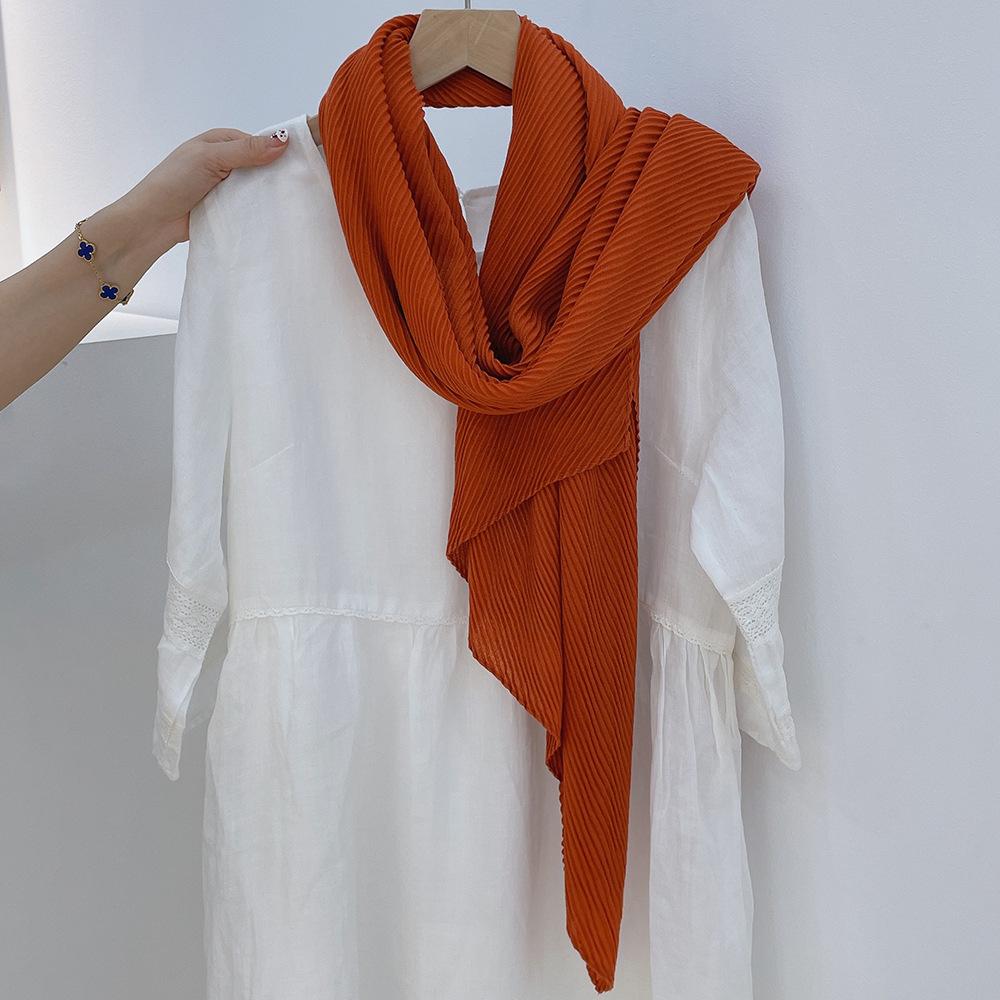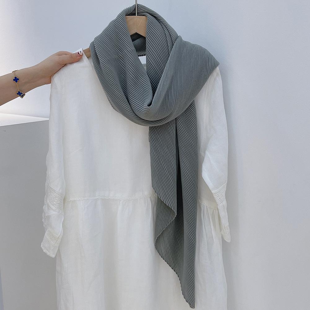Bufanda de algodón y lino de textura plisada versátil de color sólido de alta calidad, chal suave y cálido para mujer, nueva actualización primavera 2024