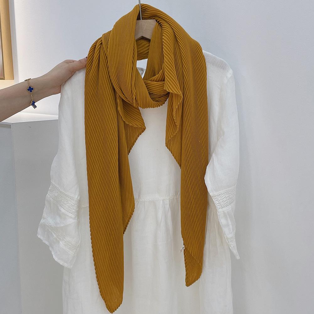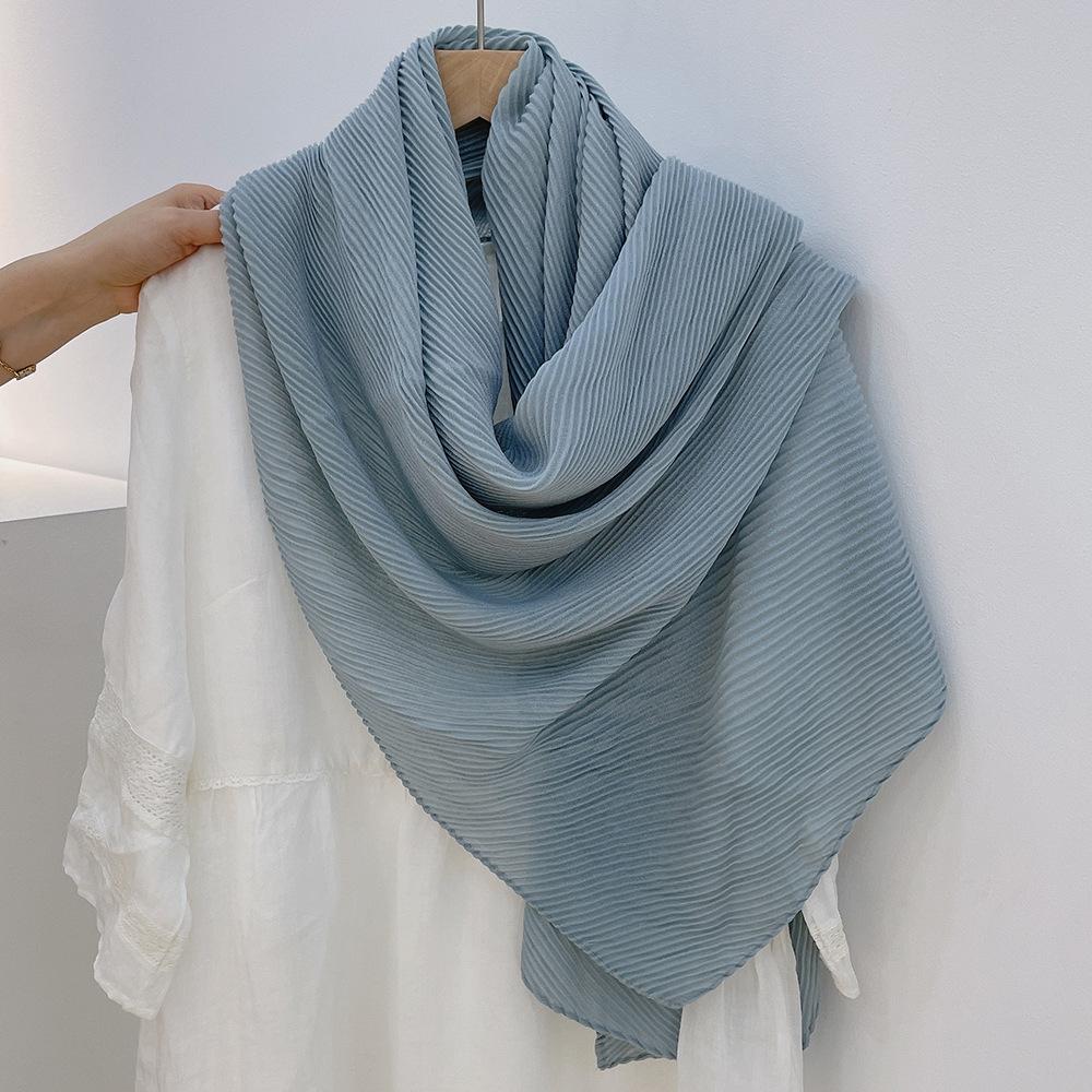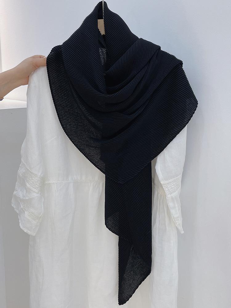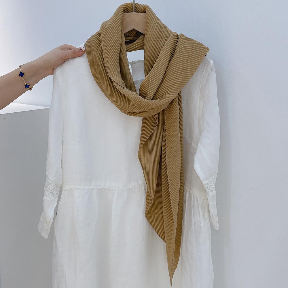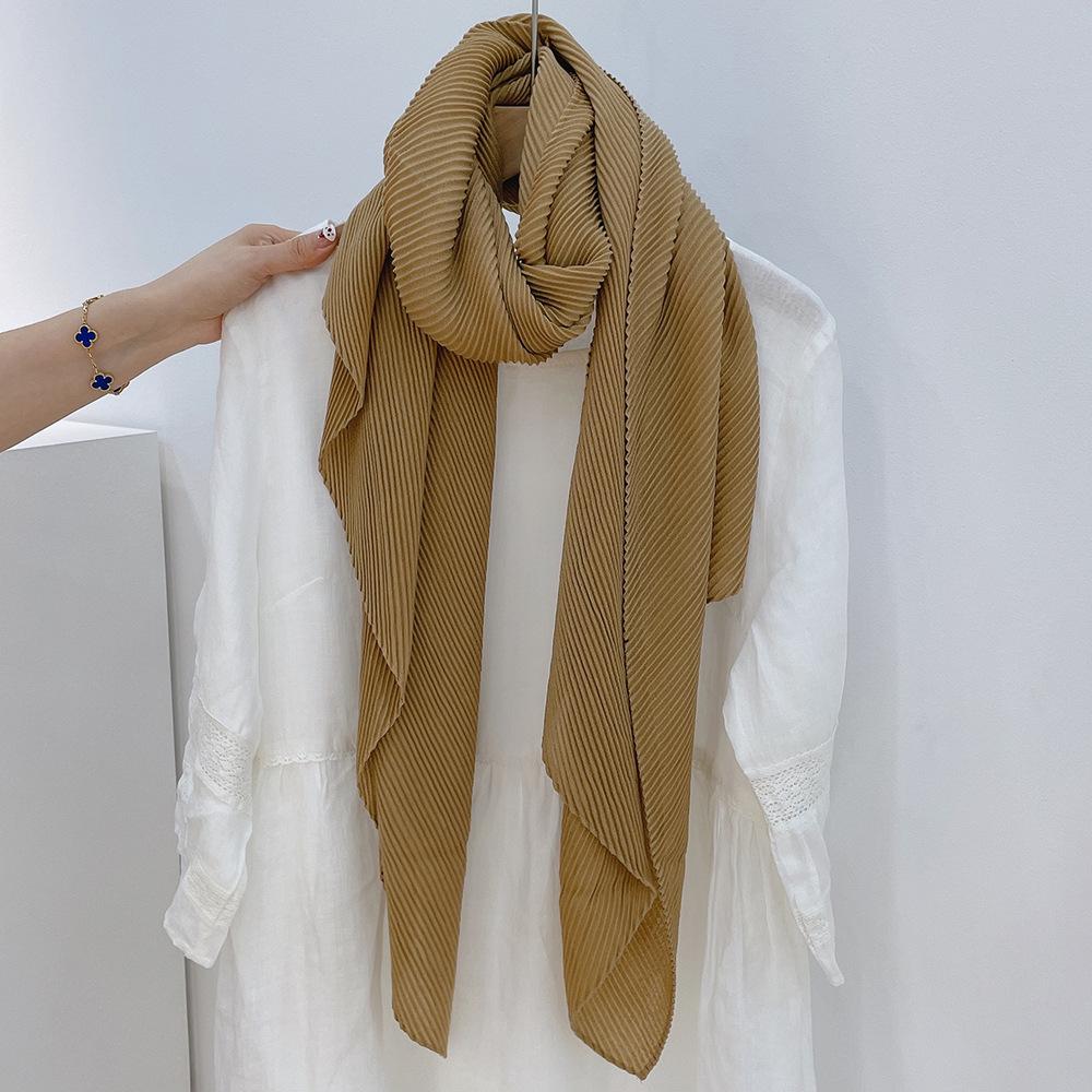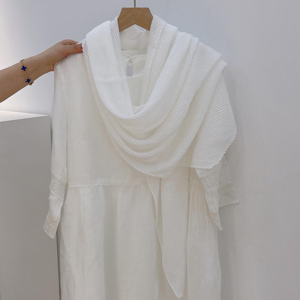 Bufanda de algodón y lino de textura plisada versátil de color sólido de alta calidad, chal suave y cálido para mujer, nueva actualización primavera 2024