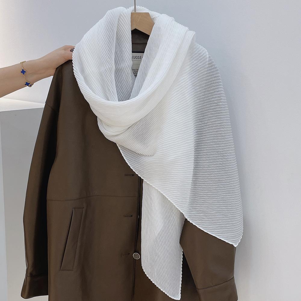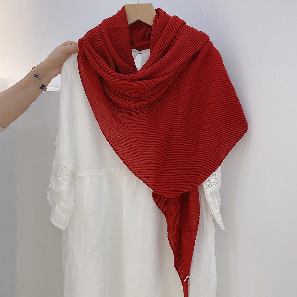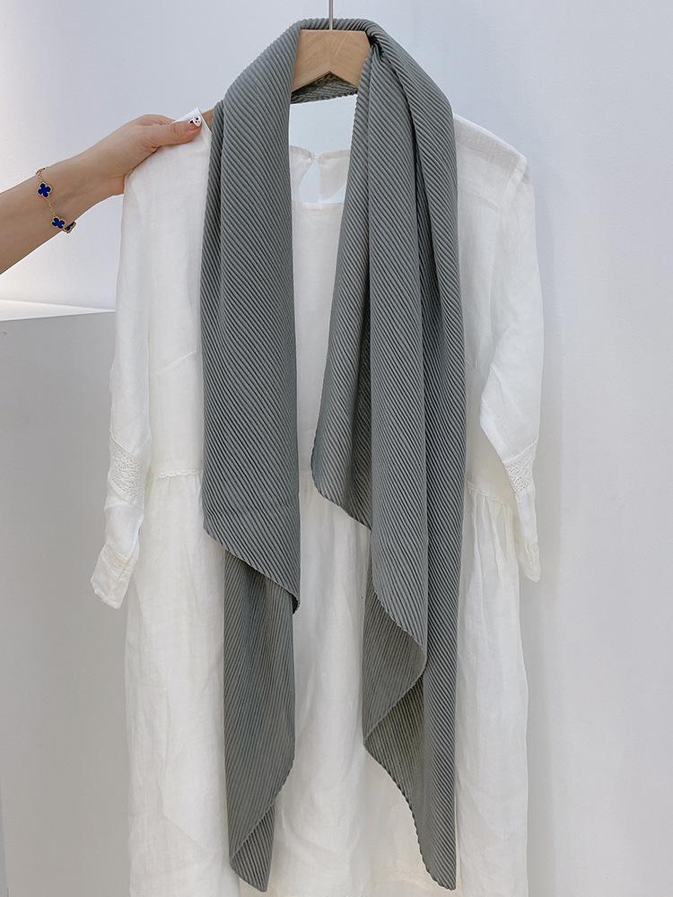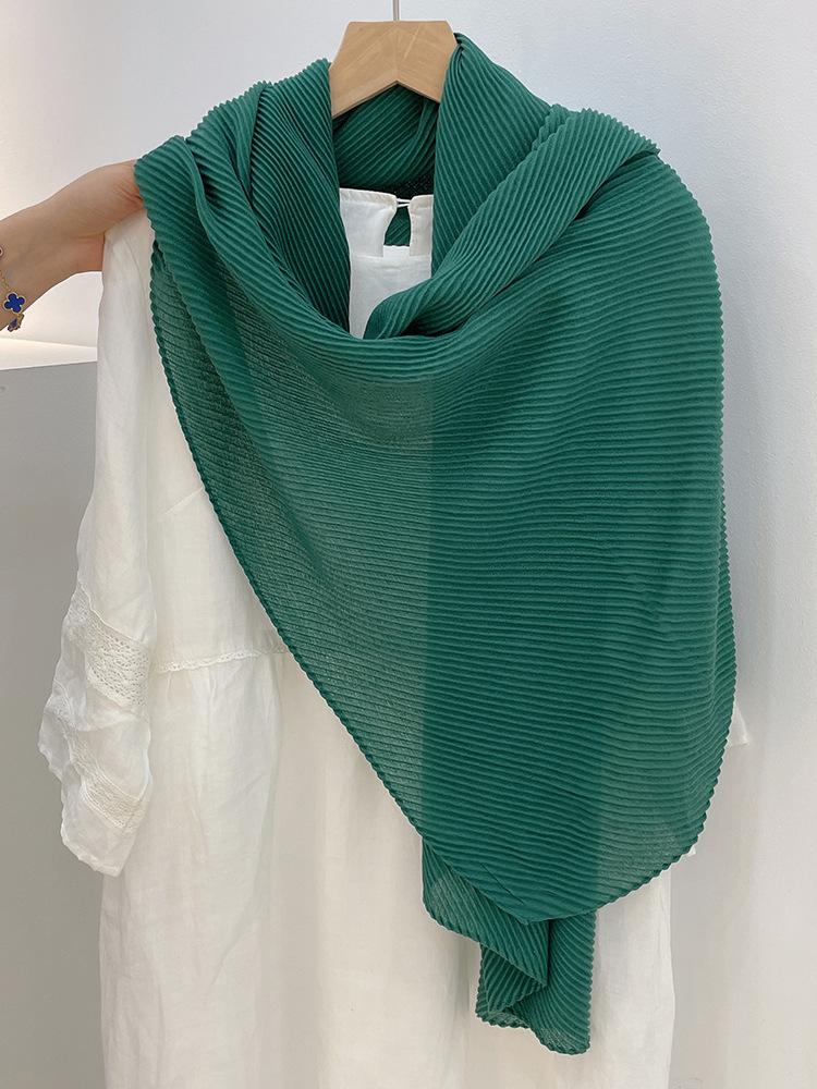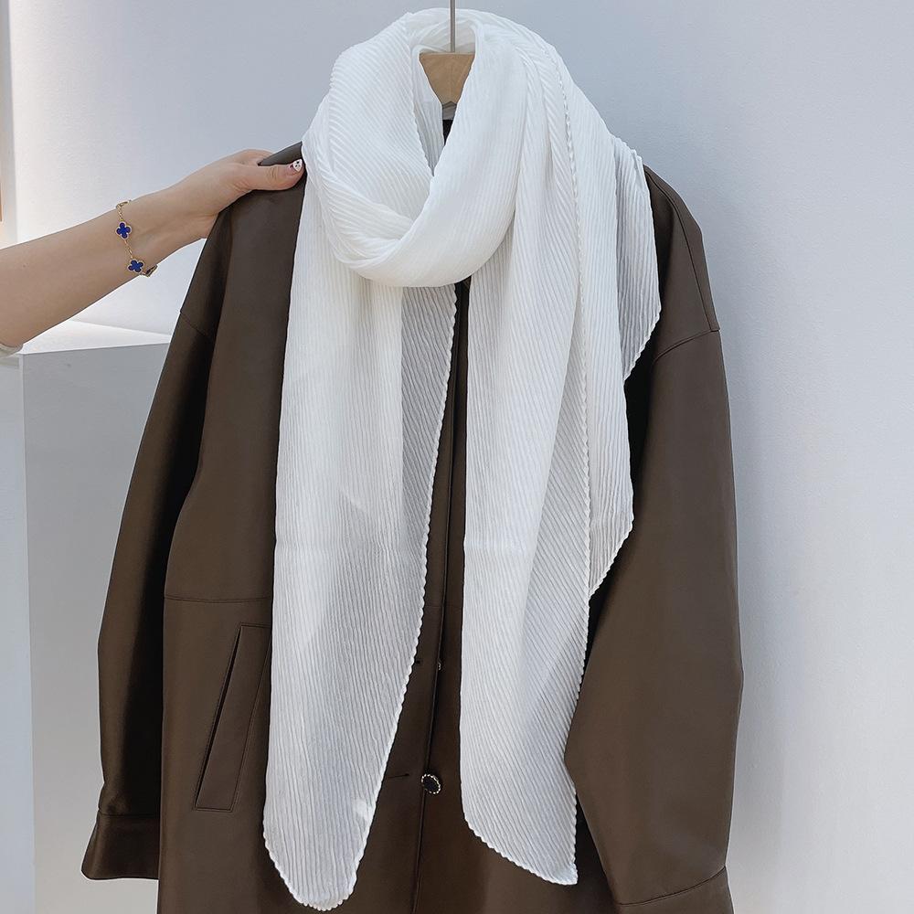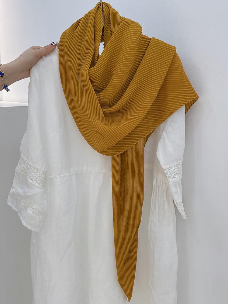 Bufanda de algodón y lino de textura plisada versátil de color sólido de alta calidad, chal suave y cálido para mujer, nueva actualización primavera 2024