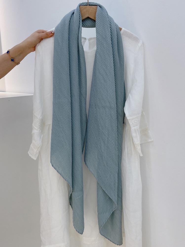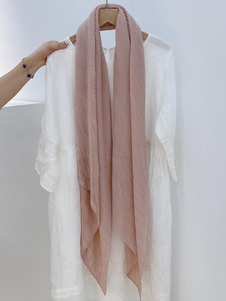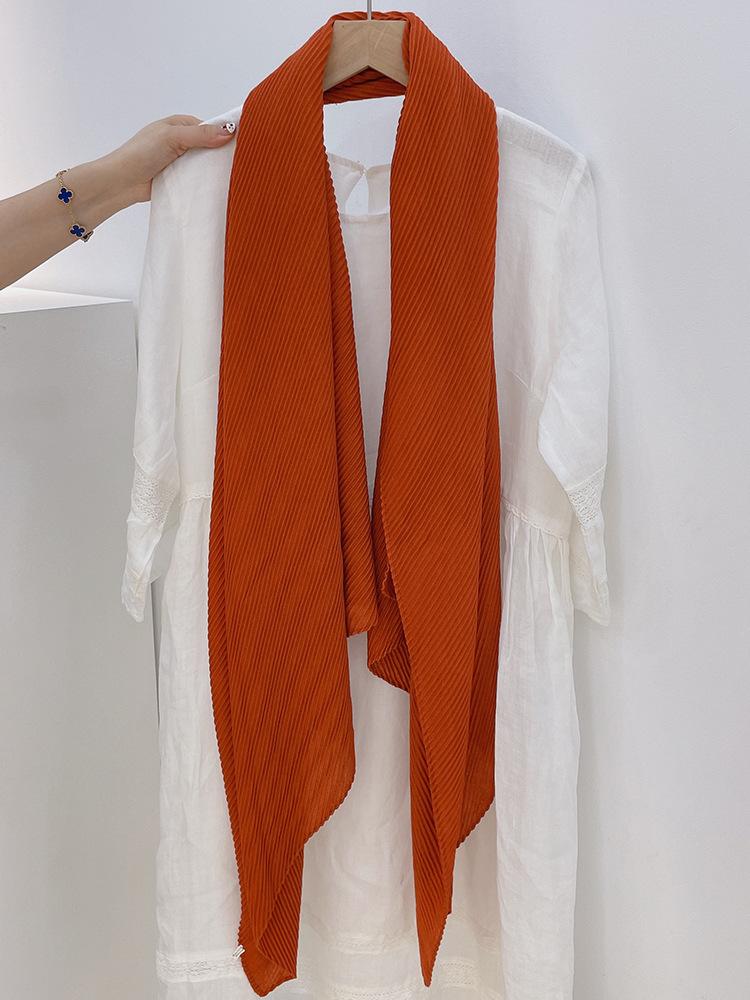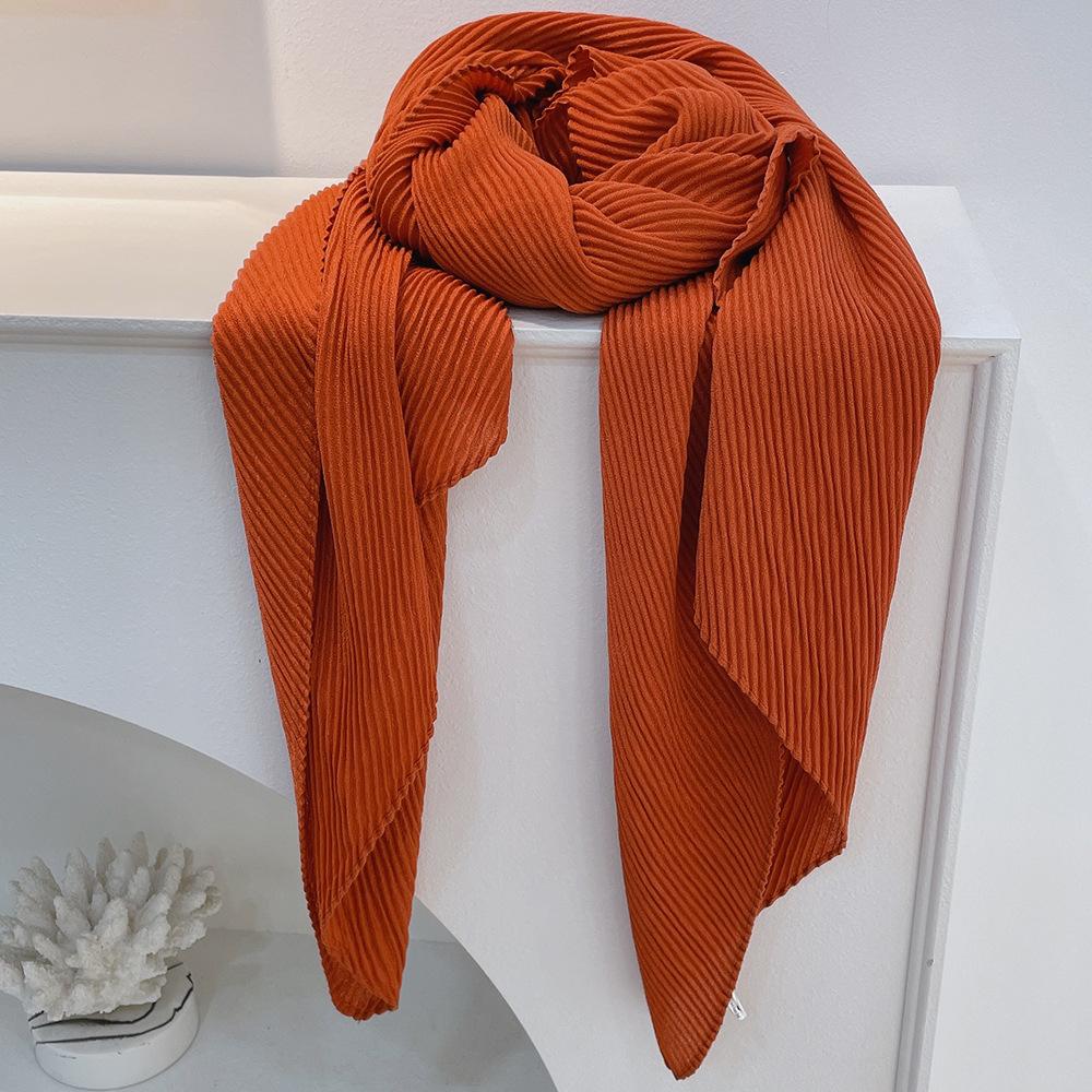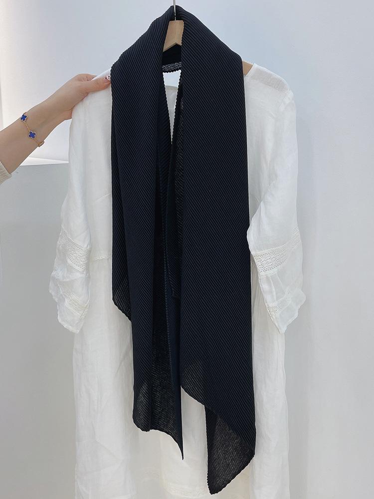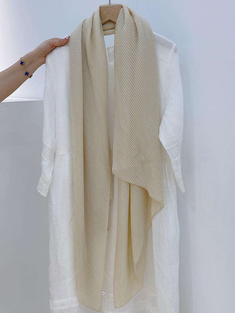 Bufanda de algodón y lino de textura plisada versátil de color sólido de alta calidad, chal suave y cálido para mujer, nueva actualización primavera 2024
