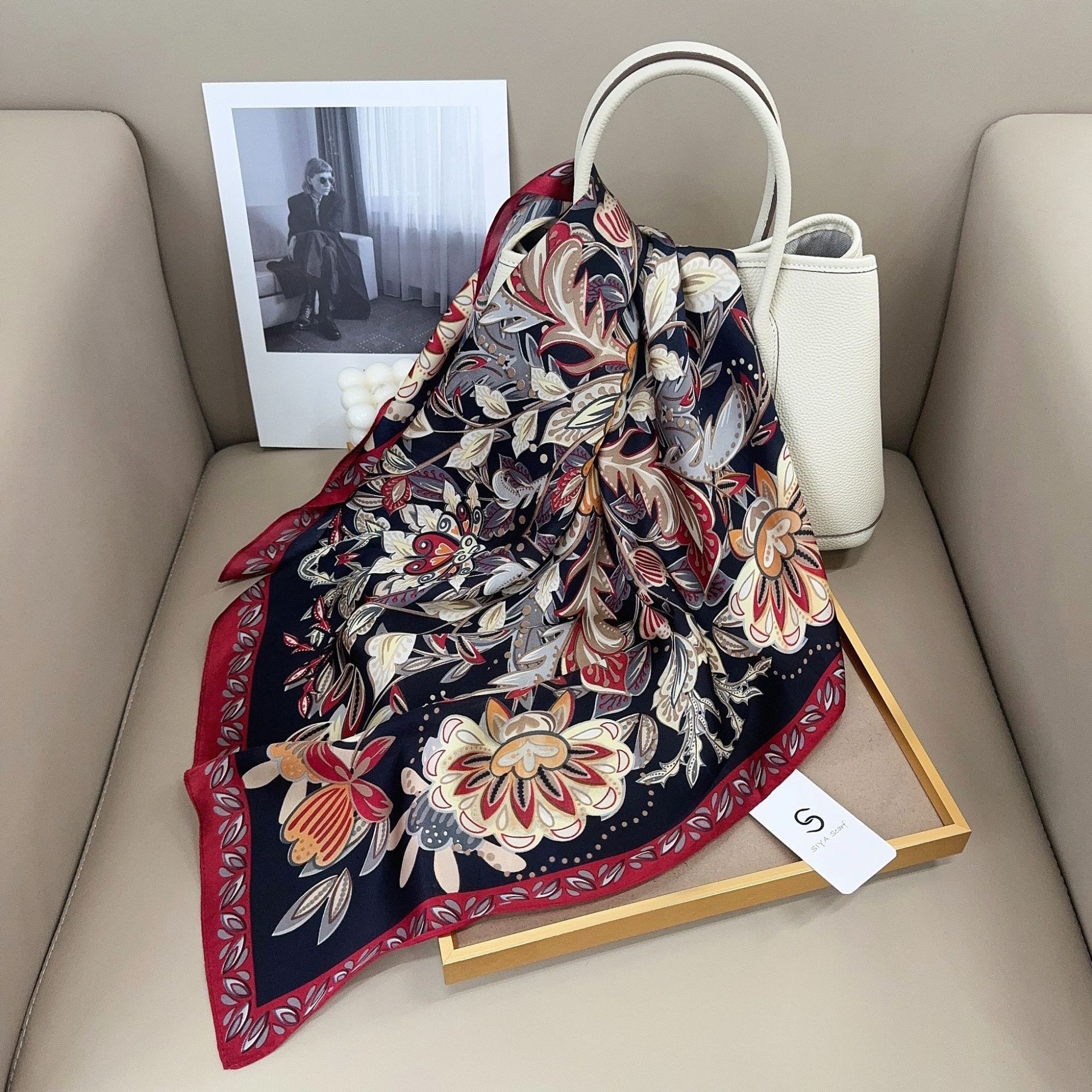 Nuevo Turbante Decorativo Cuadrado Pequeño de Estilo Étnico de 70 cm para Mujer, Bufanda de Seda Estampada de Moda Versátil en stock