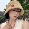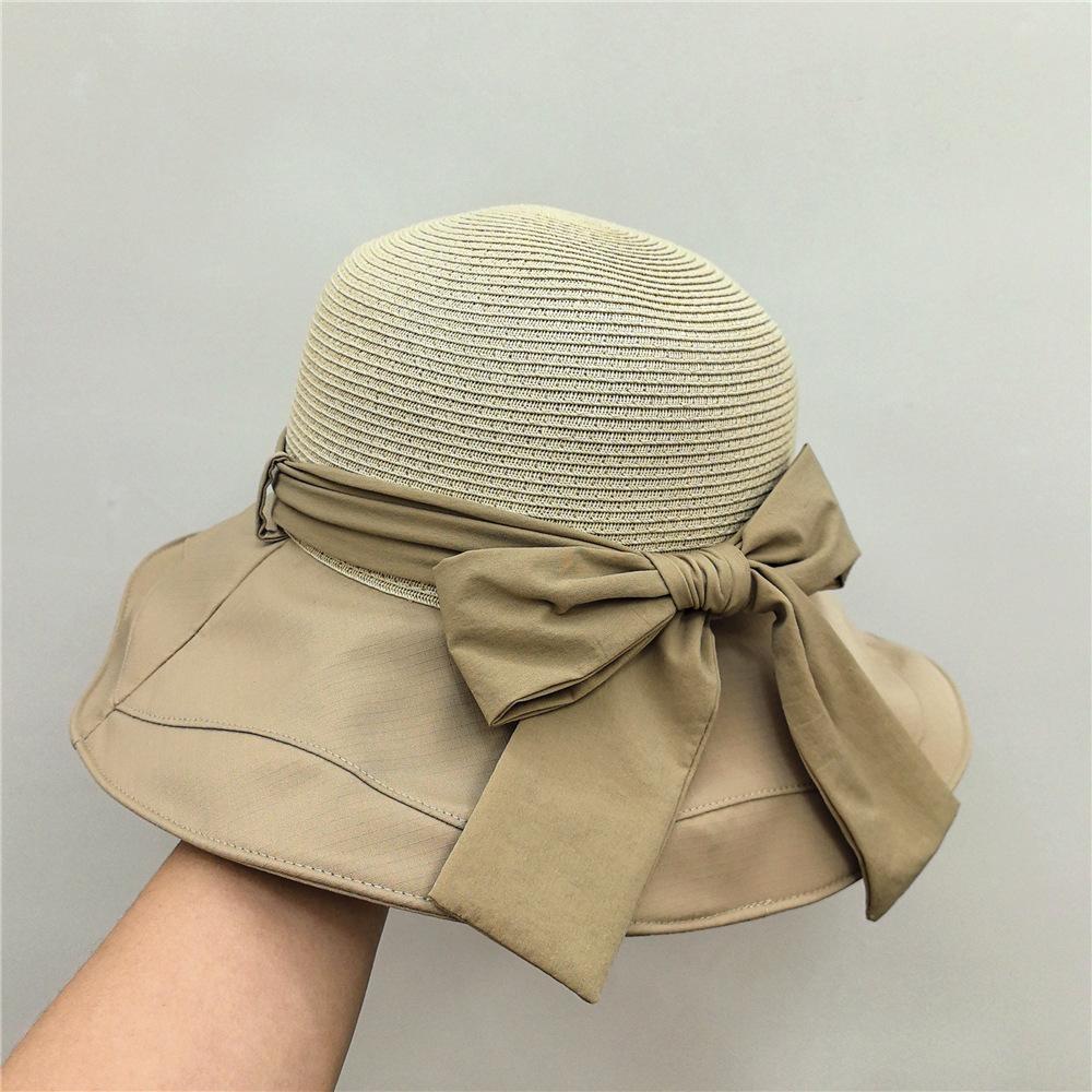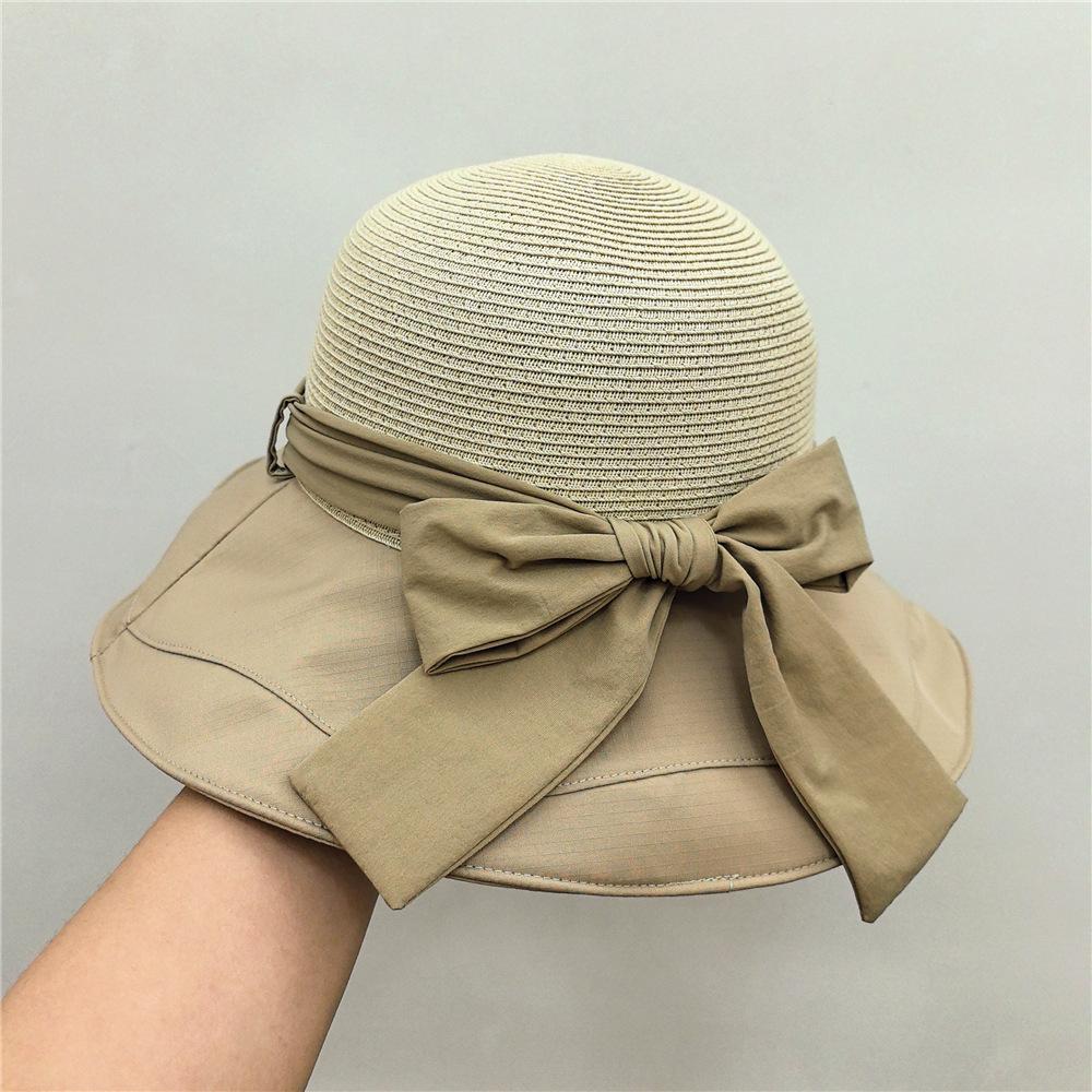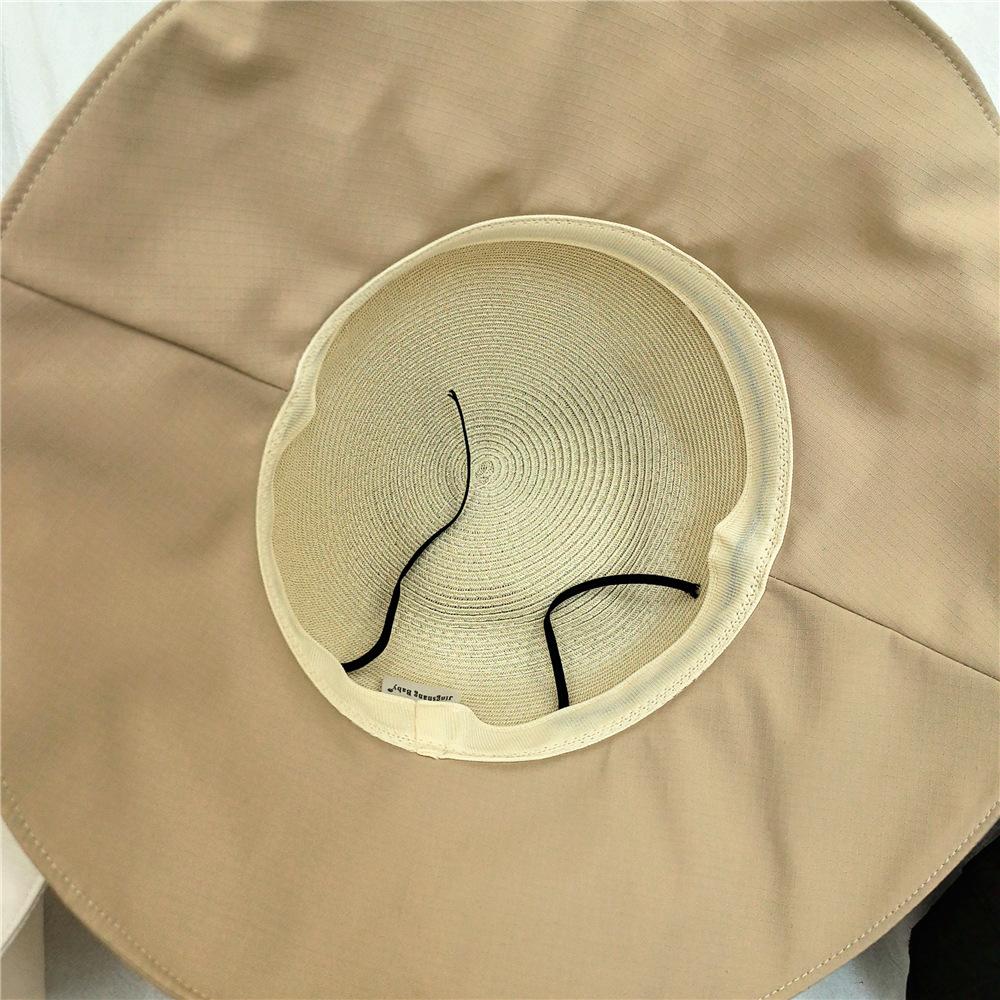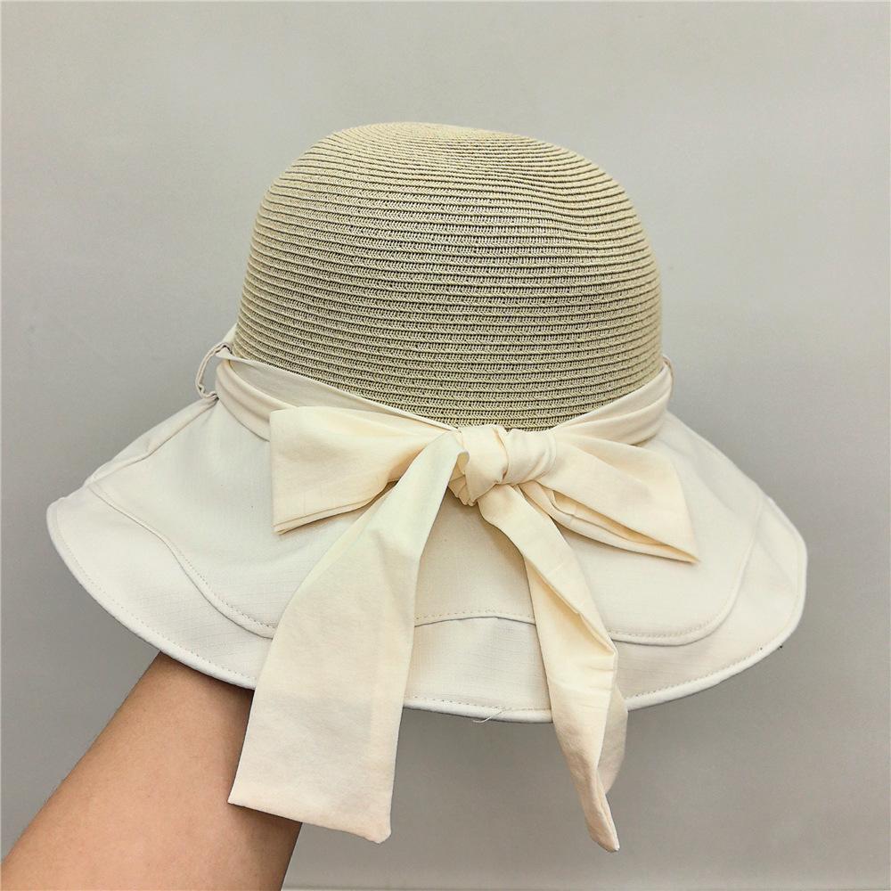 Sombrero de paja con lazo de ala grande para mujer, estilo coreano, para primavera y verano, para playa, viajes, protector solar, con cara visible, pequeño sombrero de pescador