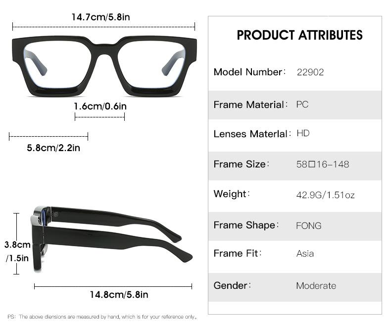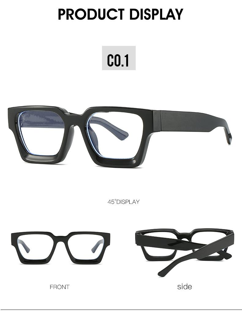 Nuevos Lentes Antiluz Azul de Moda 22902 Armazón de Lentes Cuadrados Trendy para Miopía Combinan con Todo Lentes Planos Simples para Hombre y Mujer