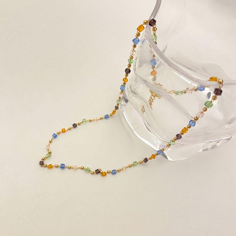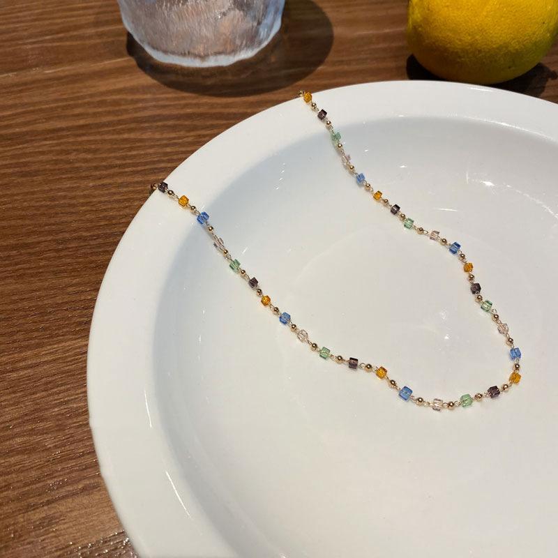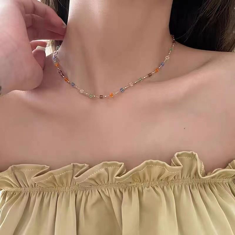 Collar de Cristal con Cuentas de Color Nuevo 2025 Cadena para Clavícula para Mujer Diseño Nicho Verano Collar Choker Casual