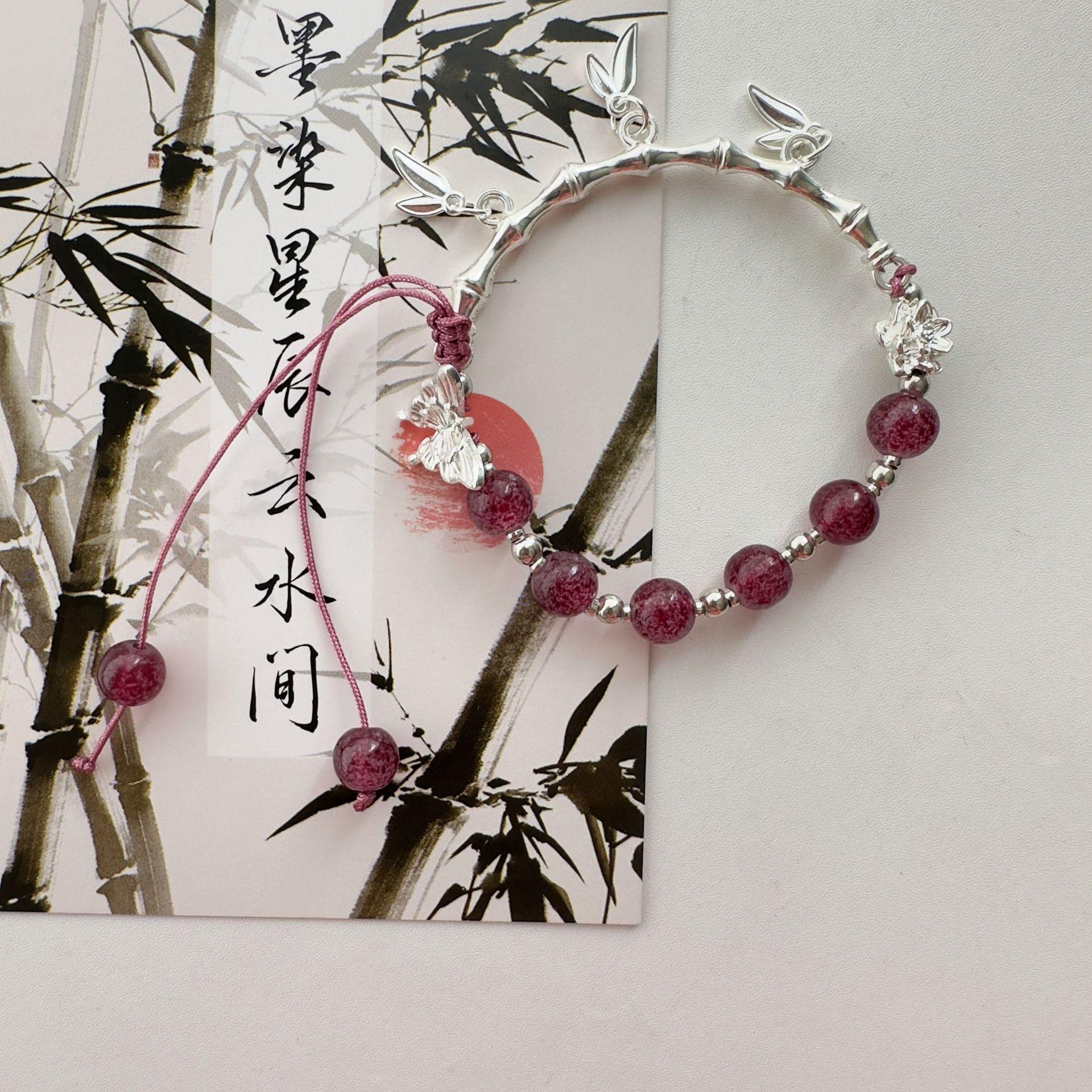 Nueva Pulsera de Cuentas de Bambú y Mariposa de Estilo Chino para Niñas, Pulseras Nicho Antiguas, Regalos de Cumpleaños