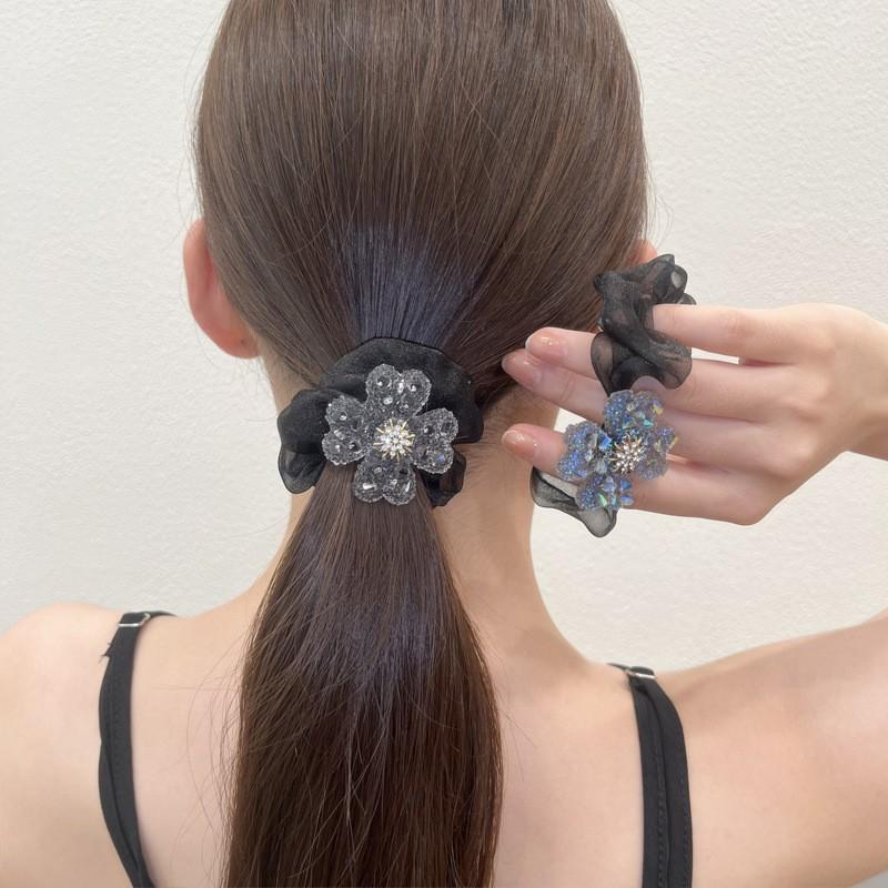 Horquilla de flores con diamantes de imitación de estilo coreano para mujer, con forma de bola en la parte posterior, grande, de alta calidad, para verano
