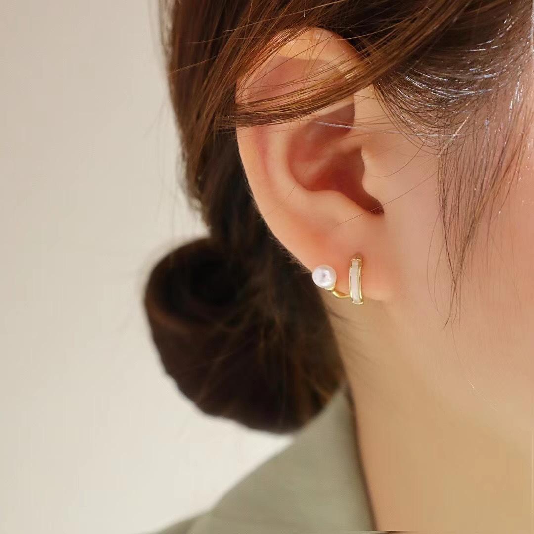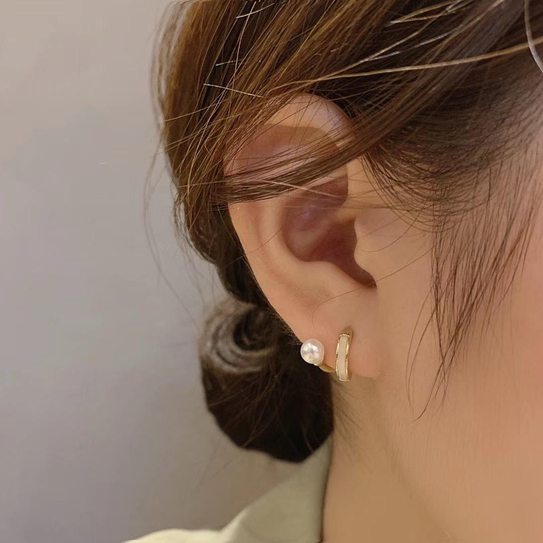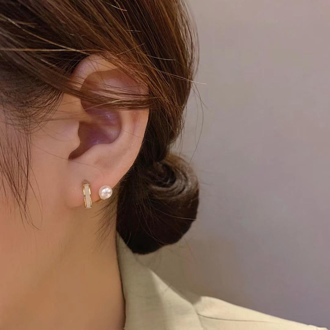 Elegantes aretes pequeños geométricos de perlas dulces para mujer retro simple diseño de nicho aretes de moda que combinan con todo aretes