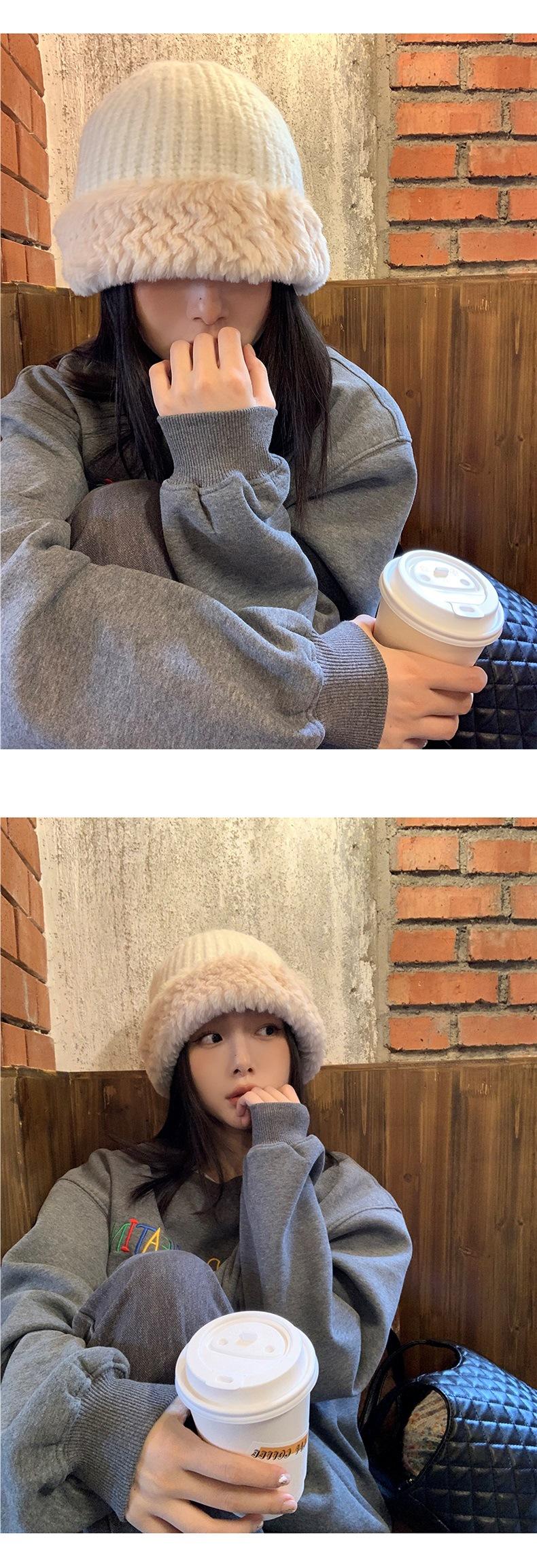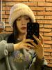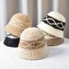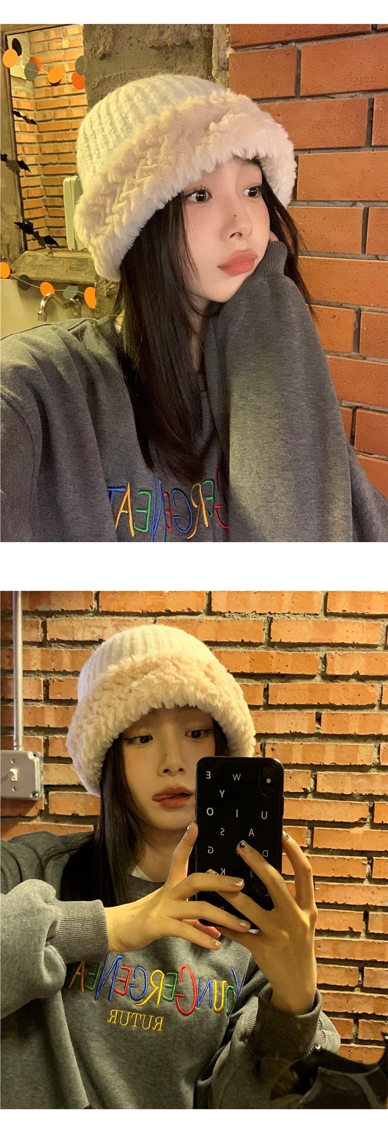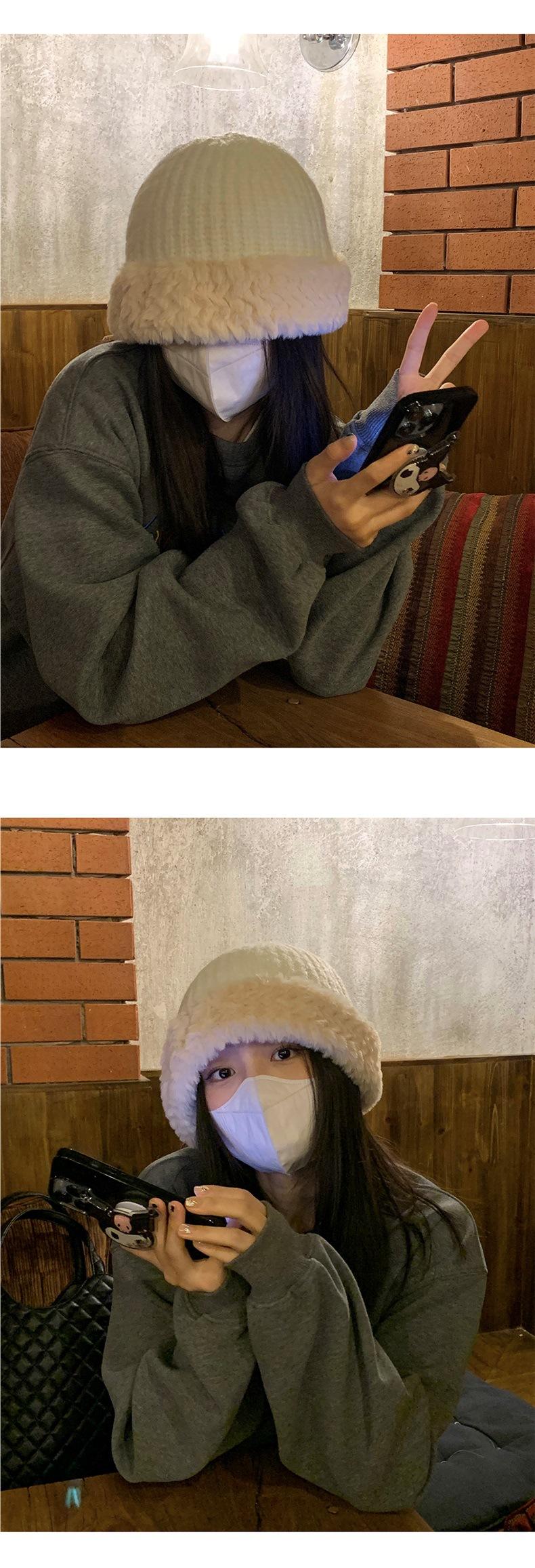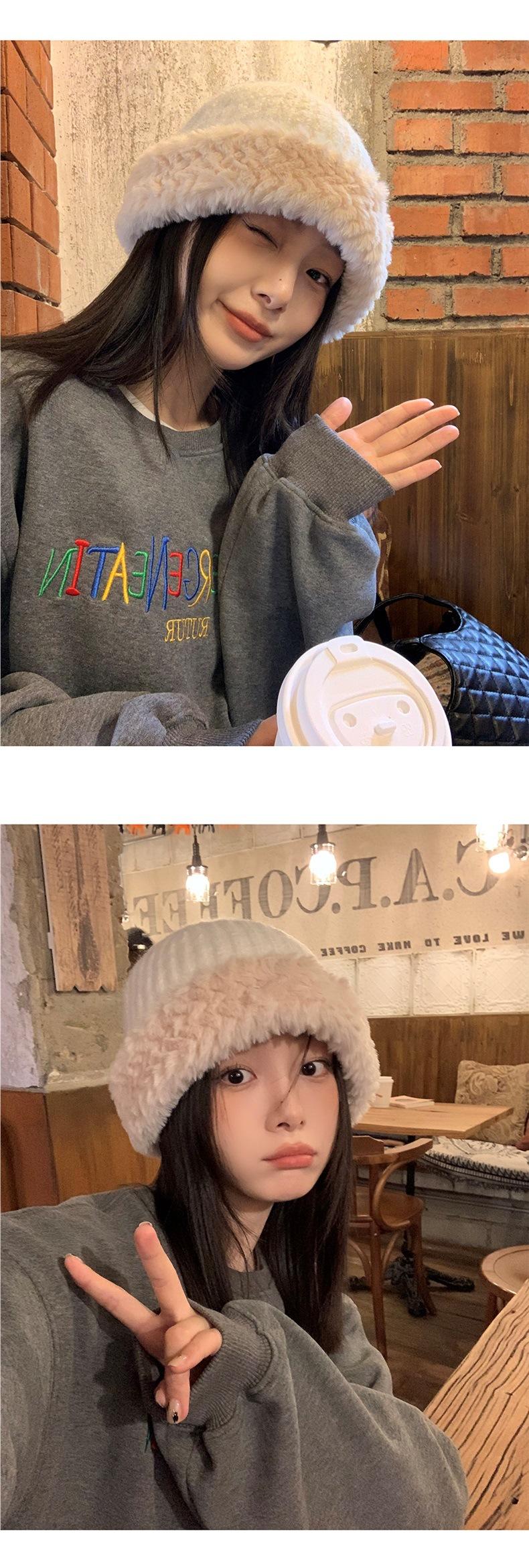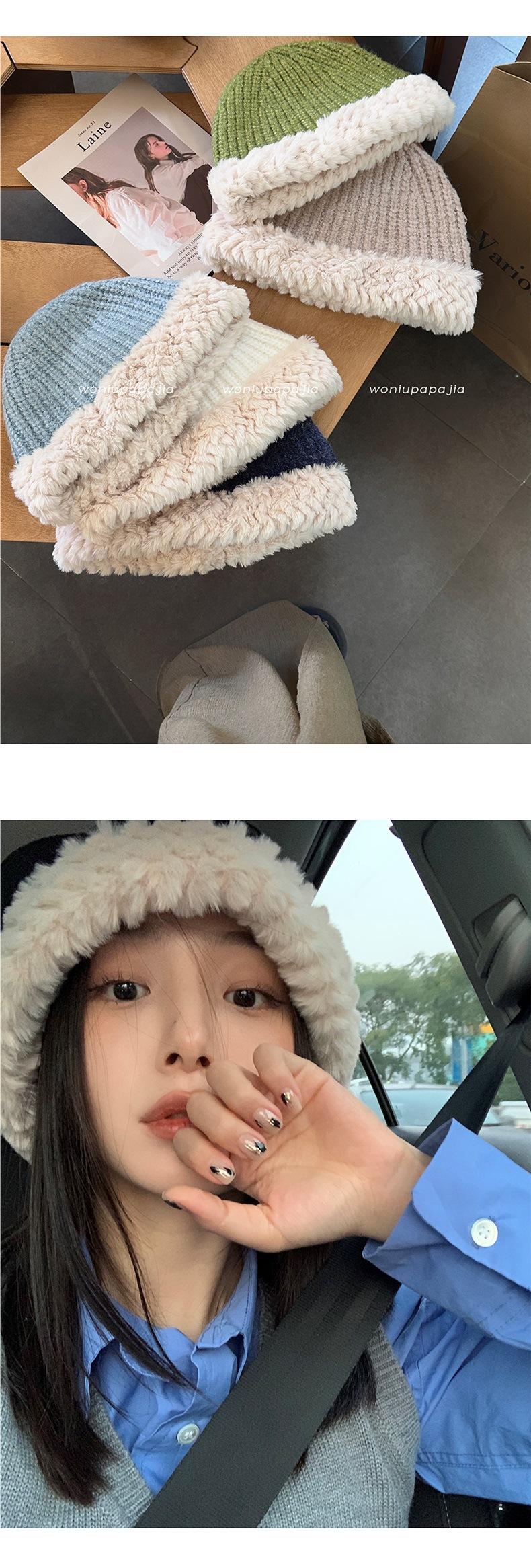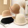 Gorro de lana de punto de felpa con cabeza grande y viento perezoso para mujer, otoño e invierno, combina con todo, pequeño gorro de pescador perezoso, cálido, de moda