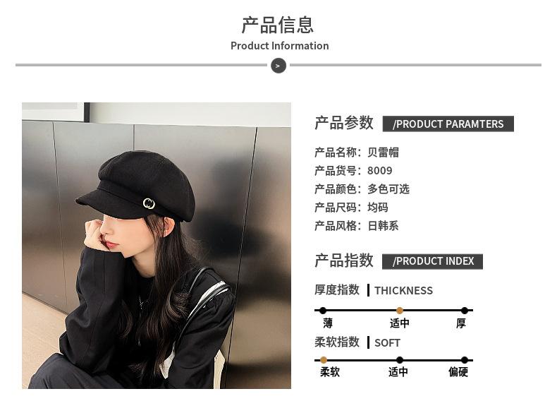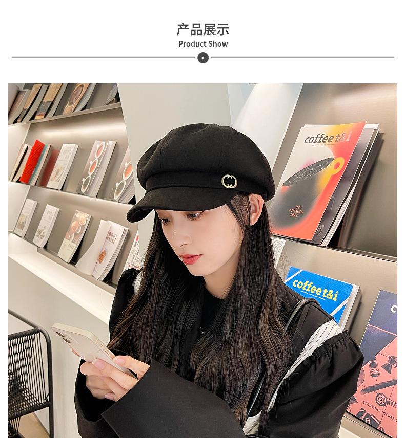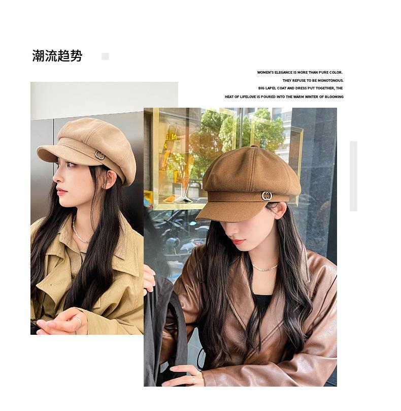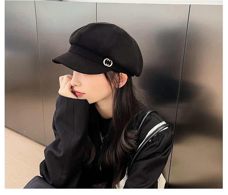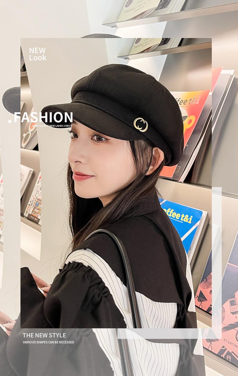 Sombrero octogonal retro para mujer, estilo británico japonés moderno, con lengüeta de pato, para vendedor de periódicos, ideal para celebridades de Internet, ideal para todo tipo de rostros y para mostrar el rostro de un pequeño pintor.