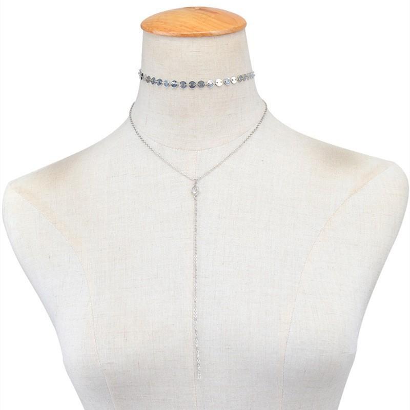 Joyería Transfronteriza Europea y Americana Aleación Hecho a Mano Collar de Cadena Moda Nuevo Lentejuela Cadena Clavícula Cadena de Cuello Multicapa