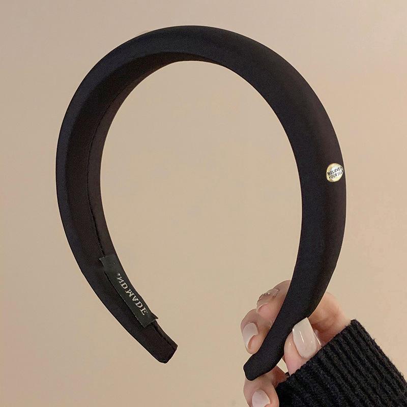 Estilo Francés Elegante Sentido de Alta Gama Etiqueta Dorada Diadema de Satén Popular en Internet Nuevo Diadema Superior Craneal Alta Pasador Accesorios para el Cabello para Mujeres