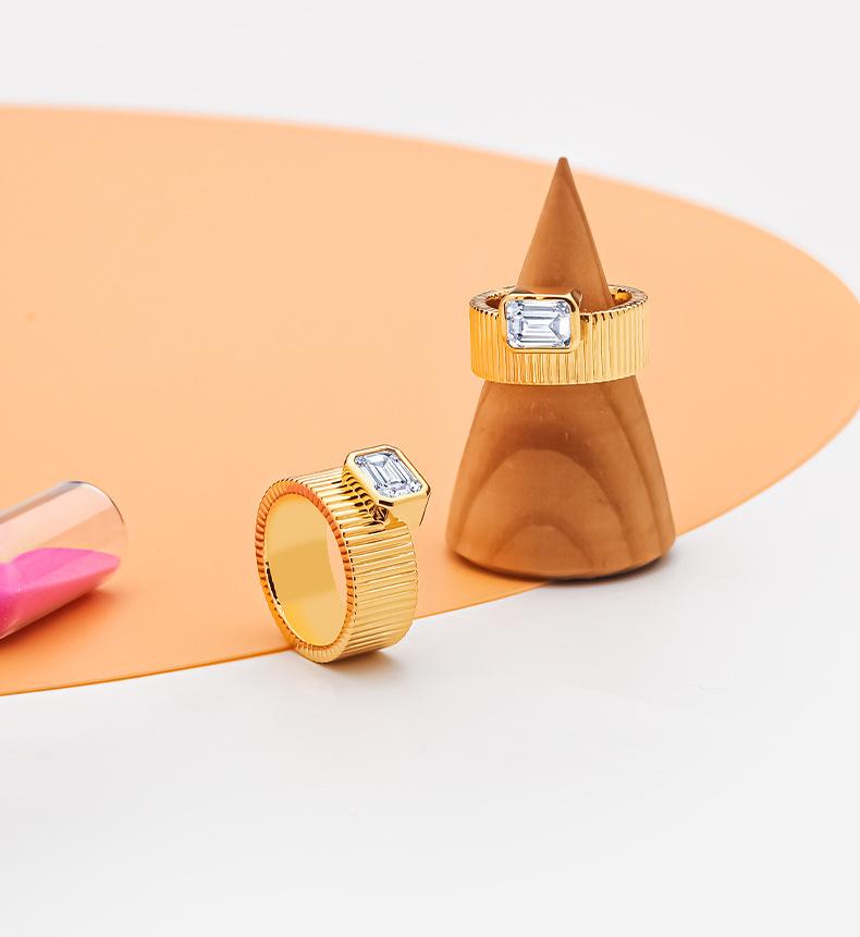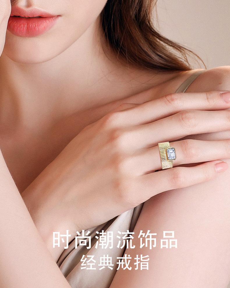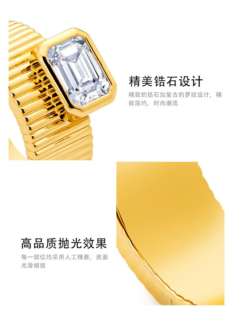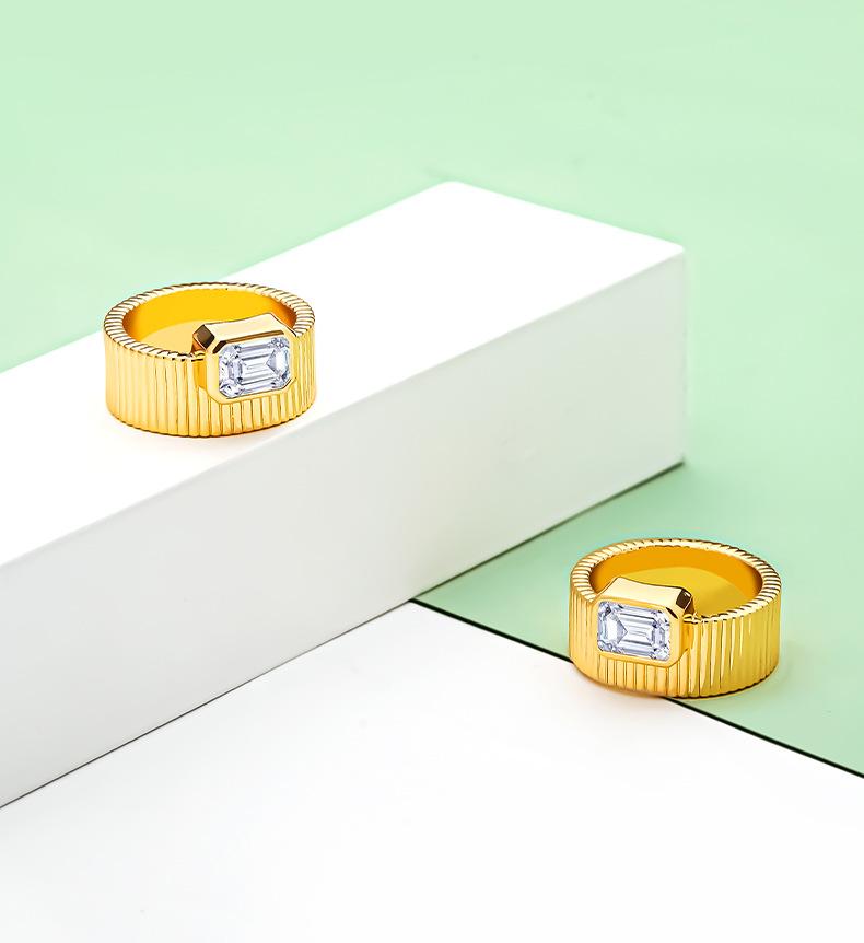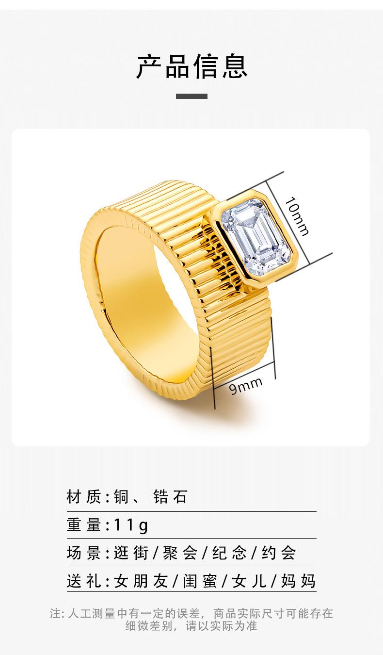 Anillo de Textura de Engranaje de Moda Nueva Europea y Americana de Otoño e Invierno Oro de 18K Zircón Incrustado Cuadrado Simple Apilable para Mujer