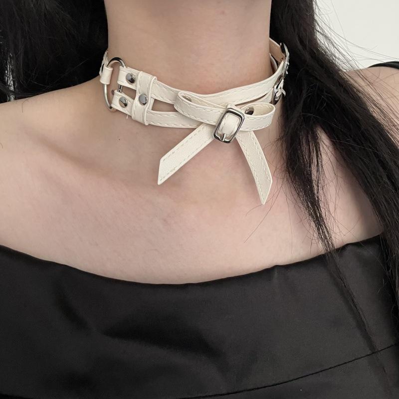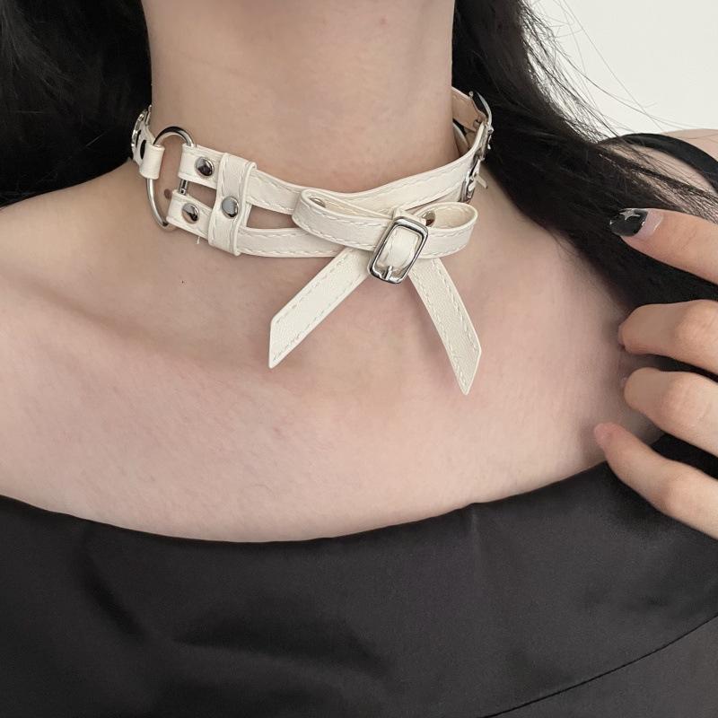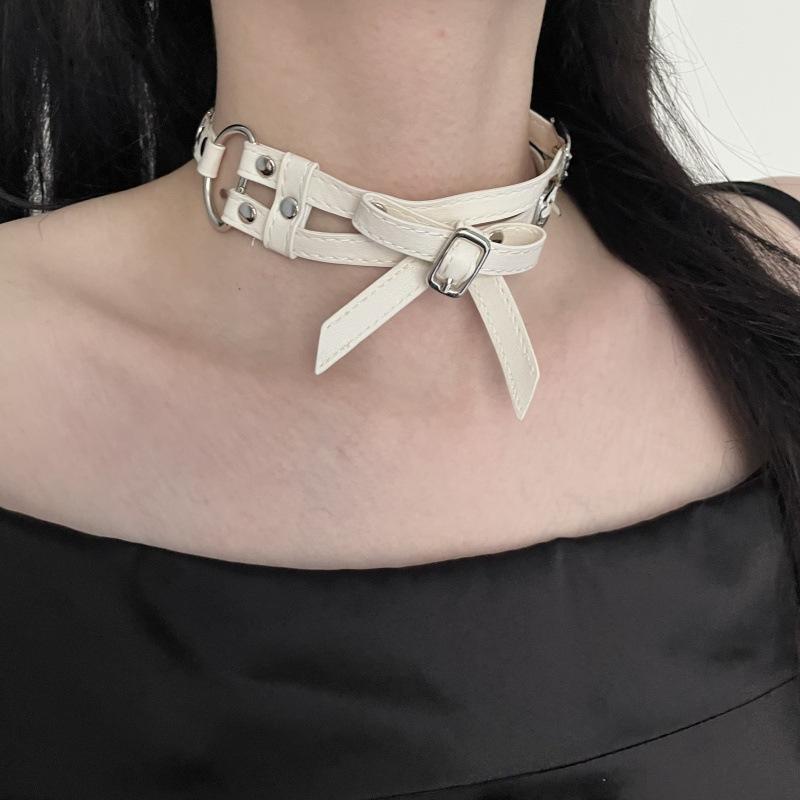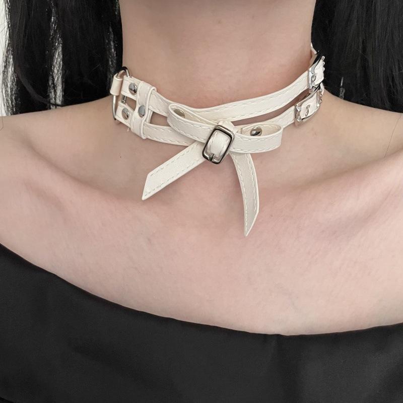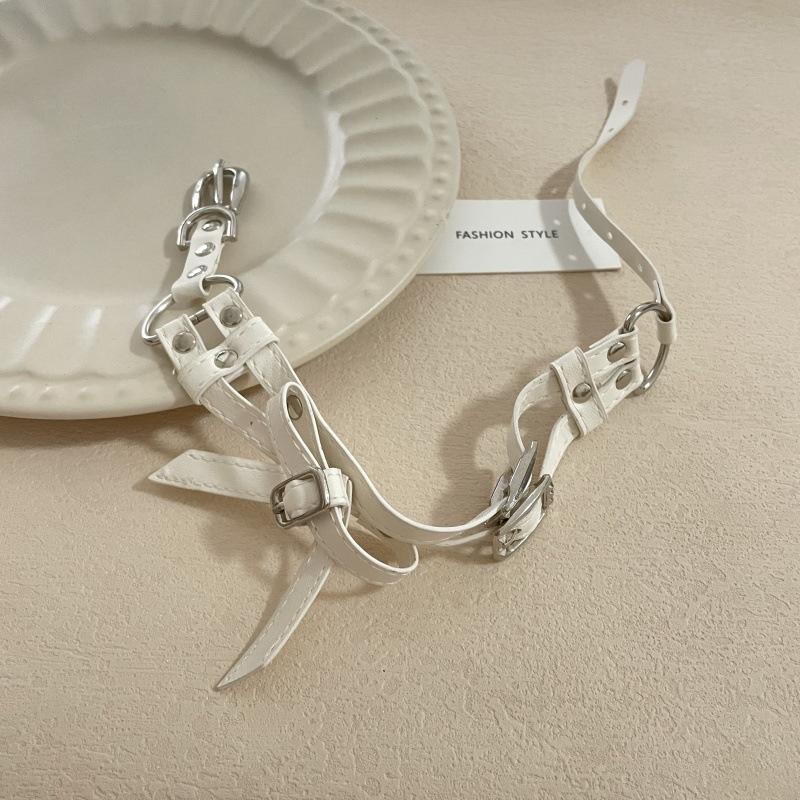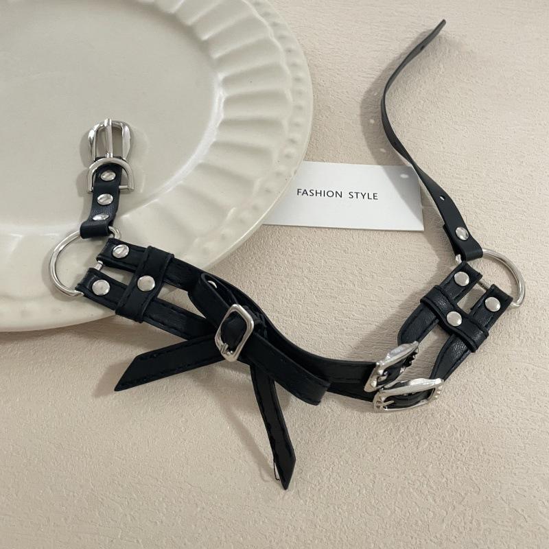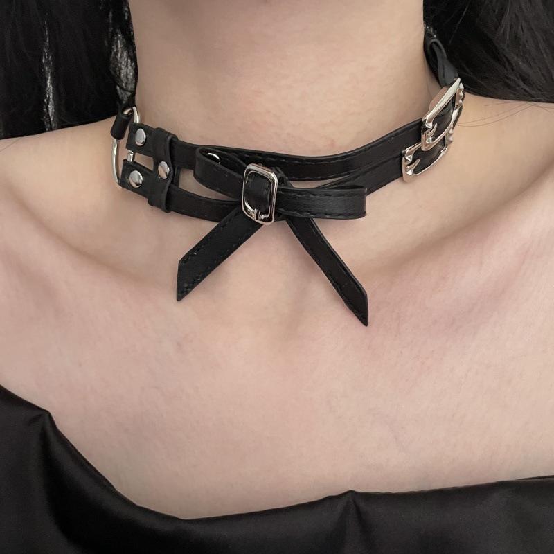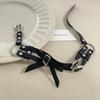 Hebilla de Cinturón de Piel de Estilo Neutro Personalizado Lazo Cadena de Clavícula de Doble Capa Dulce Moda Cool Alto Sentido Nicho Cuello