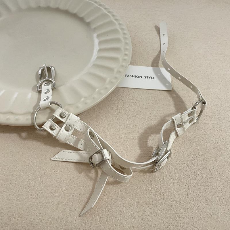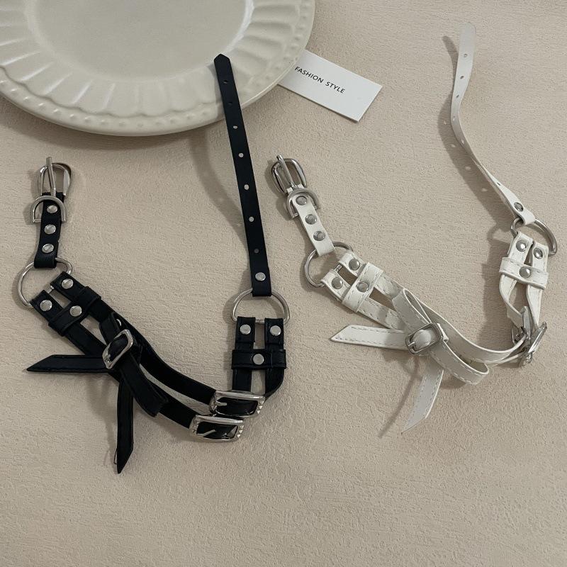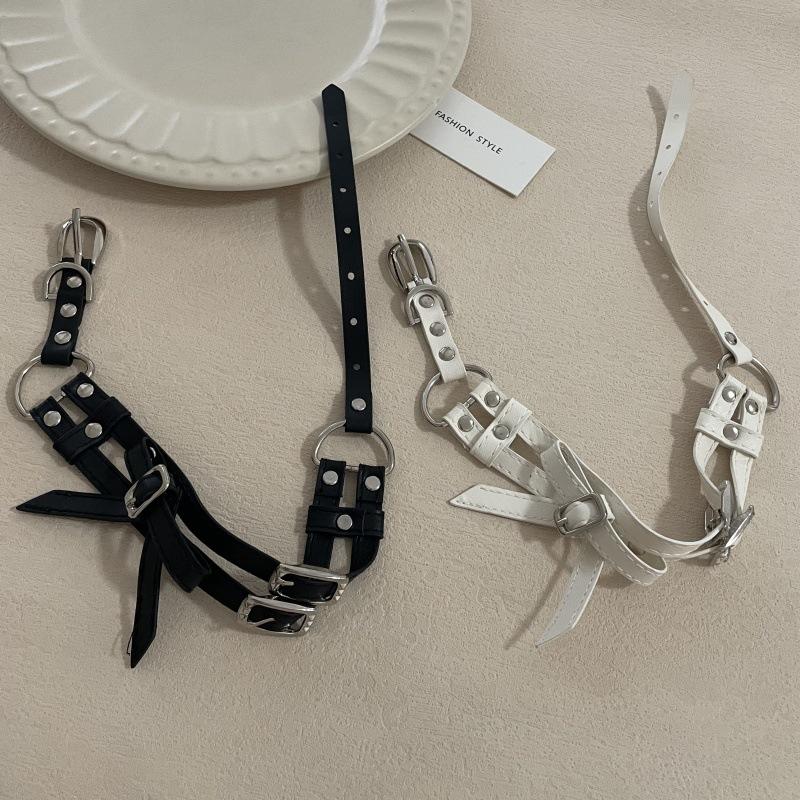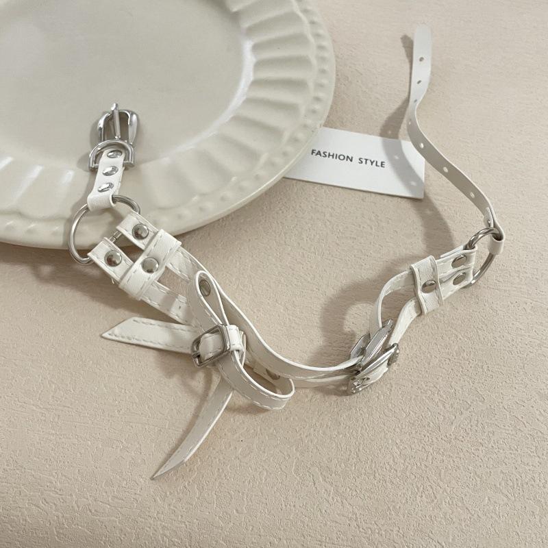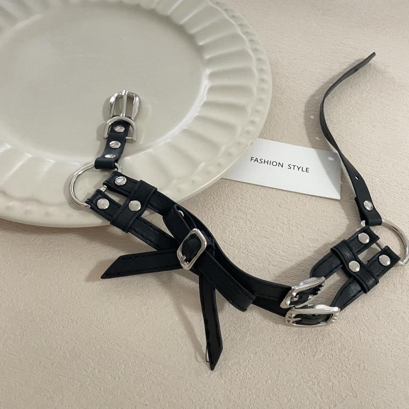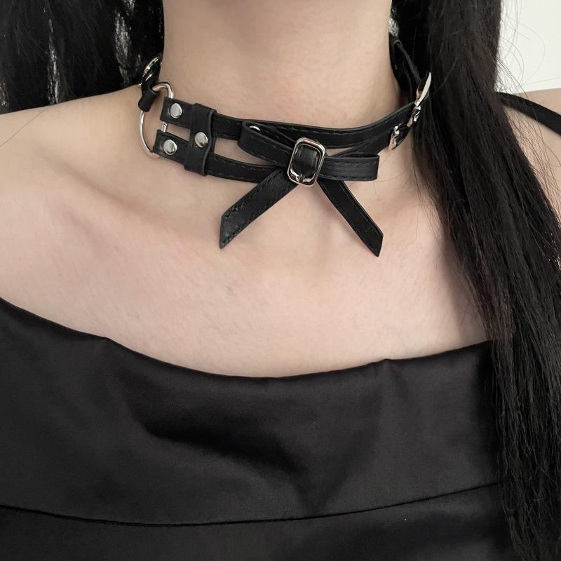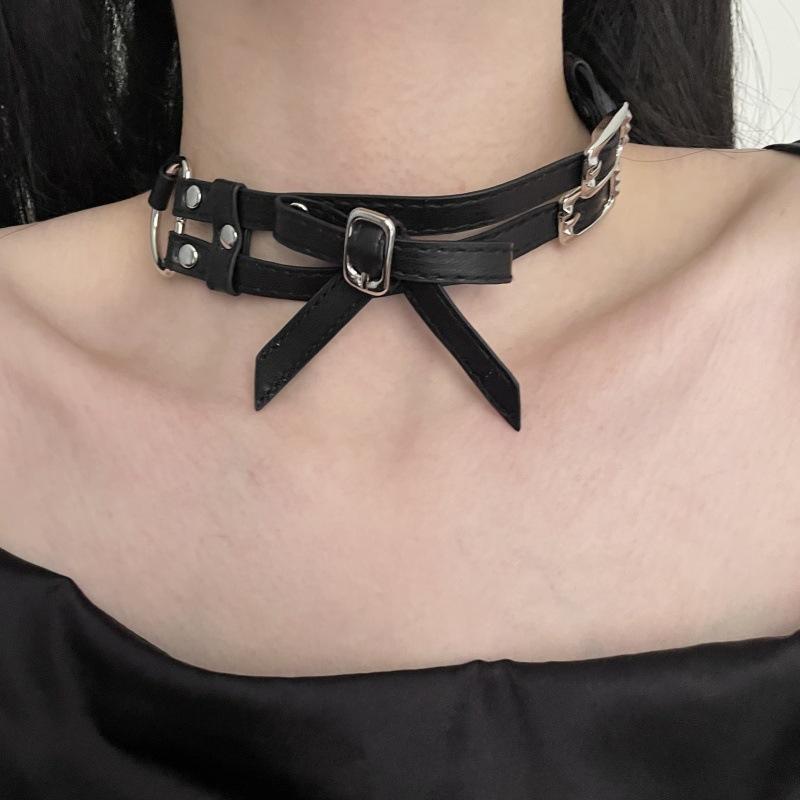 Hebilla de Cinturón de Piel de Estilo Neutro Personalizado Lazo Cadena de Clavícula de Doble Capa Dulce Moda Cool Alto Sentido Nicho Cuello