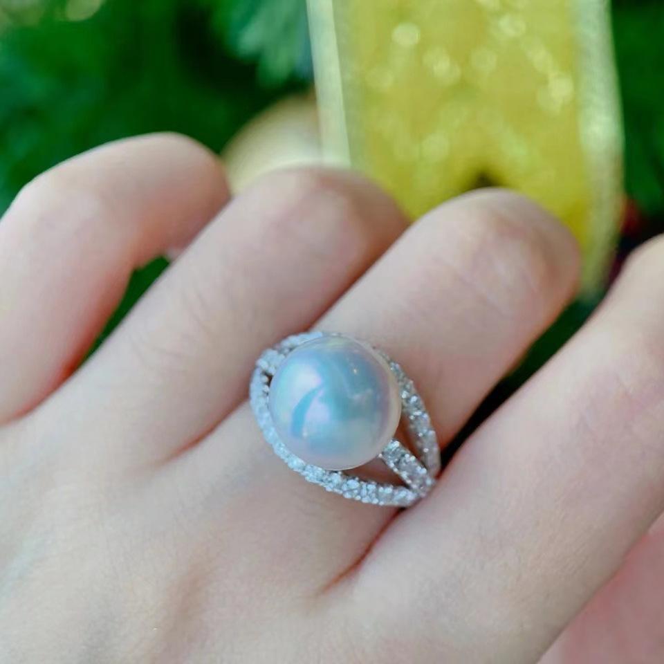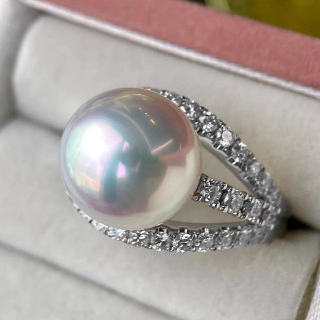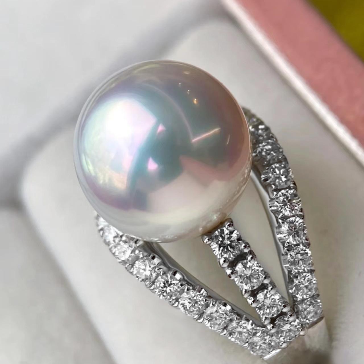 Nuevo anillo de perla para mujer, apertura de celebridad, anillo de dedo fresco, de moda, elegante, con microincrustaciones, lleno de diamantes, soporte vacío, combina con todo, elegante