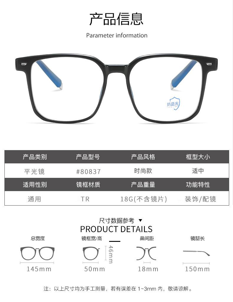 Nuevas gafas retro de montura grande para hombres y mujeres TR90, gafas con montura antiluz azul, gafas cuadradas de montura grande y planas para mujer.