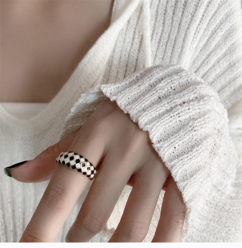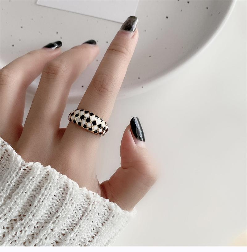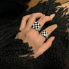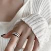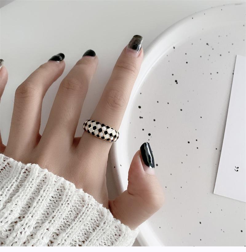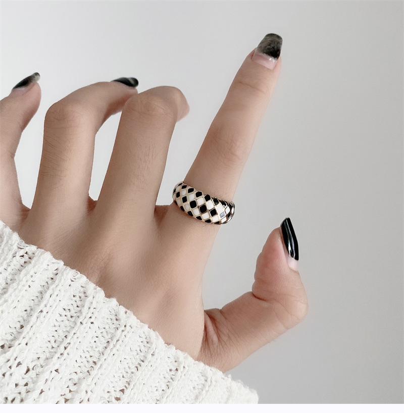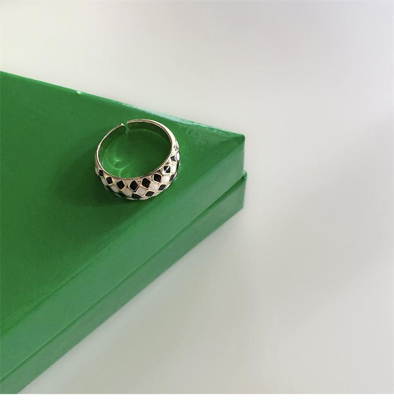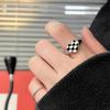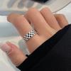 Anillo de Rejilla de Plata S925 Estilo Coreano para Personalidad para Mujer Retro Moda Parche de Color Tablero de Ajedrez Anillo Abierto Hip-Hop Comida Anillo de Dedo Trendy