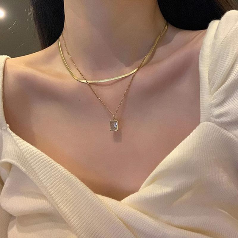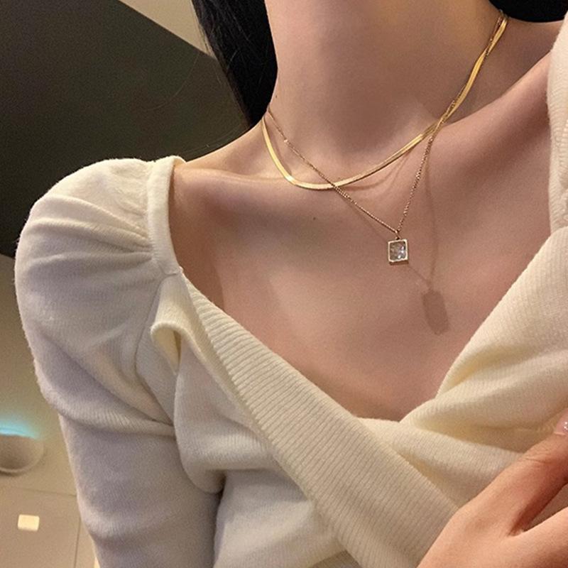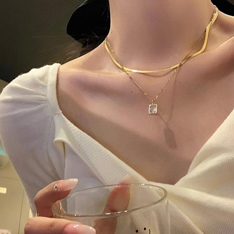 Collar de clavícula apilado de doble capa simple europeo y americano para mujer, ins hip hop fashion, estilo frío nicho, cadena de hueso de serpiente, accesorios