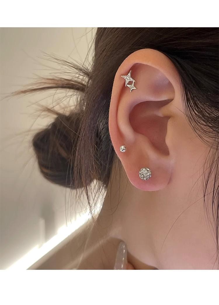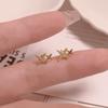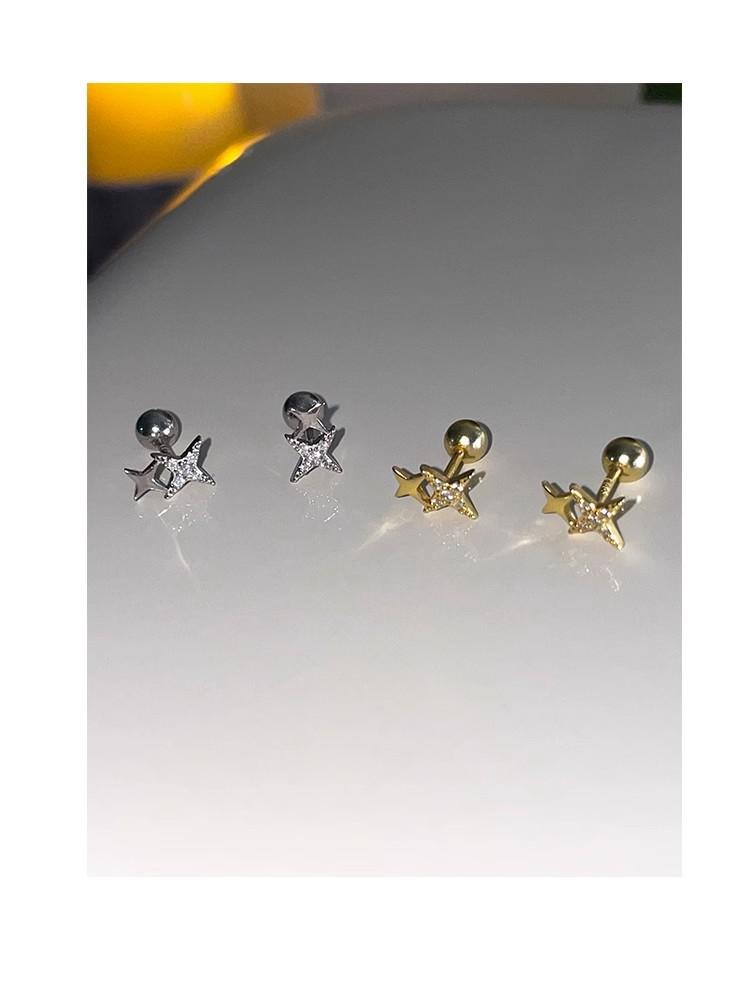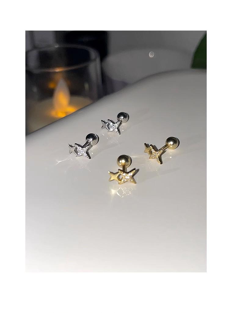Star zircon stud earrings screw style white gold, Star zircon stud earrings screw style gold color, Star zirco...