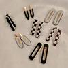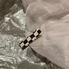 Black and white checkerboard grid wave hairpin [one]], Black and white checkerboard grid curved hairpin [one]]...