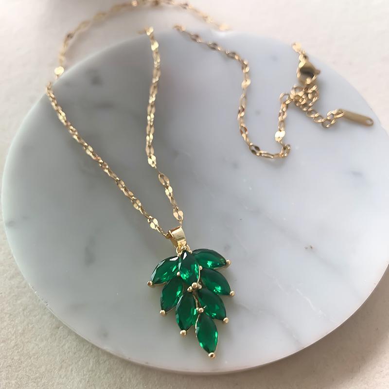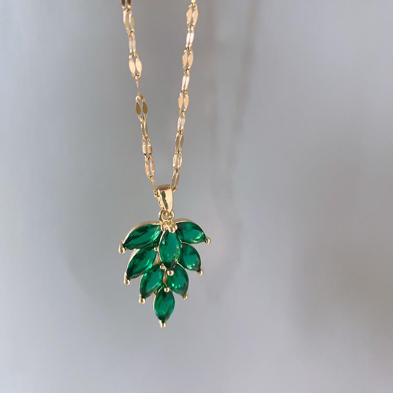 Cadena de clavícula de hoja verde de acero de titanio de estilo nuevo y simple, collar rico de una hoja para mujer, cadena dorada que combina con todo famosa en Internet, no se decolora