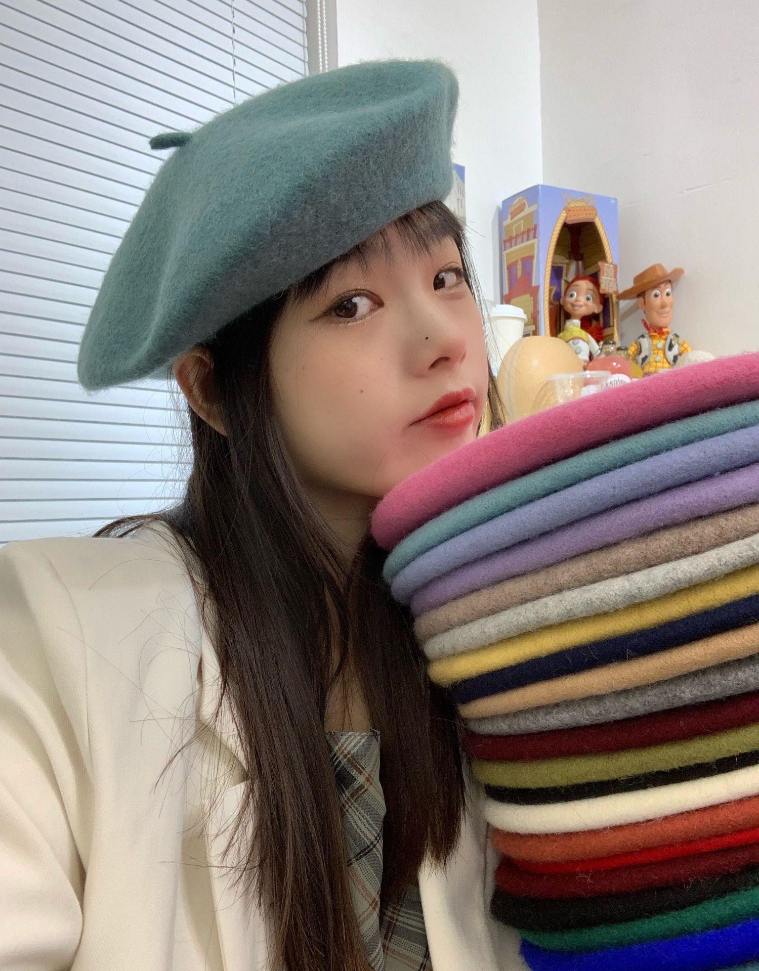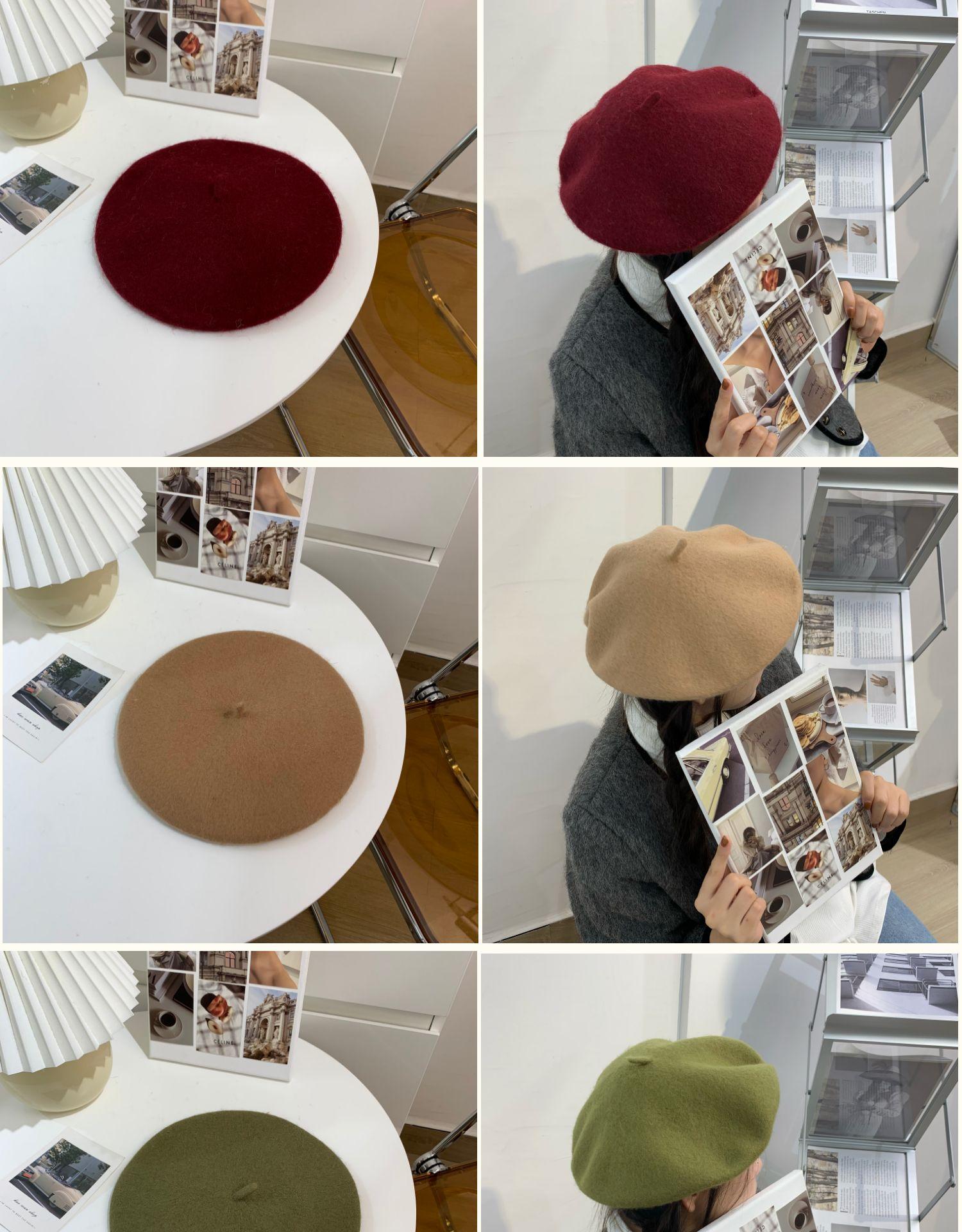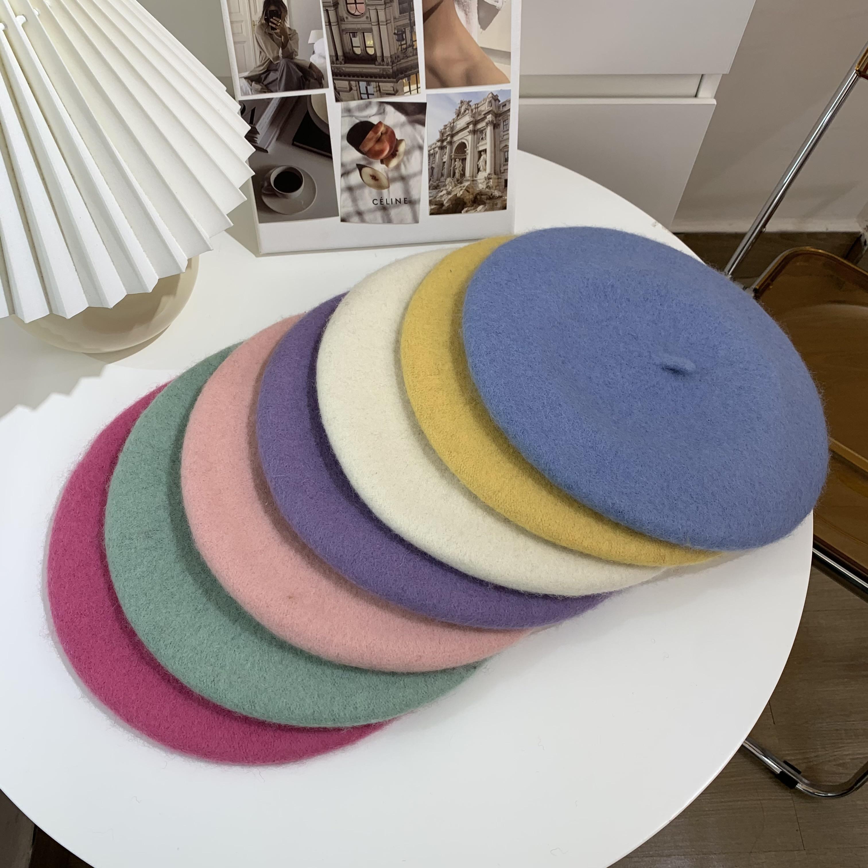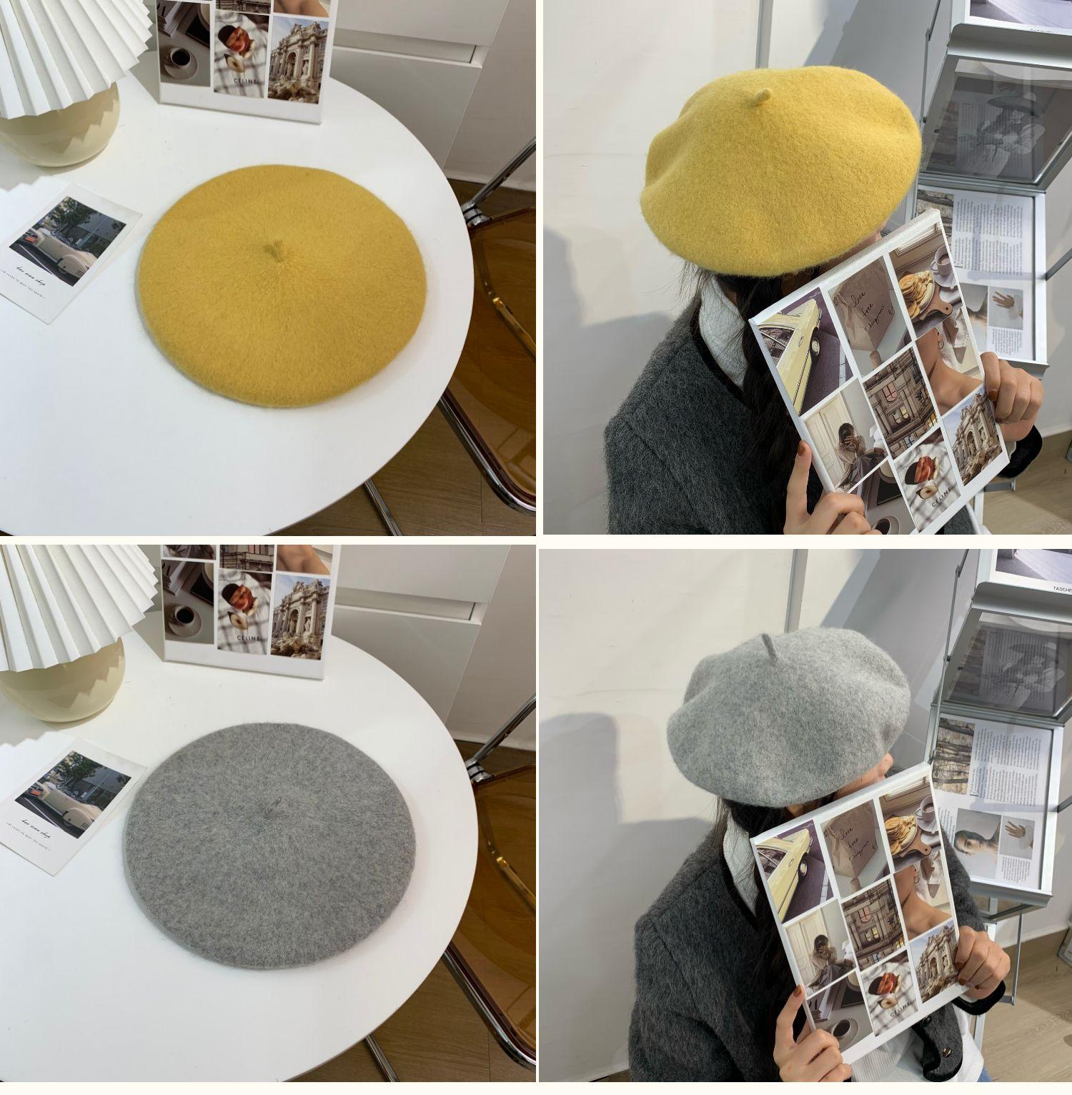 Lao Chen Auto-retención/Boina de Lana Sombrero Joker de Estilo Coreano para Mujer Sombrero de Pintor Retro Color Caramelo Estilo Otoño e Invierno para Mujer