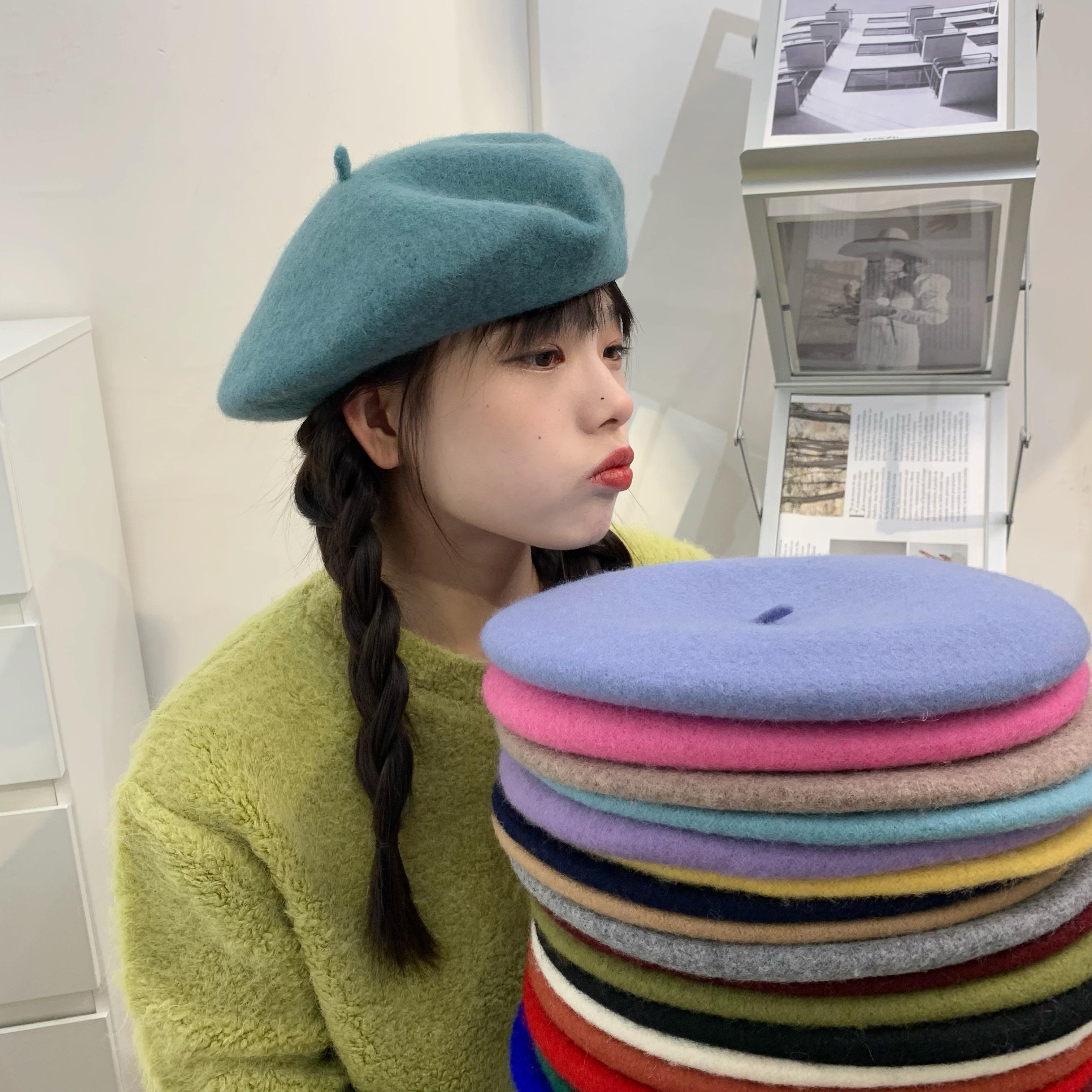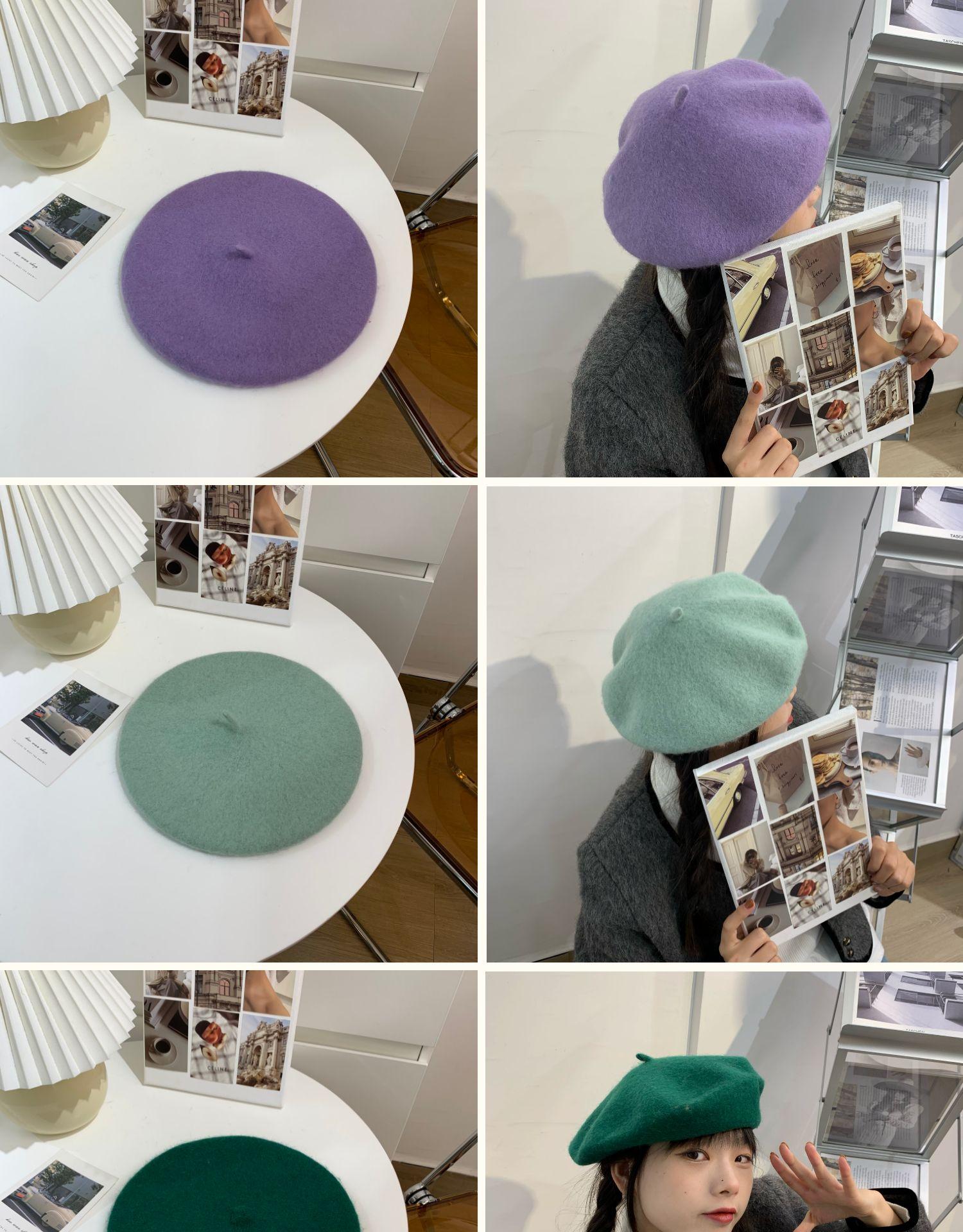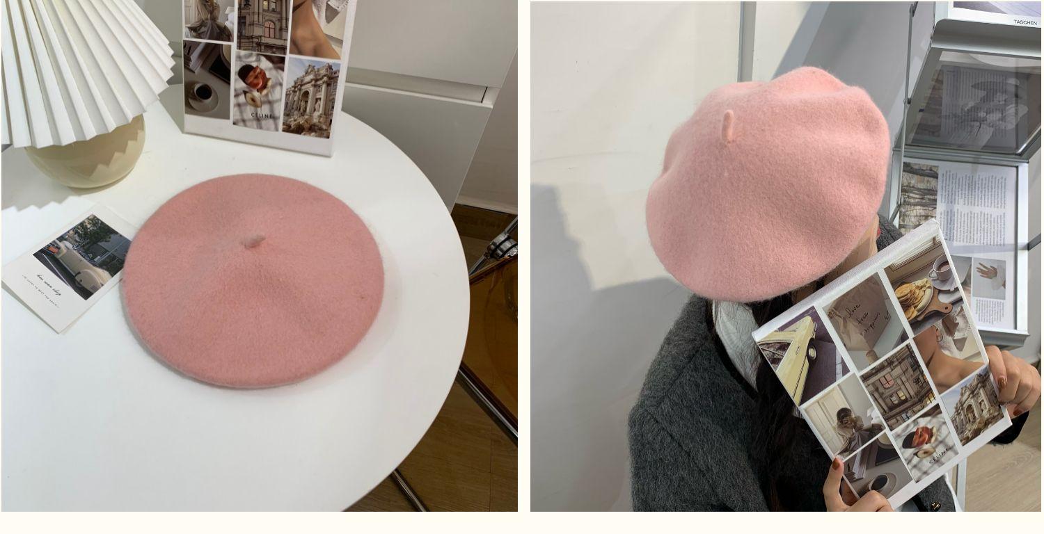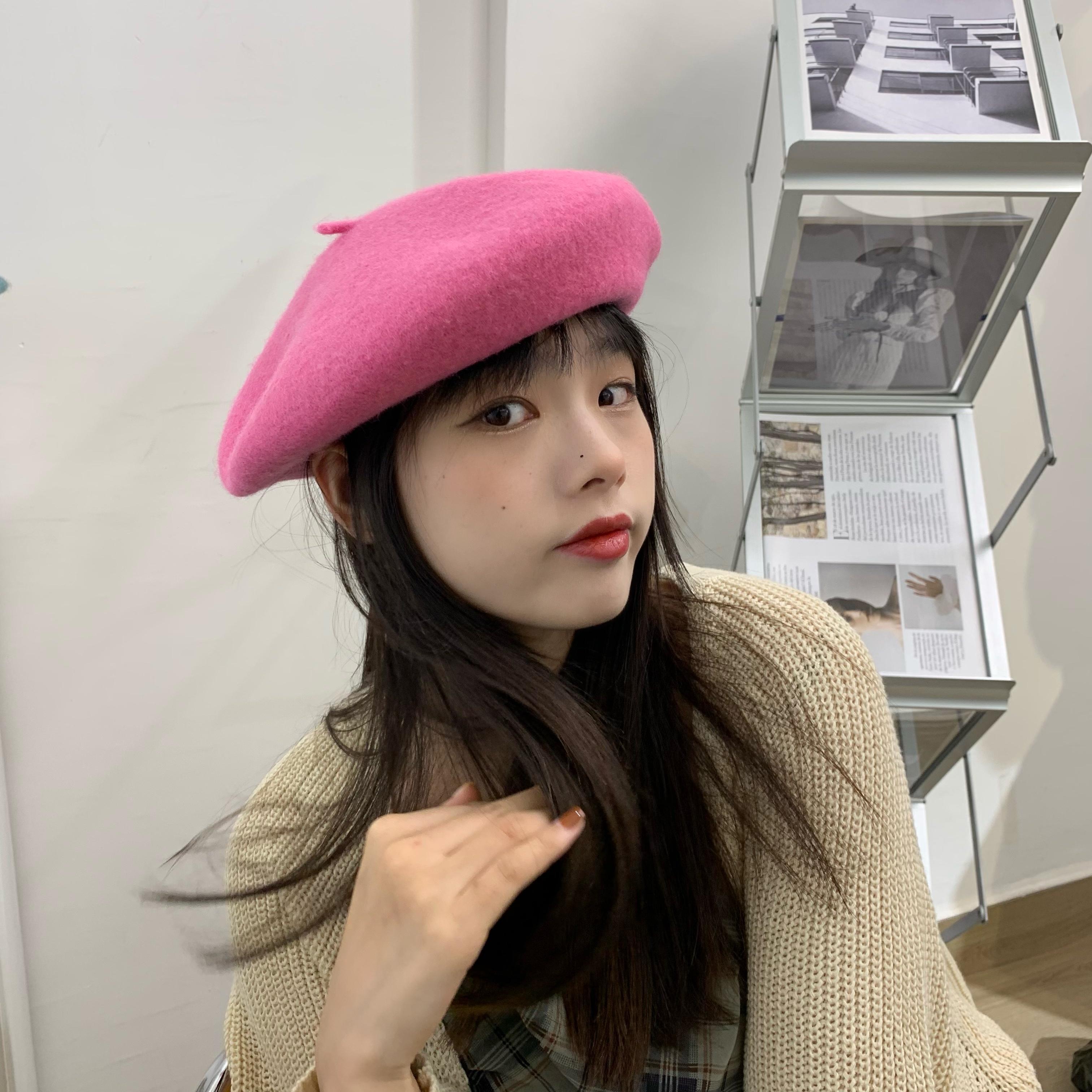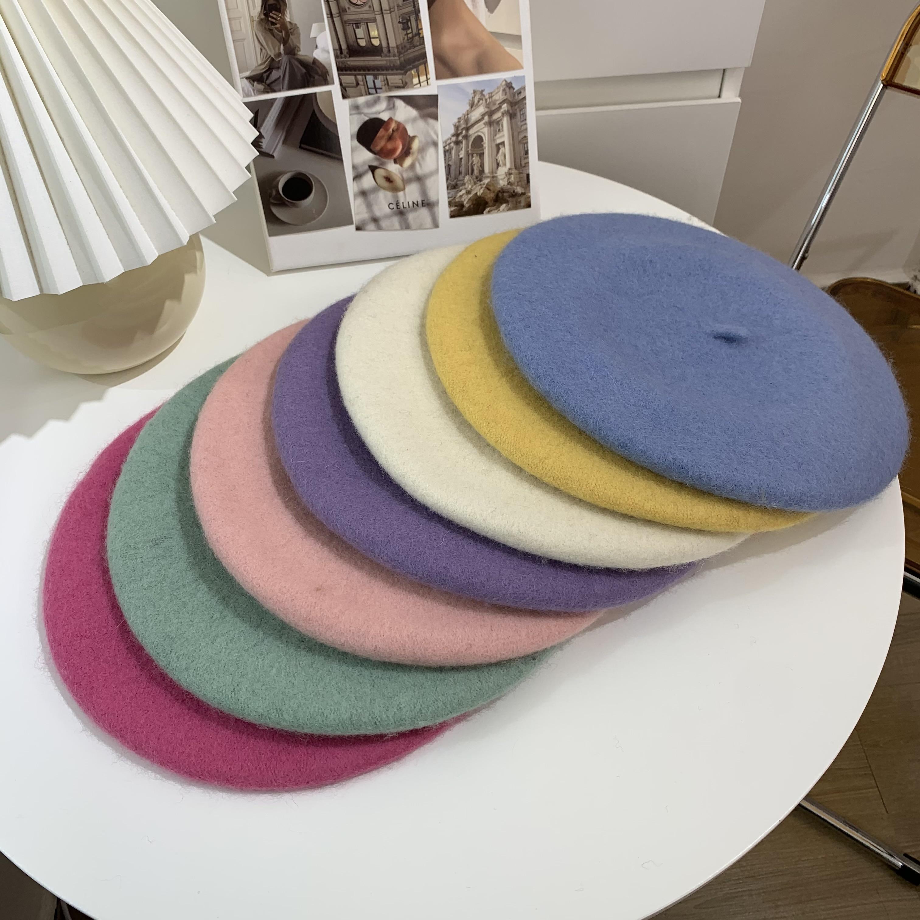 Lao Chen Auto-retención/Boina de Lana Sombrero Joker de Estilo Coreano para Mujer Sombrero de Pintor Retro Color Caramelo Estilo Otoño e Invierno para Mujer