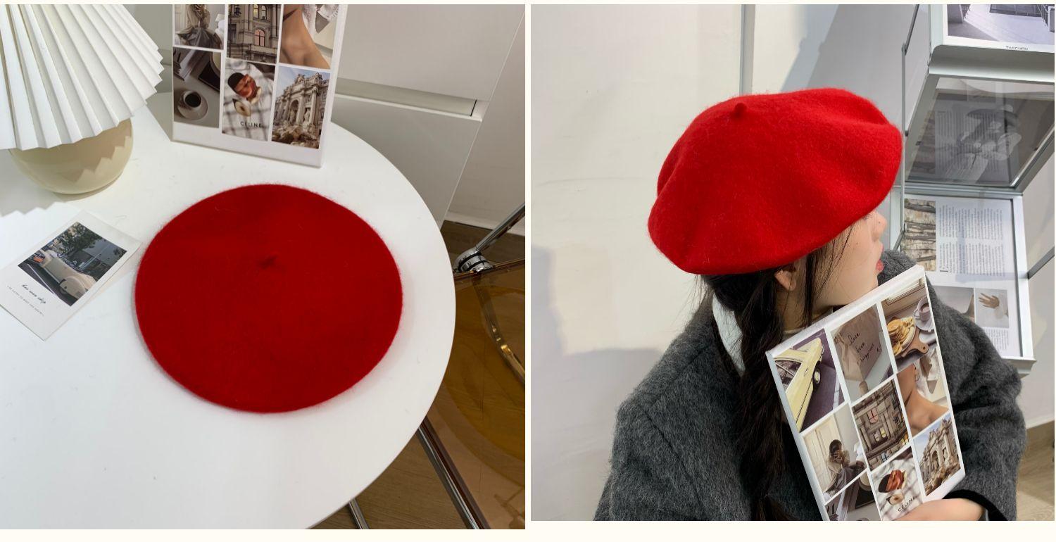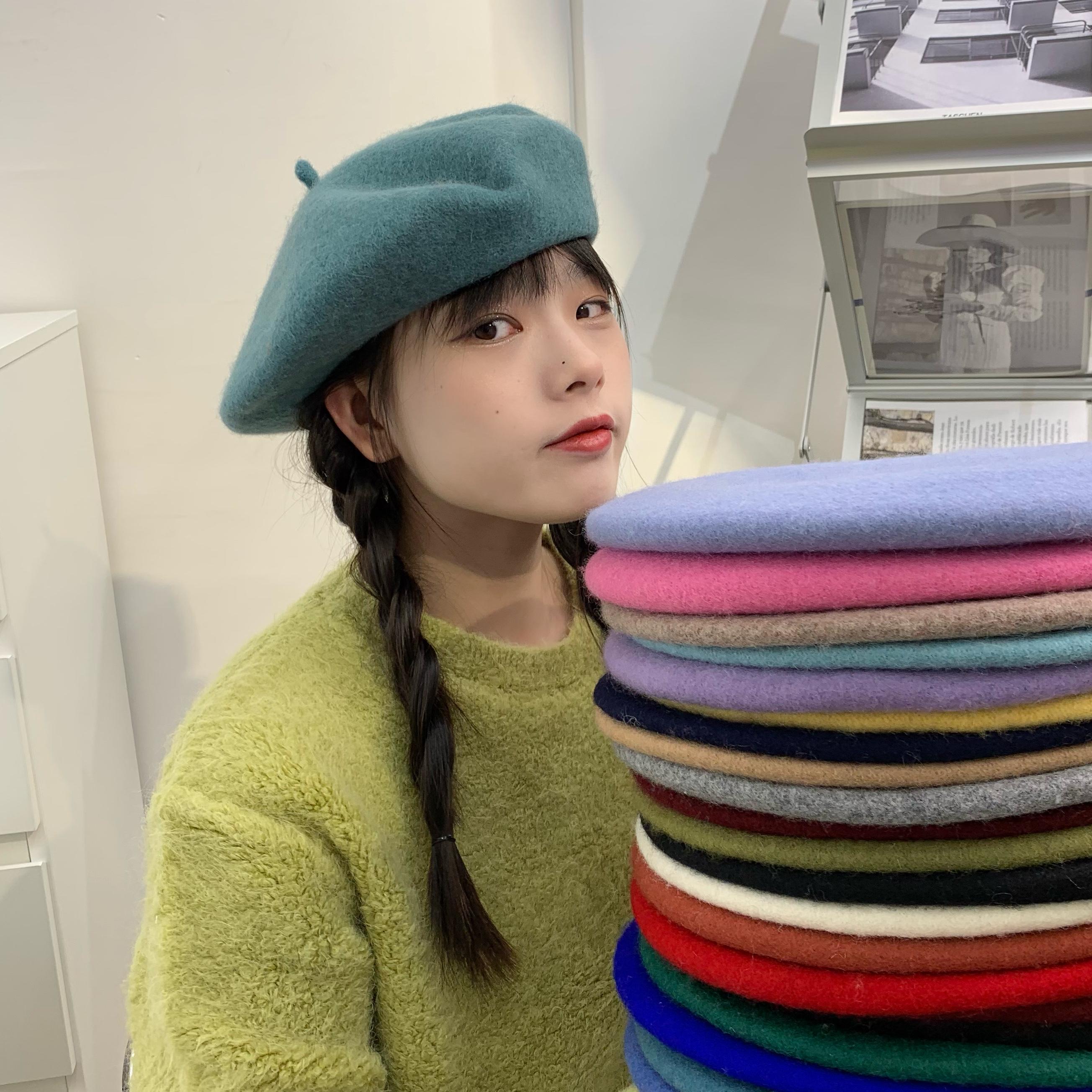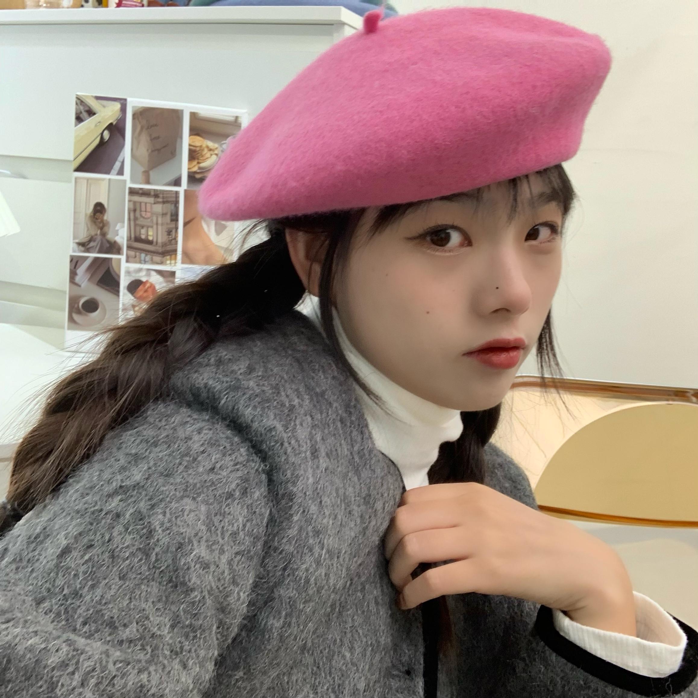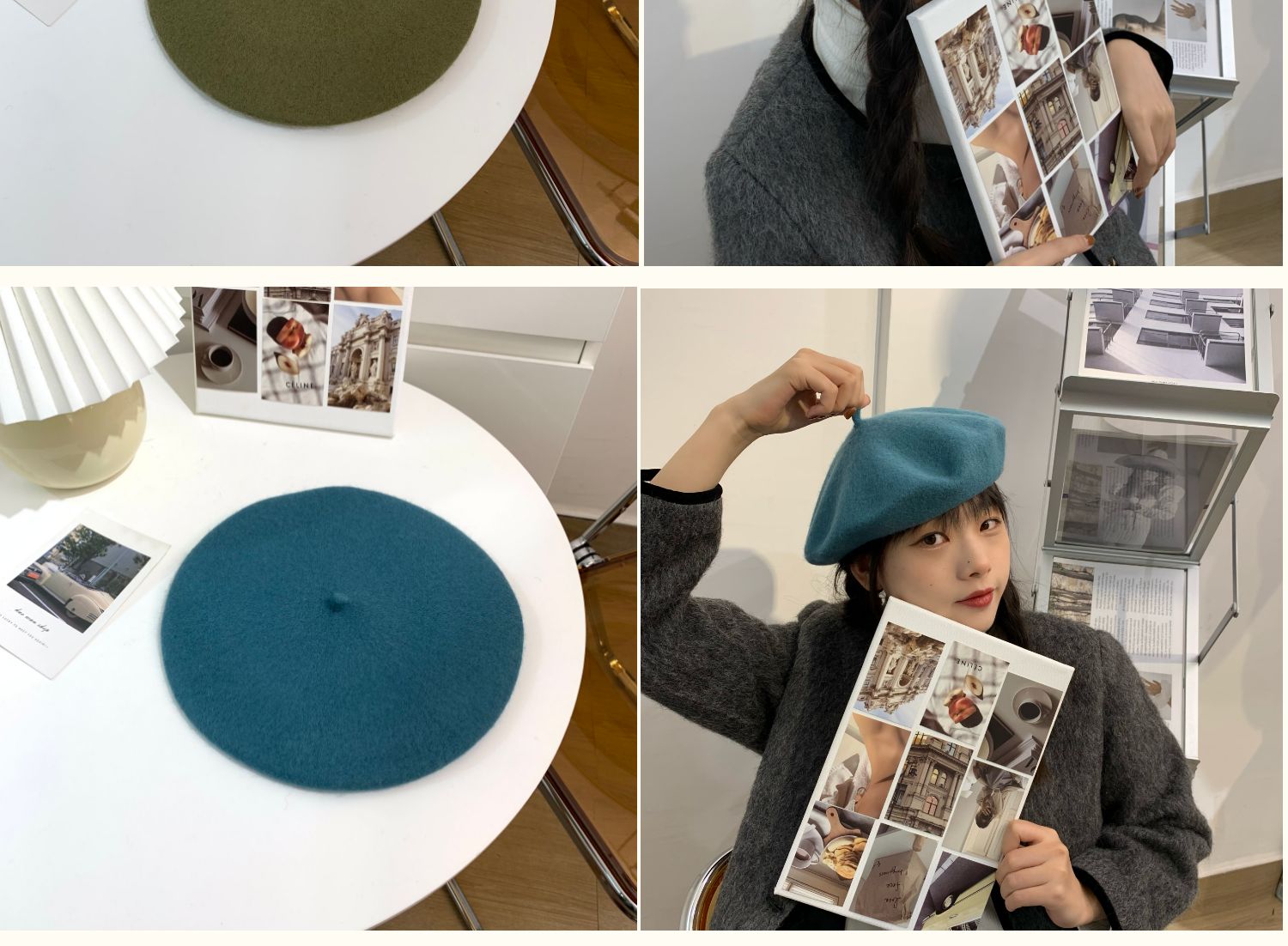 Lao Chen Auto-retención/Boina de Lana Sombrero Joker de Estilo Coreano para Mujer Sombrero de Pintor Retro Color Caramelo Estilo Otoño e Invierno para Mujer