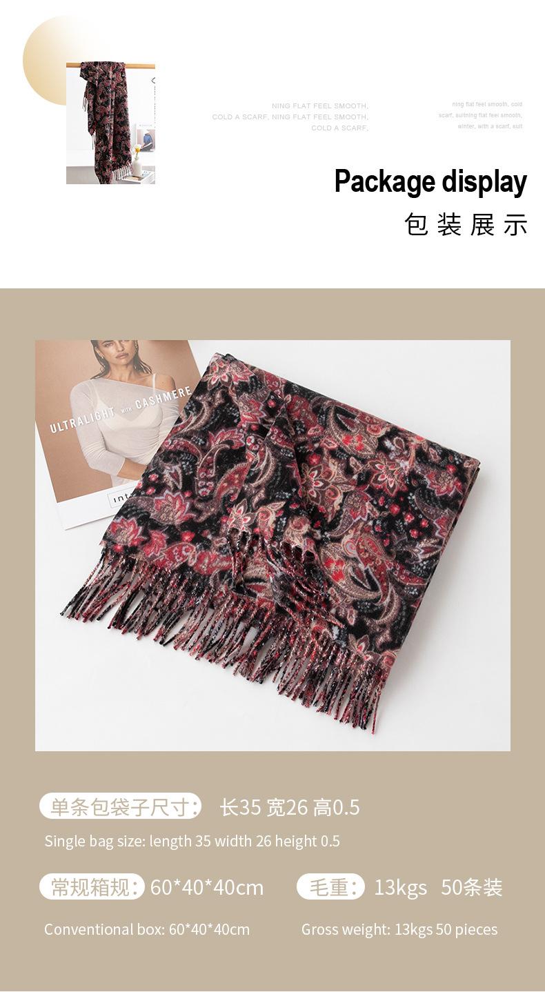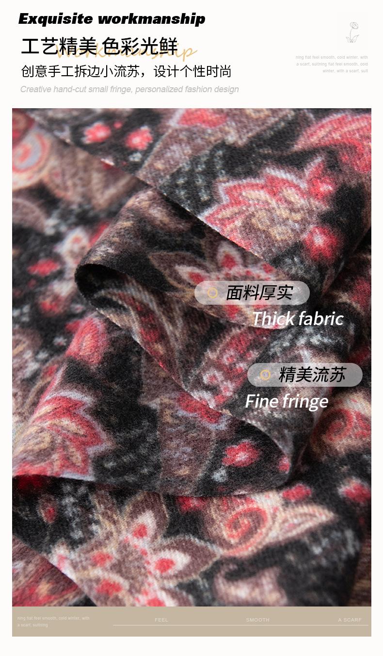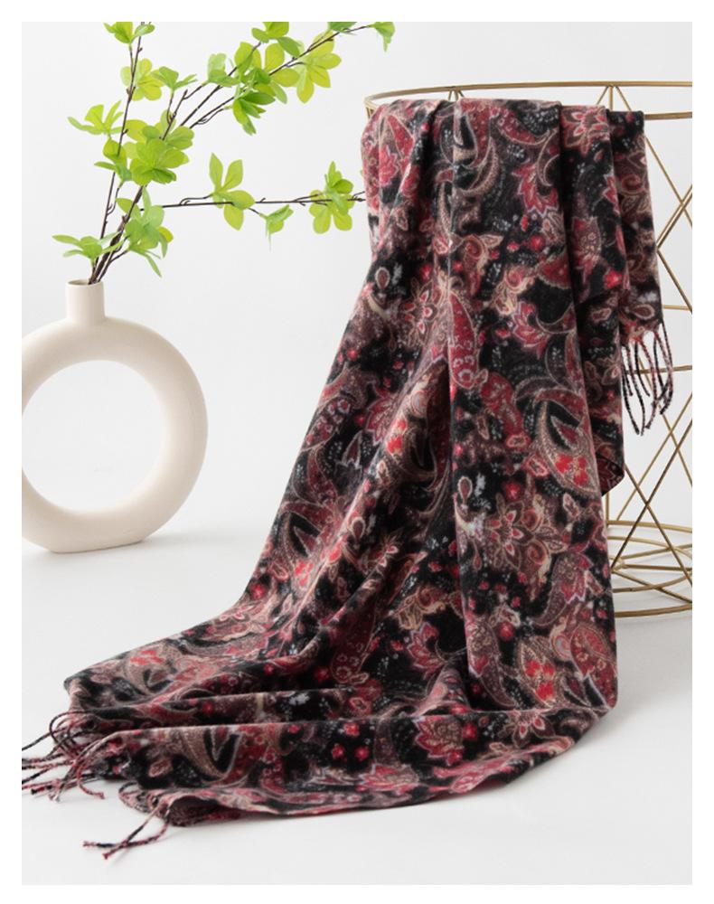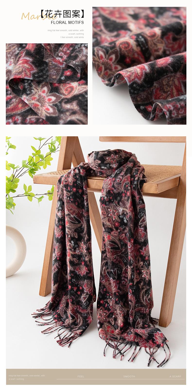 Otoño e Invierno Nuevo Elegante Bufanda Floral de Moda Versátil de Imitación Cachemira Cálida Suave Bufanda Retro Venta al por Mayor