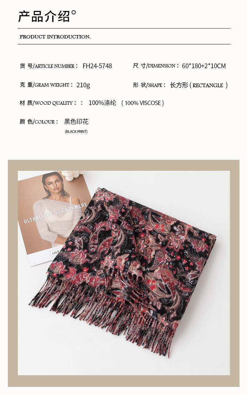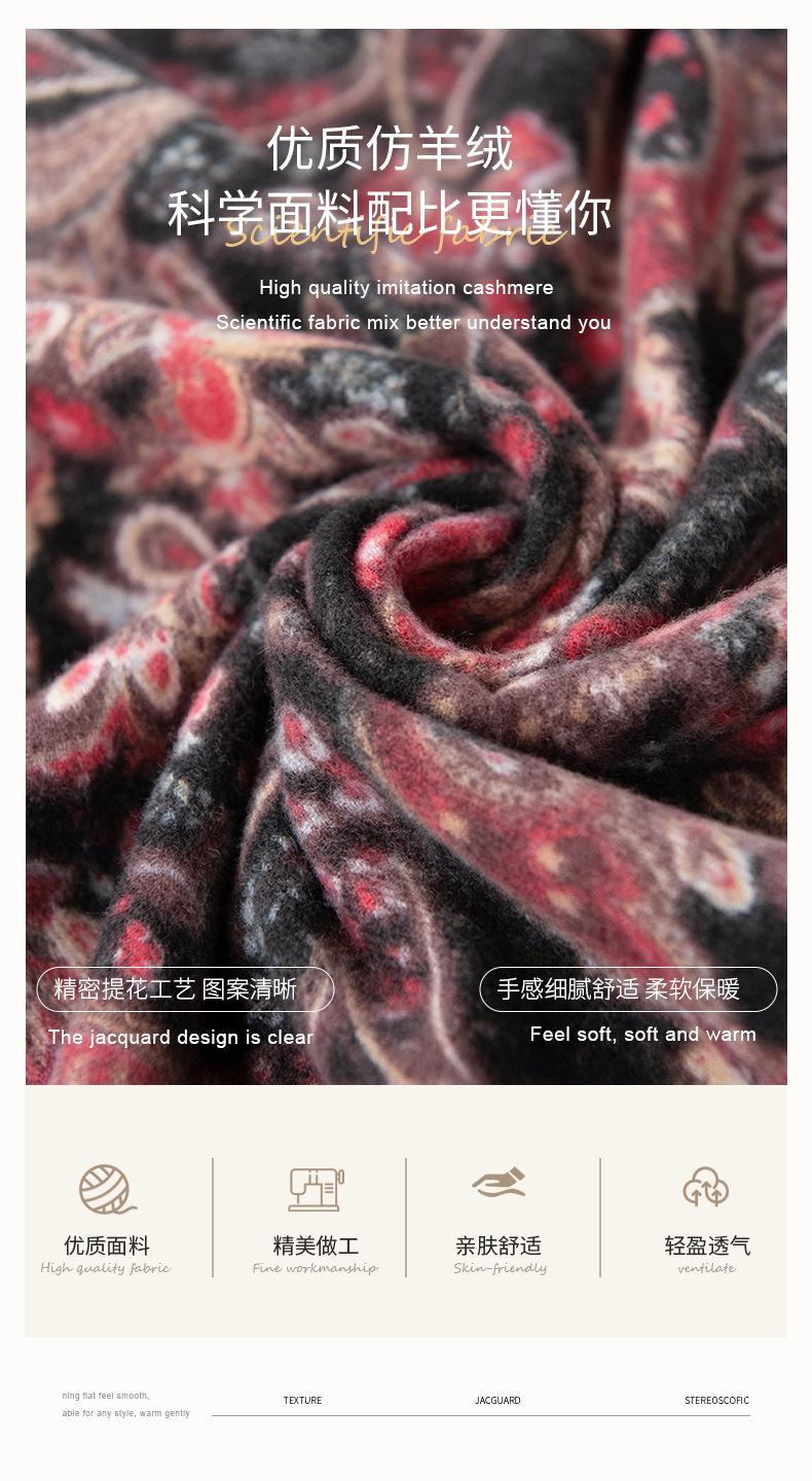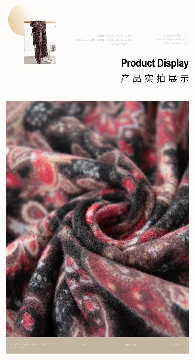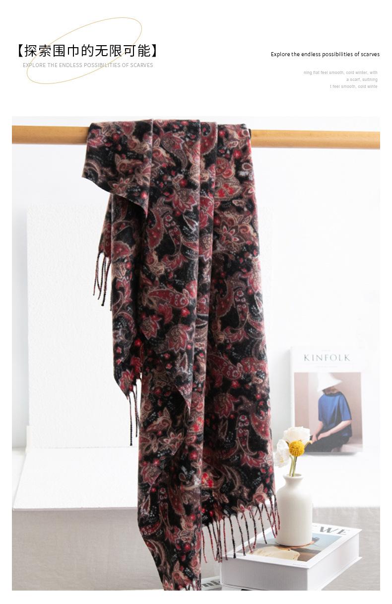 Otoño e Invierno Nuevo Elegante Bufanda Floral de Moda Versátil de Imitación Cachemira Cálida Suave Bufanda Retro Venta al por Mayor