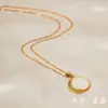 Collar de acero inoxidable de oro de 18 quilates con colgante de sol y luna, estilo europeo y americano, con concha natural, diamante y circón, accesorios para mujer