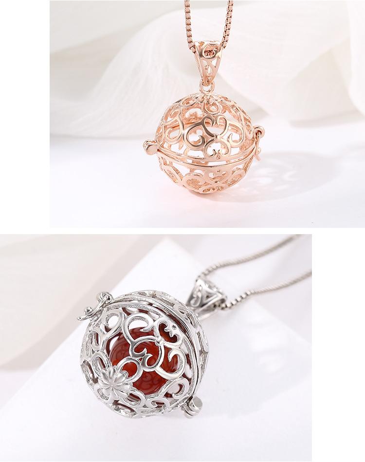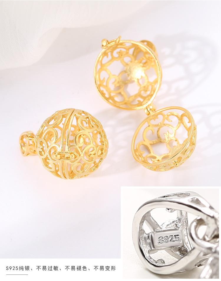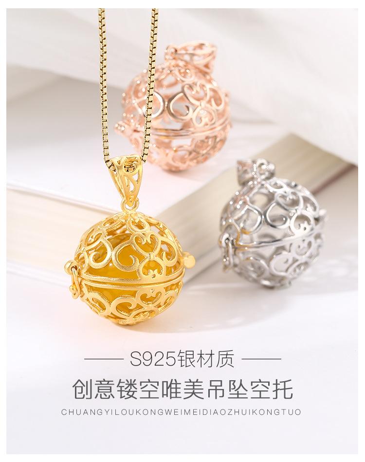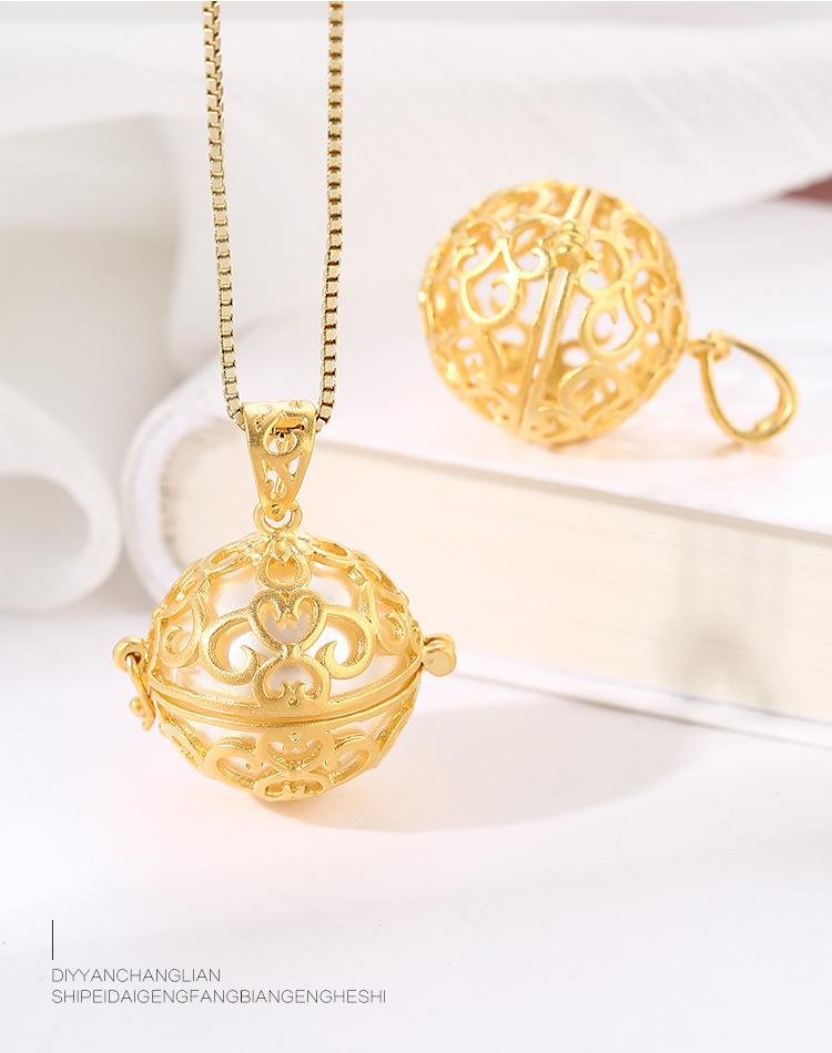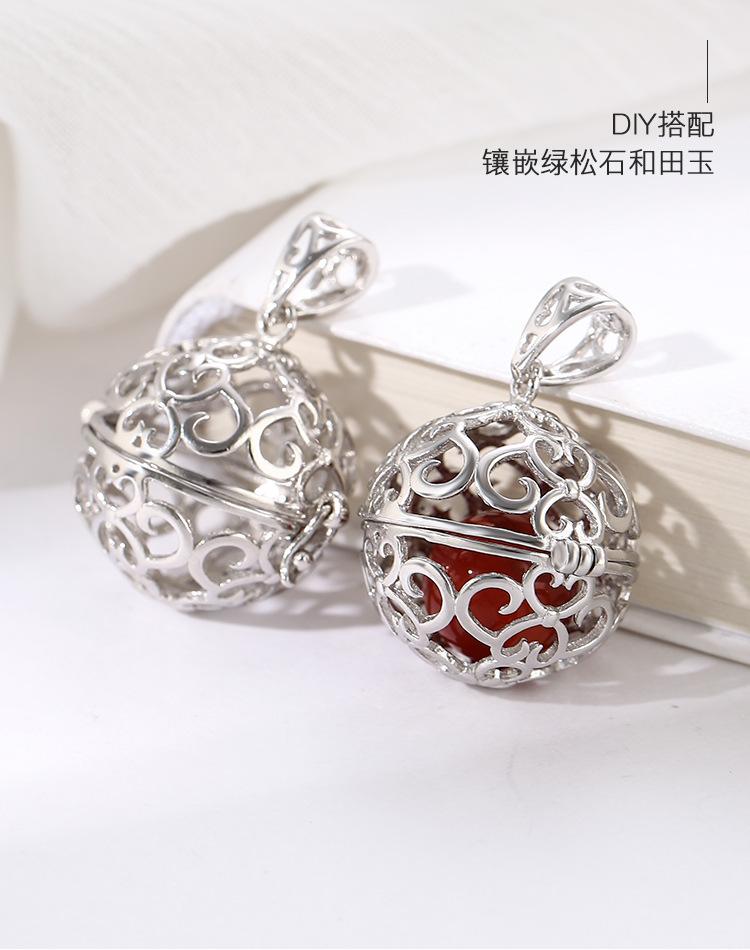 Colgante de cuentas redondas huecas de plata esterlina s925, estilo nacional, rima antigua, método antiguo, colgante de píldora fragante de oro, colgante de collar