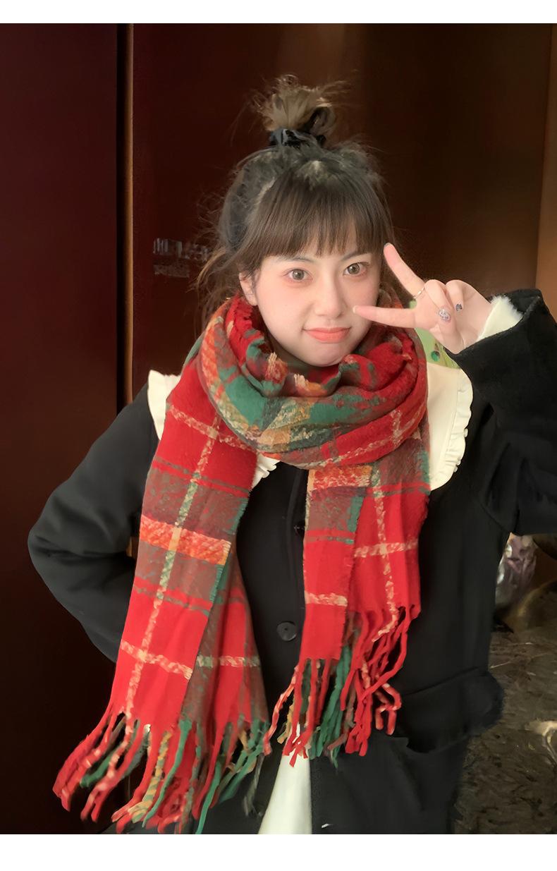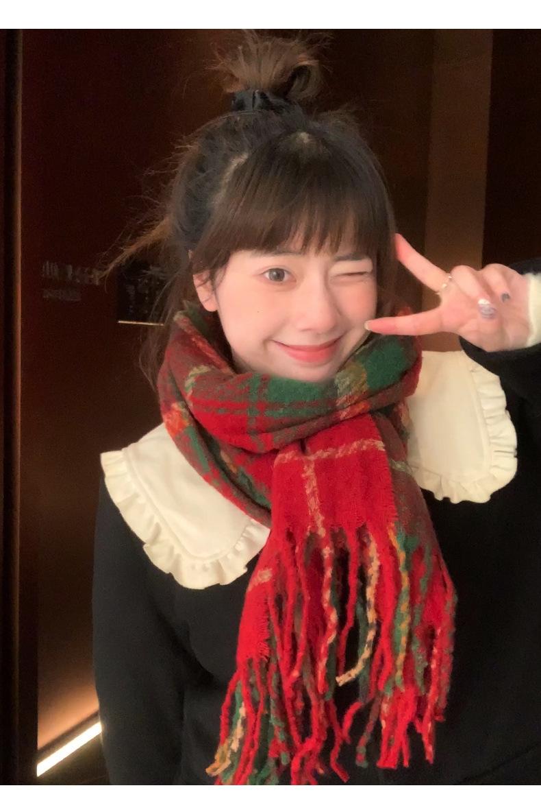 Estudiante Yang elige estrictamente bufanda para niñas invierno 2023 nueva atmósfera de otoño e invierno estilo coreano bufanda a cuadros entrega de una pieza