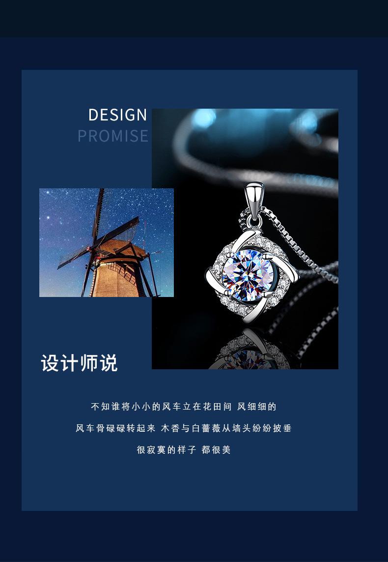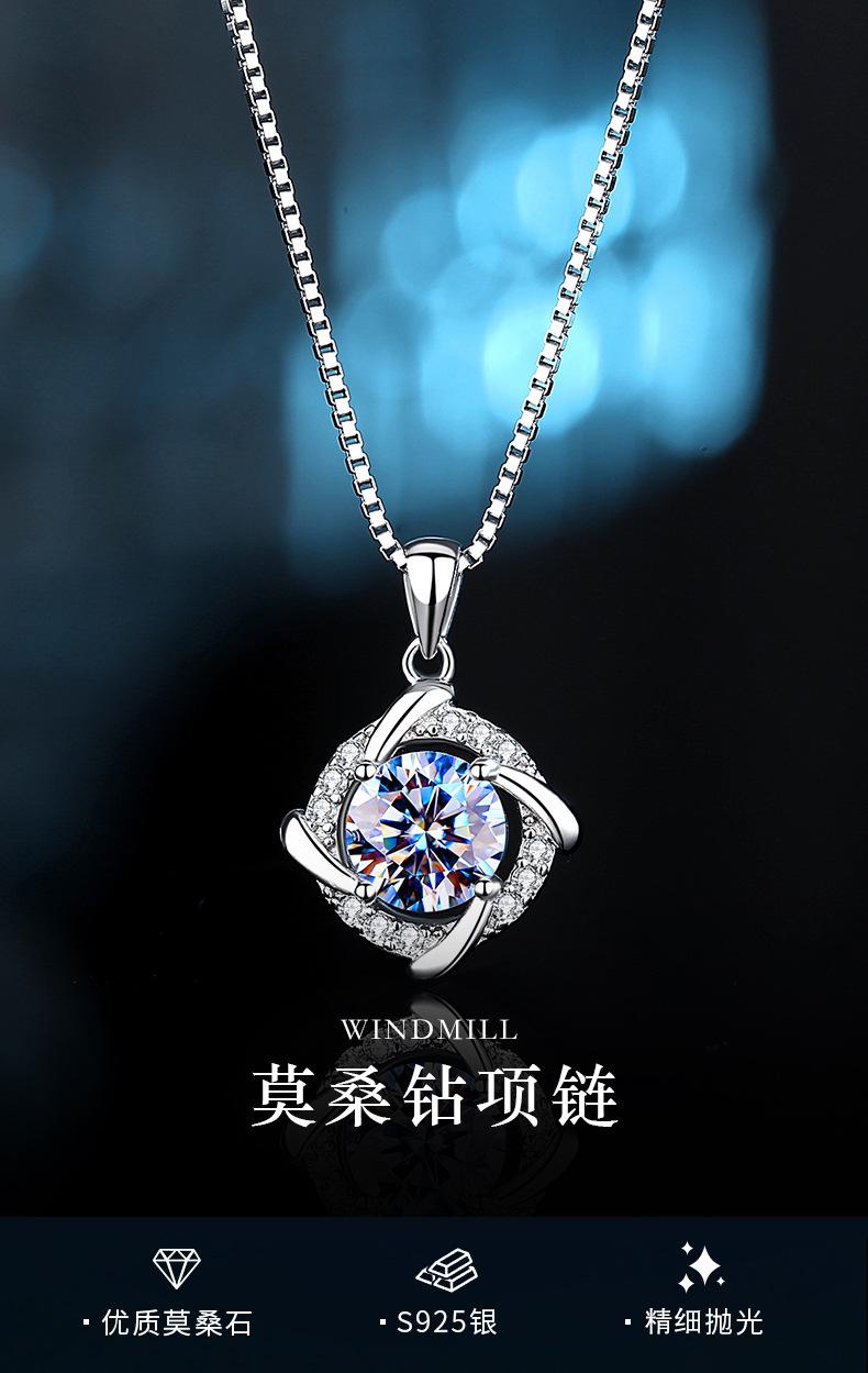 Collar con colgante de plata de ley con diamantes de 1 quilate y diseño de molino de viento Mosang, cadena de clavícula con flor de temperamento femenino, colgante de moda coreana, cabello personalizado.
