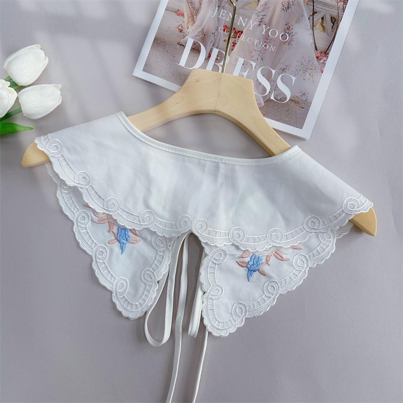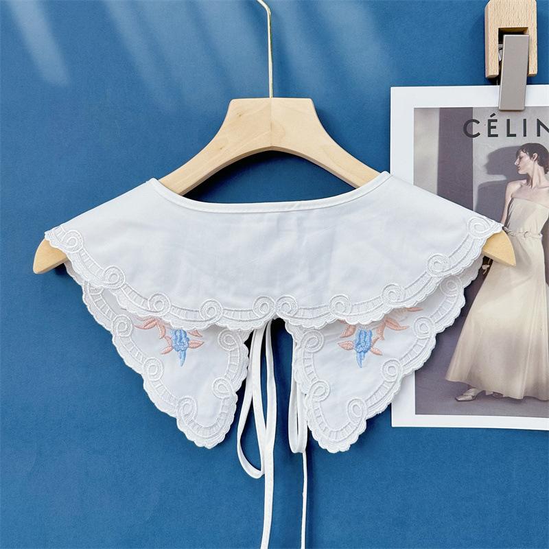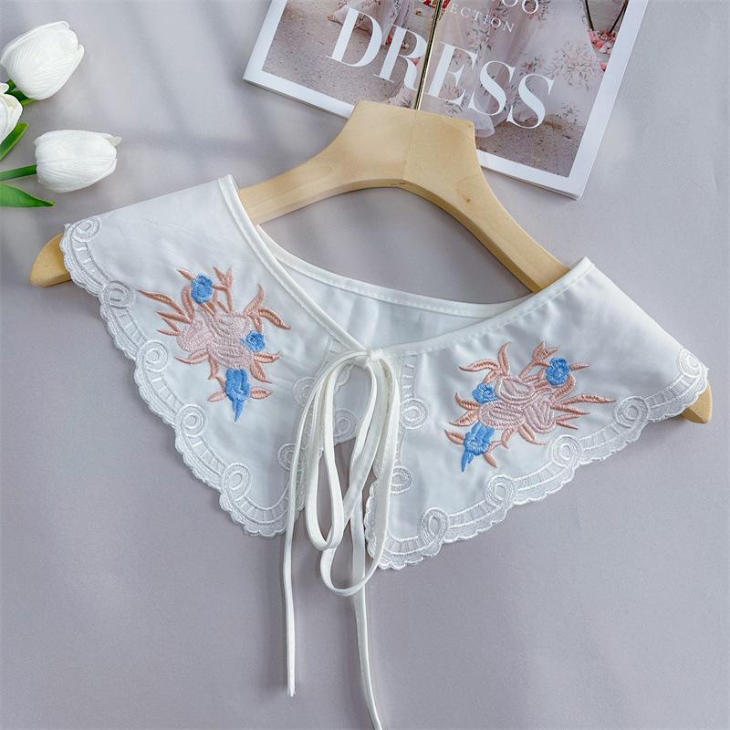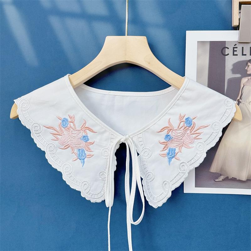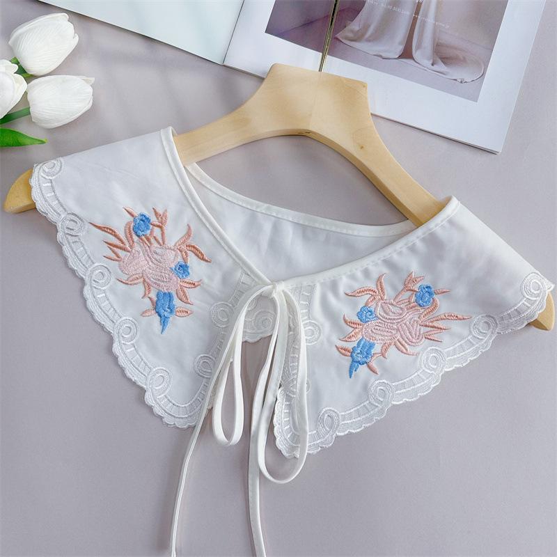 Nuevo Cuello Falso Bordado Colorido Blanco de Venta Caliente Transfronterizo para Mujer, Artefacto Reductor de Edad, Chal de Flor de Cuello Moderno y Versátil al Por Mayor