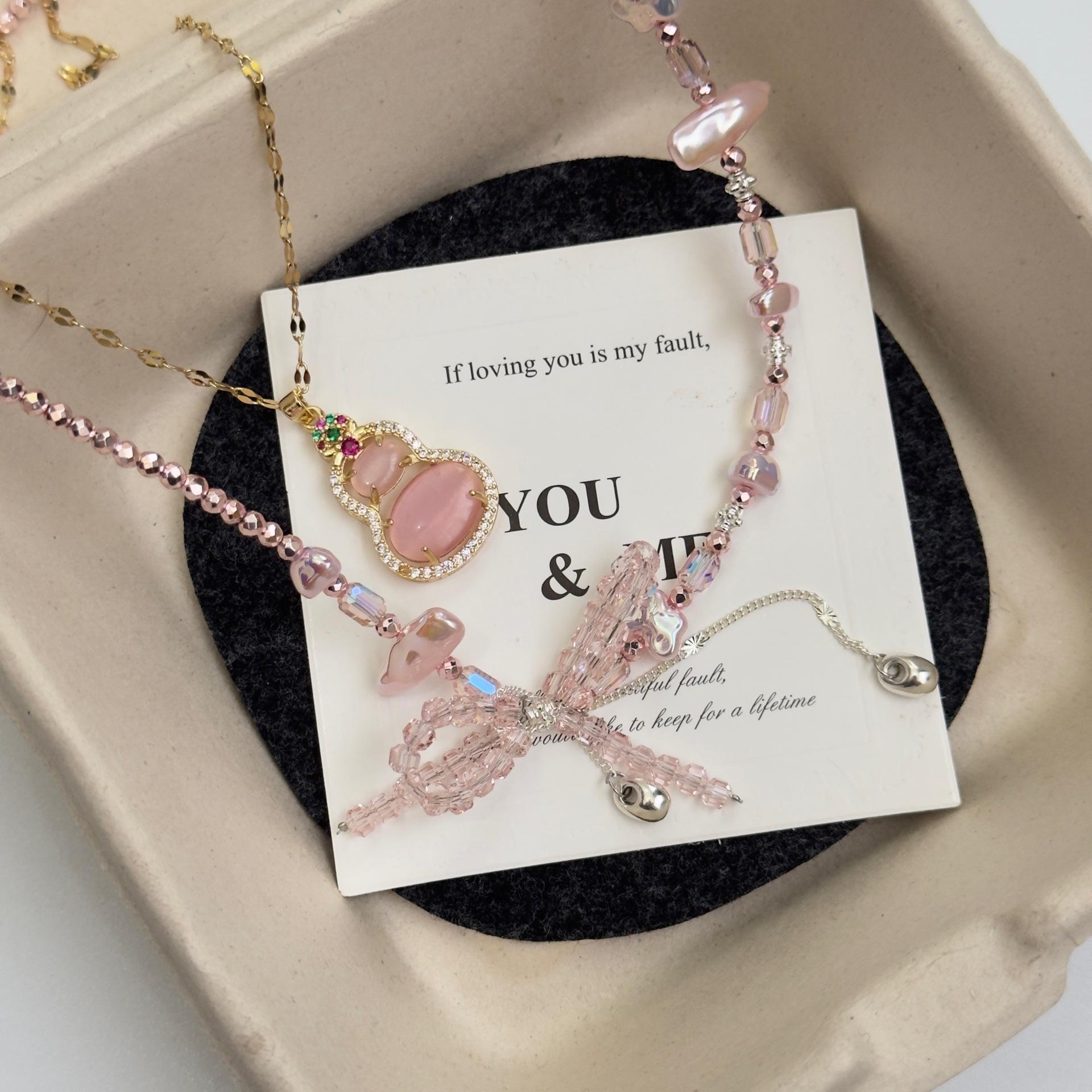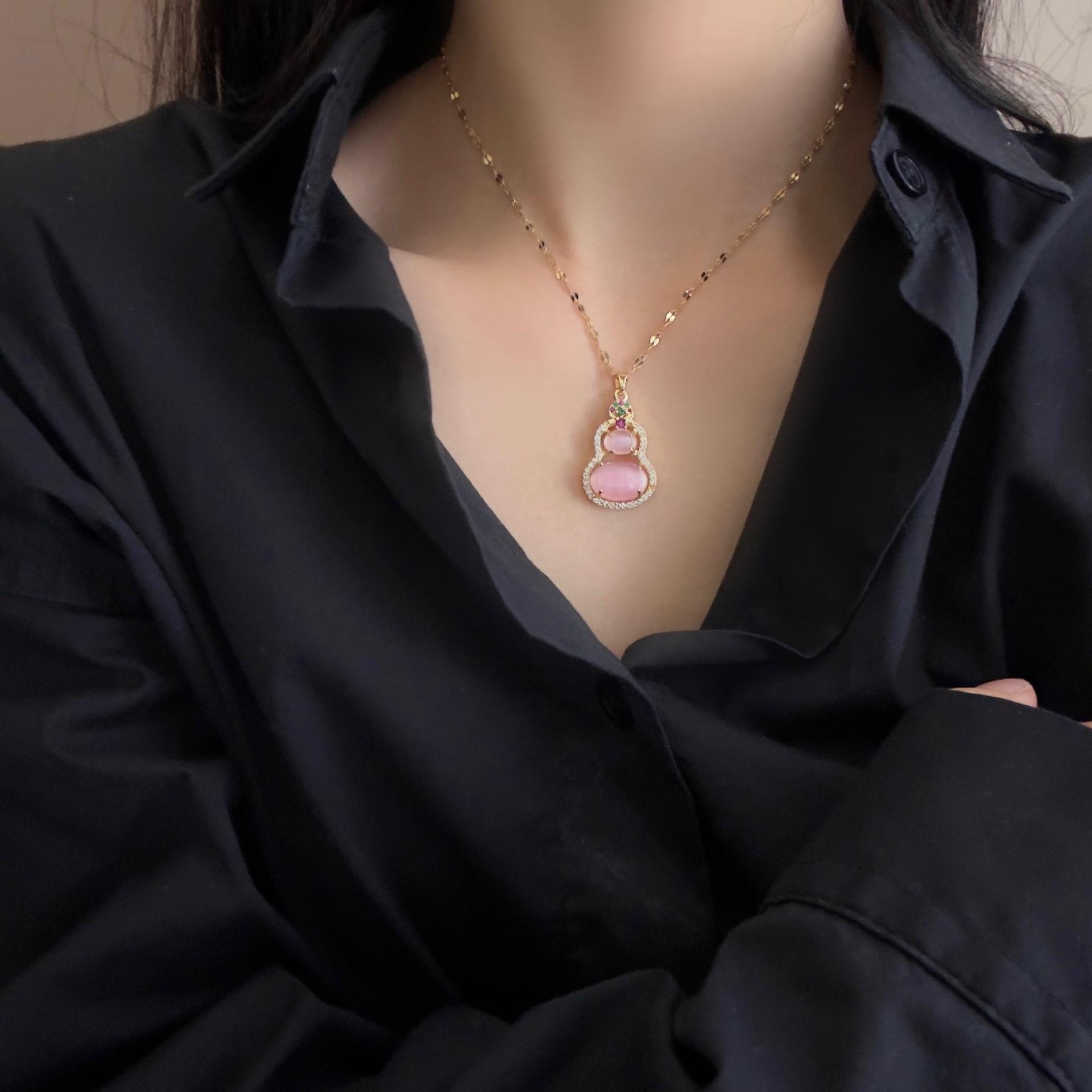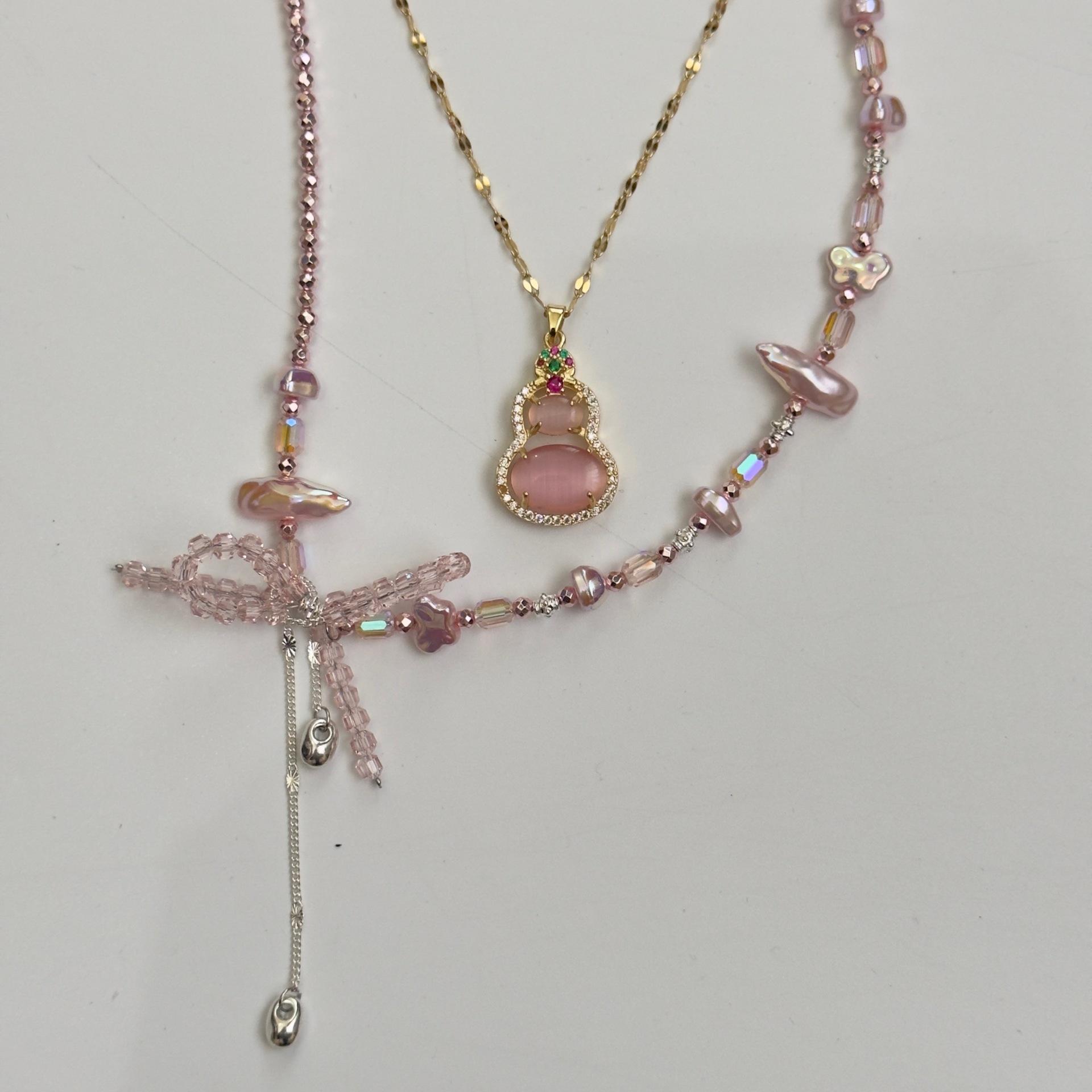 "Belleza Rosa" Nuevo Ojo de Gato Chino Calabaza Primavera y Verano Nueva Entrada Lujo Exquisito Collar Lazo Rosa