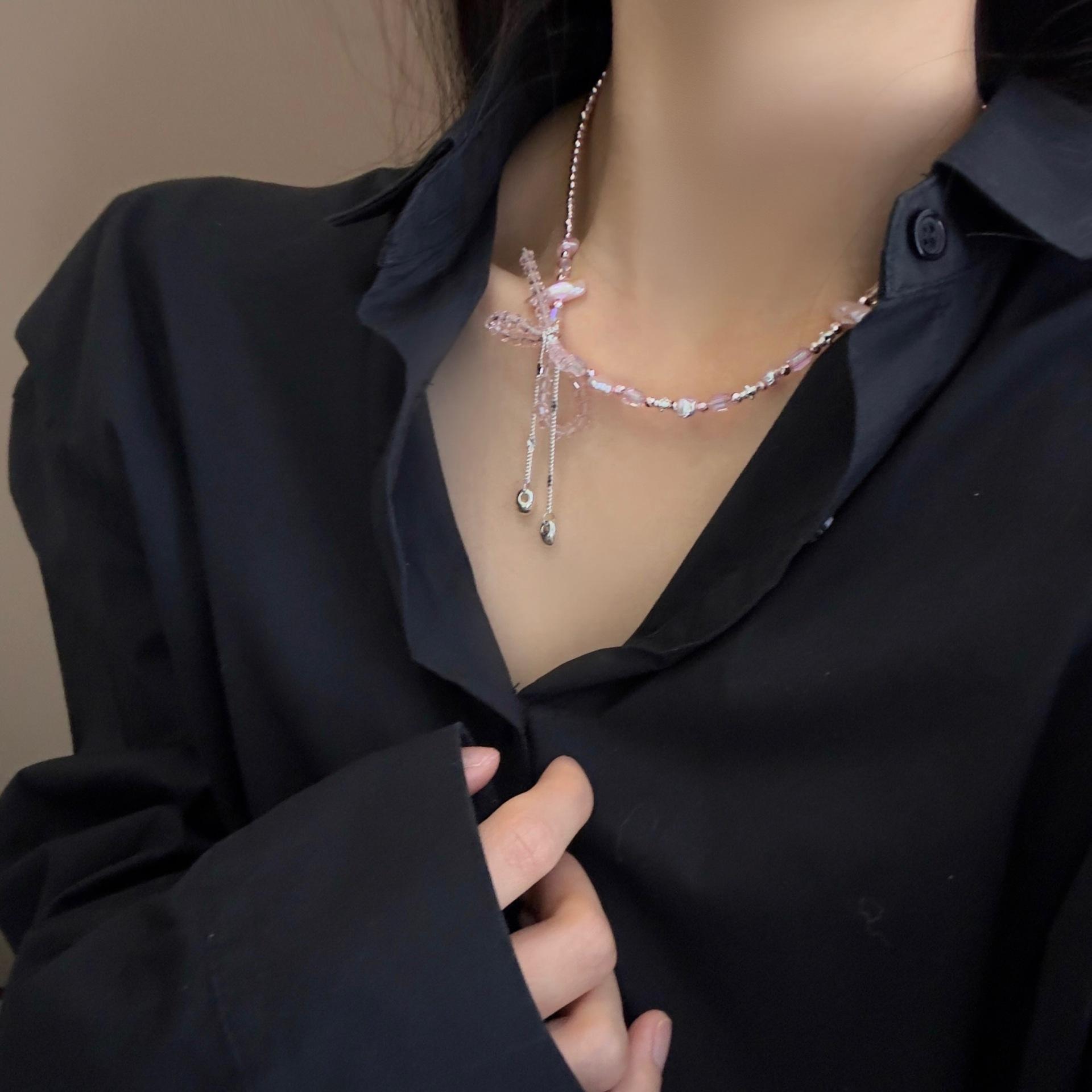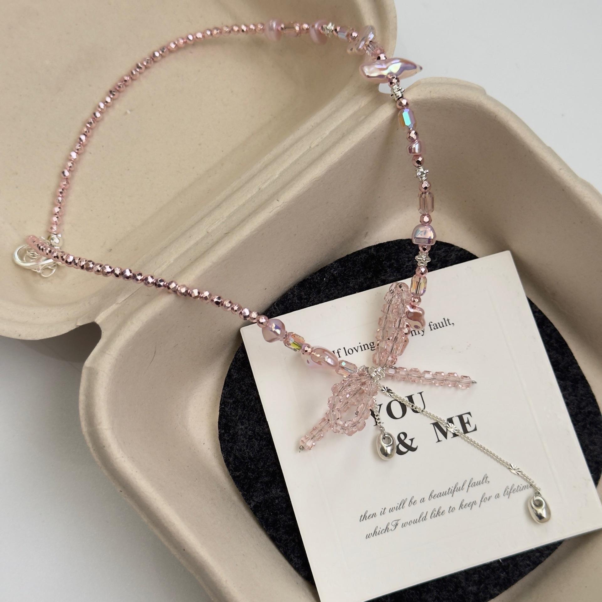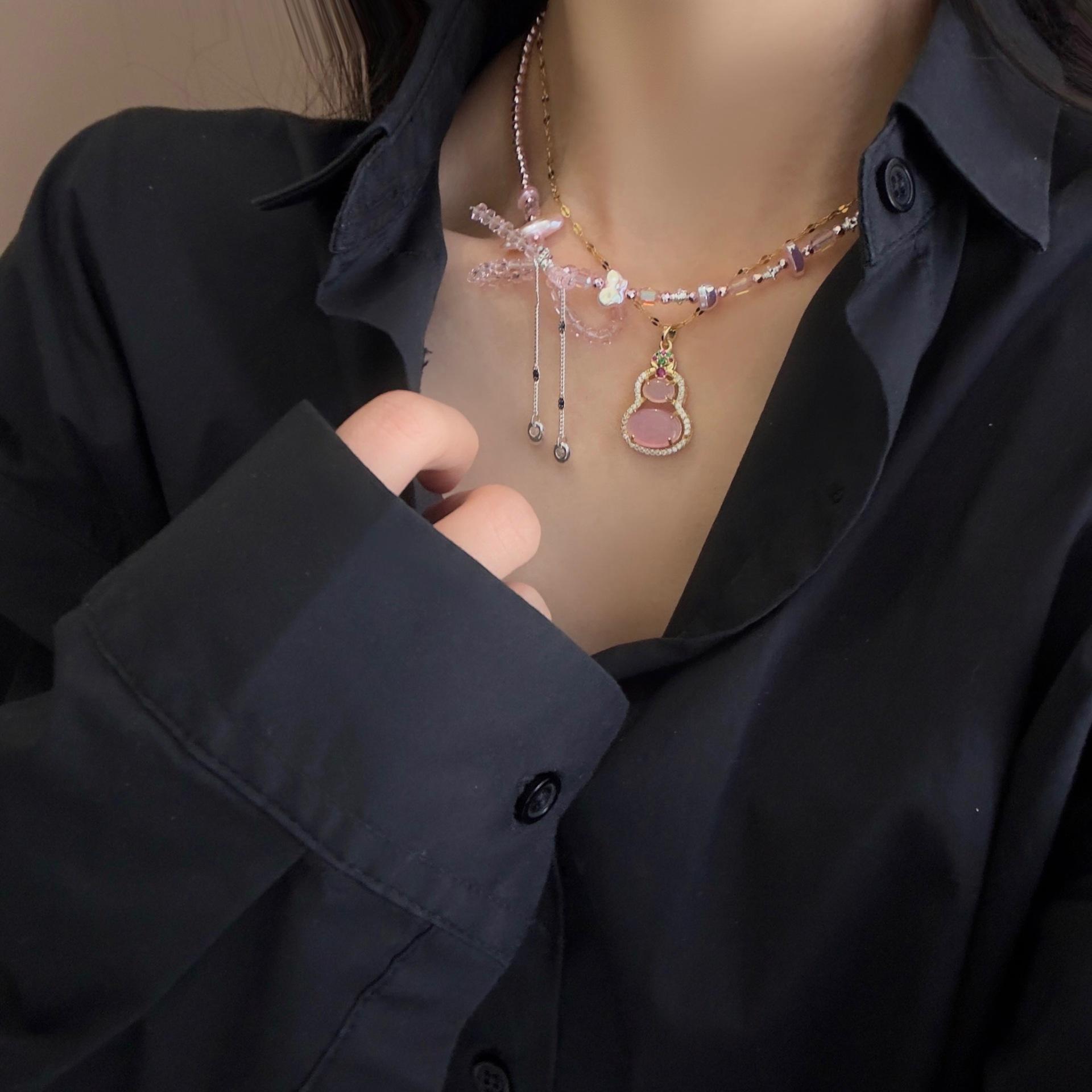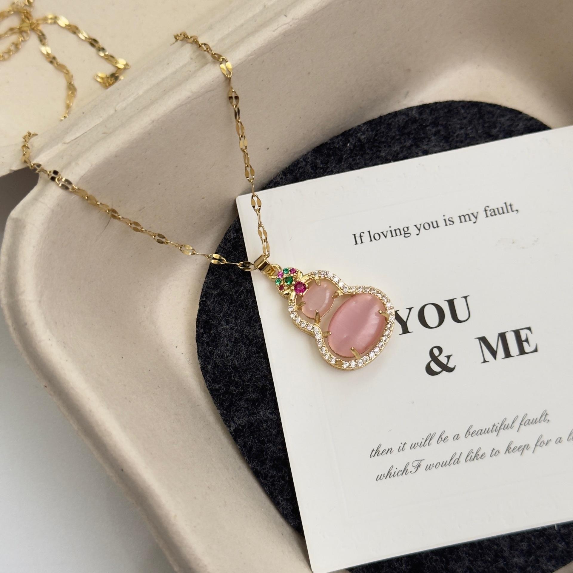 "Belleza Rosa" Nuevo Ojo de Gato Chino Calabaza Primavera y Verano Nueva Entrada Lujo Exquisito Collar Lazo Rosa