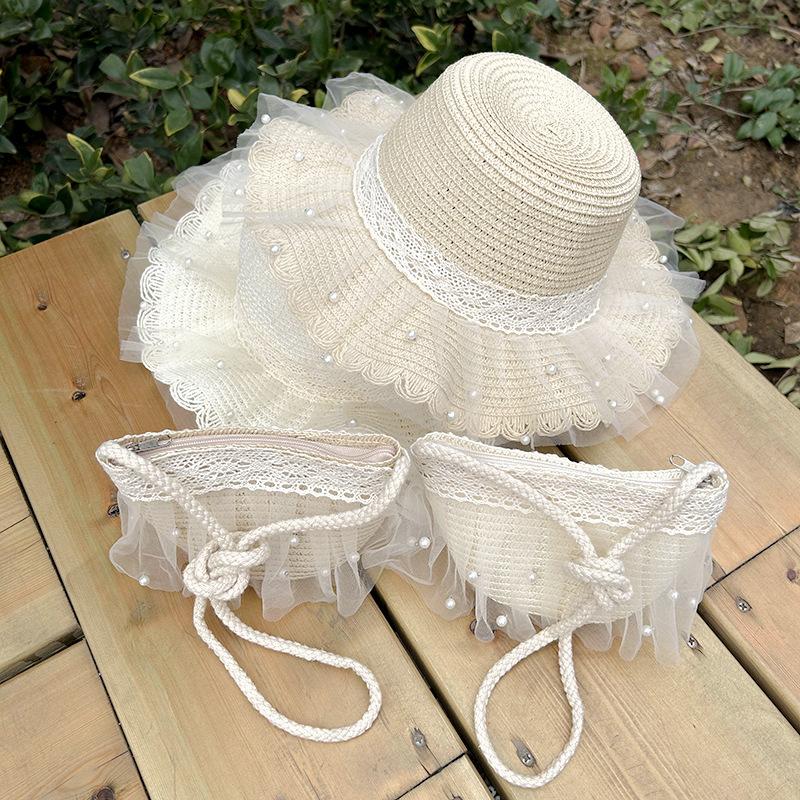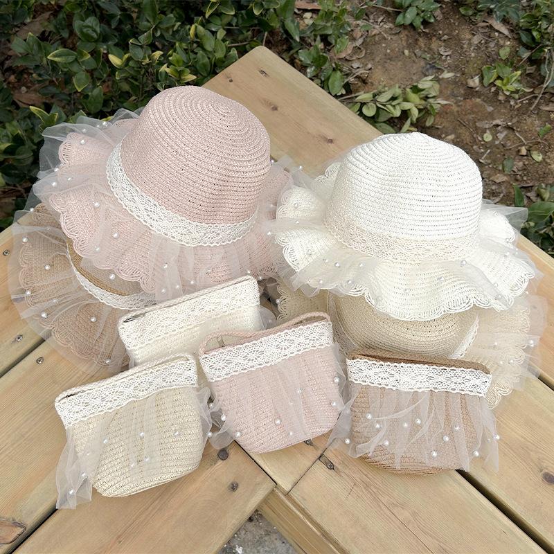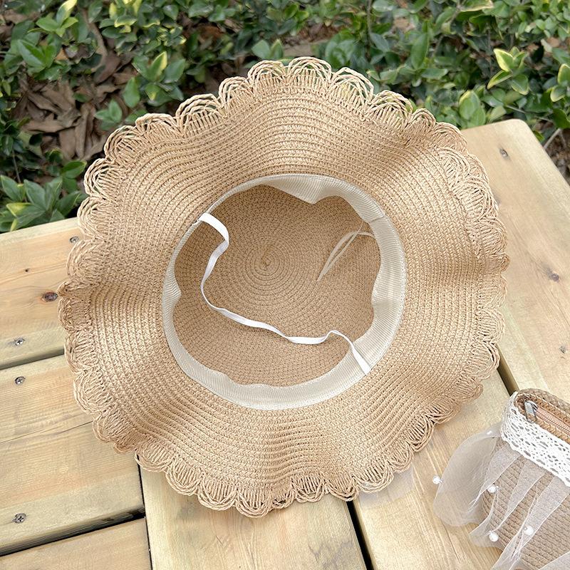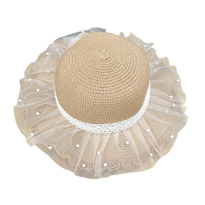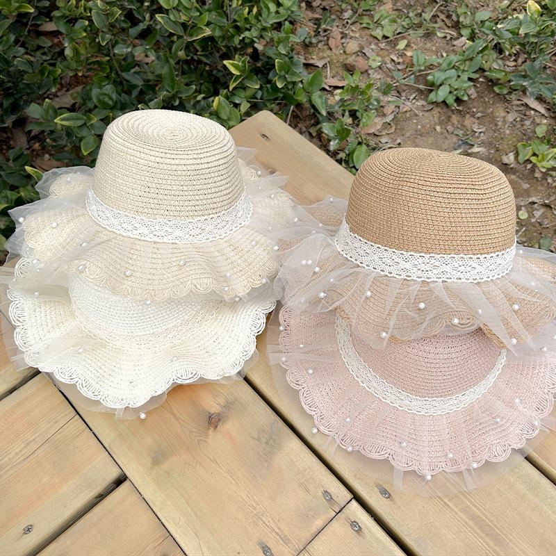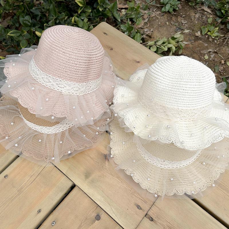 Sombrero de paja para niños, protector solar de verano para mujer, para viajes al aire libre, con encaje de malla, sombrero de pescador con protección solar