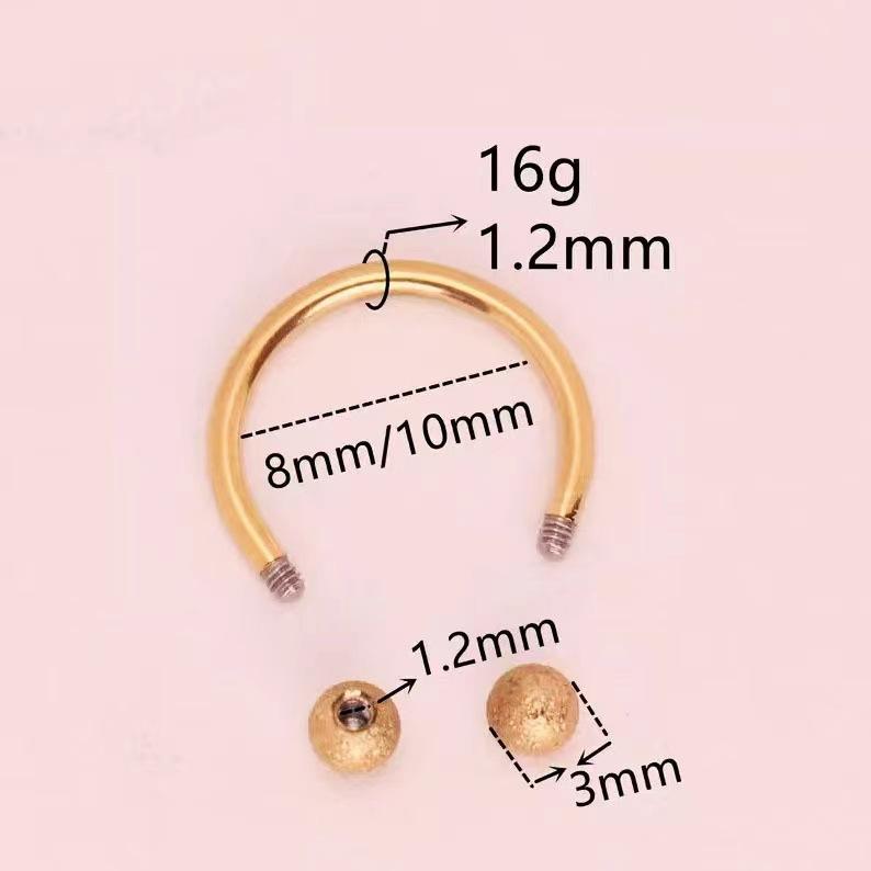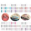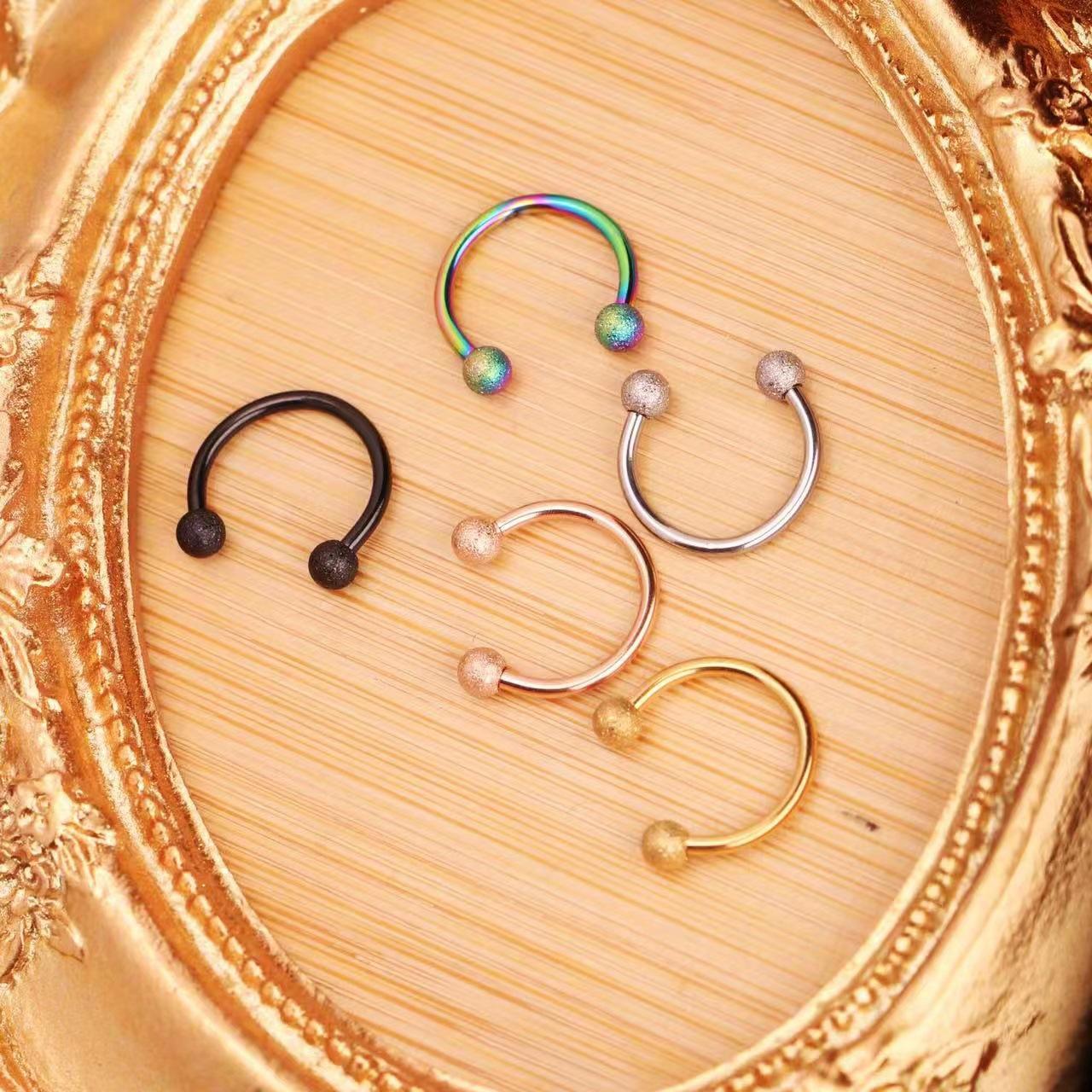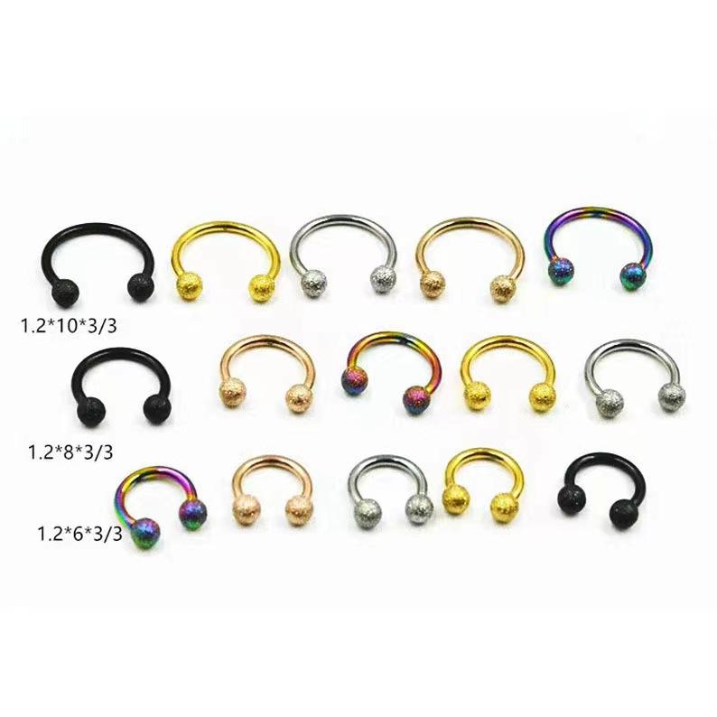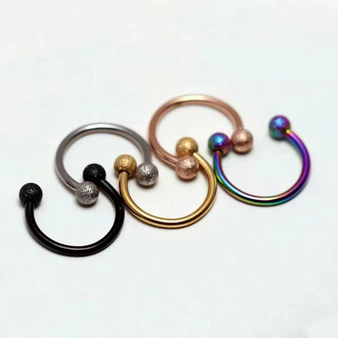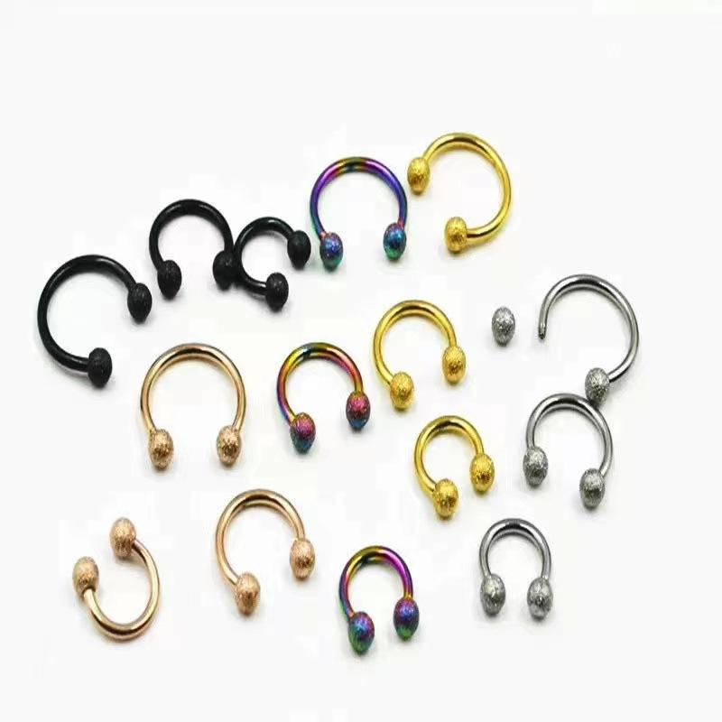 Piercing de acero inoxidable europeo y americano, tipo CU, con forma de herradura, anillo para el labio multicolor galvanizado, aretes tipo botón con bola esmerilada.