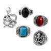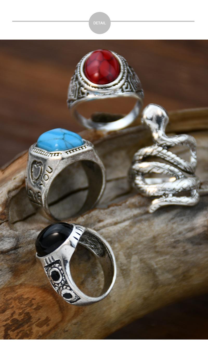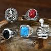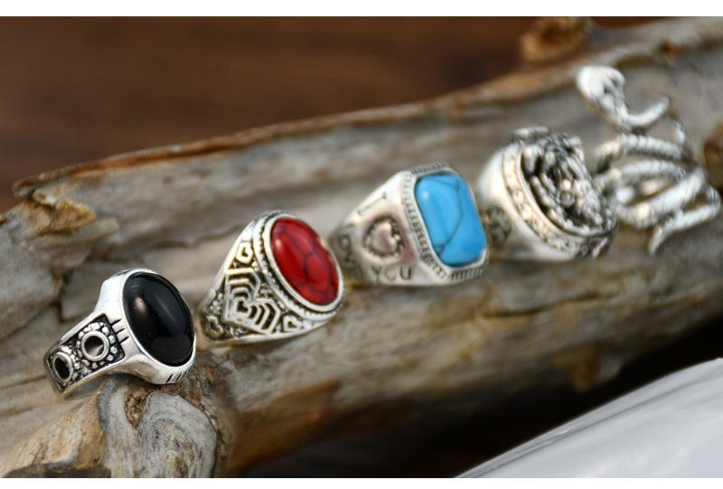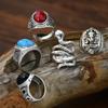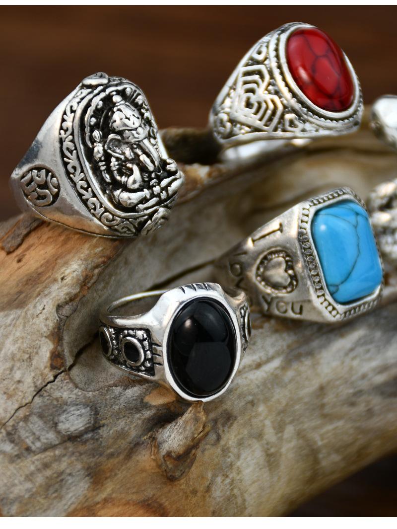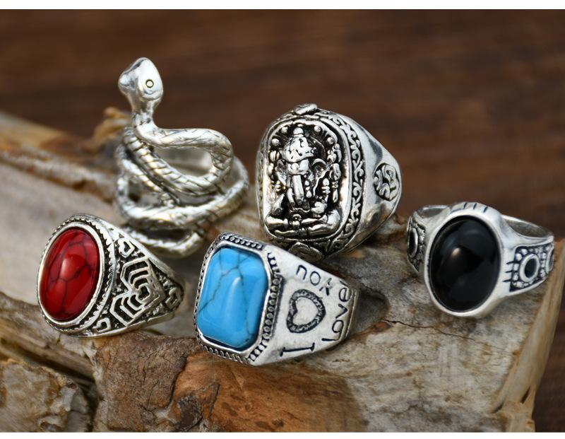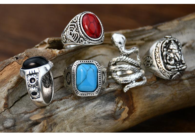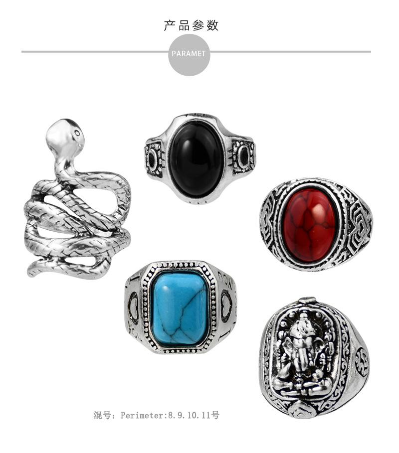 Anillo cuadrado de cinco piezas de cascabel elefante retro europeo y americano