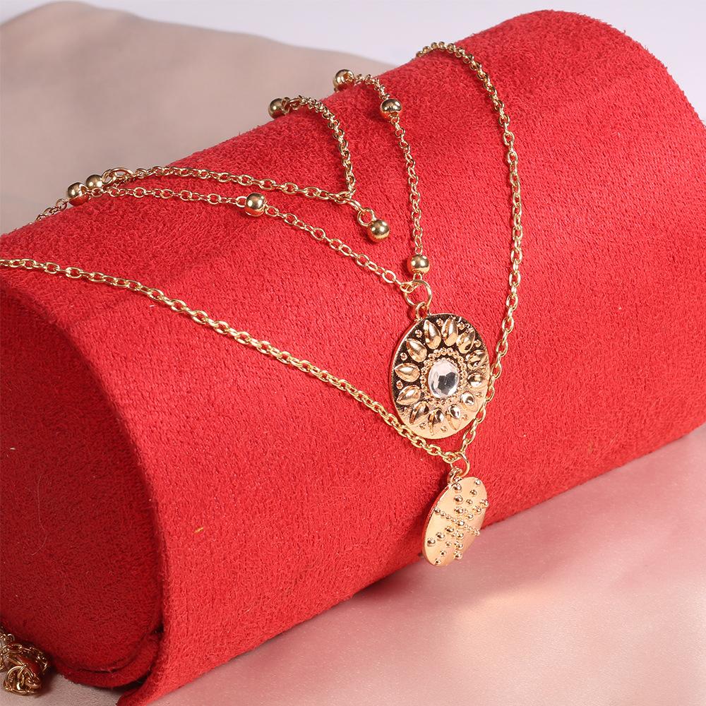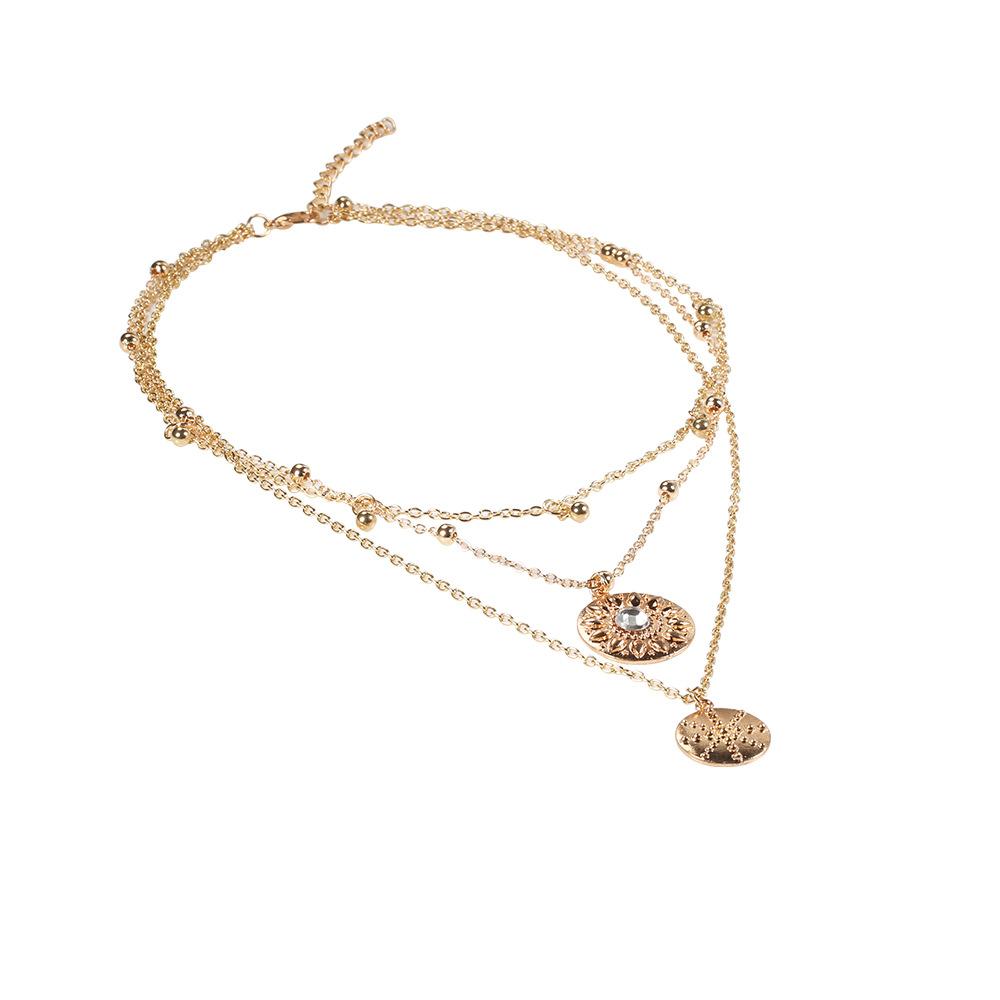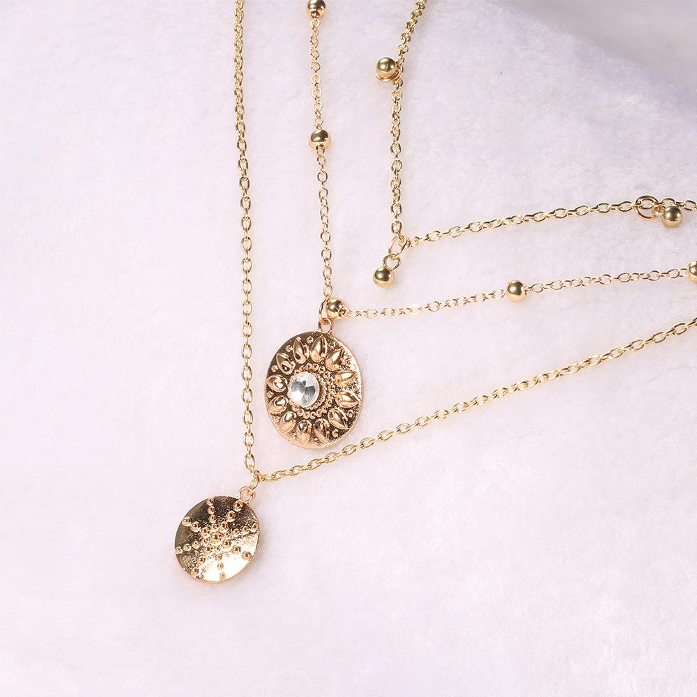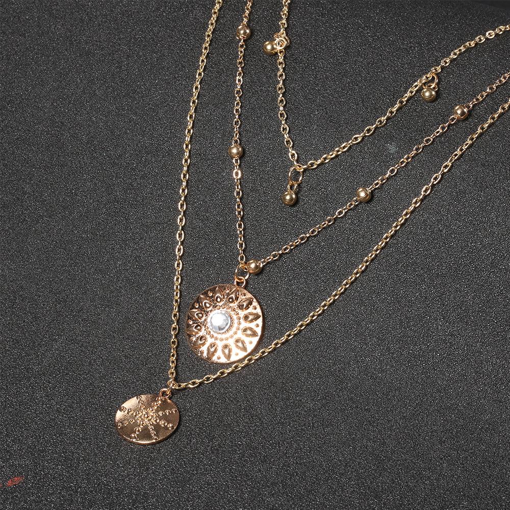 Europa y Estados Unidos Nuevo estilo nacional cuentas redondas Sol disco geométrico aleación Diamante Cristal collar/colgante multicapa