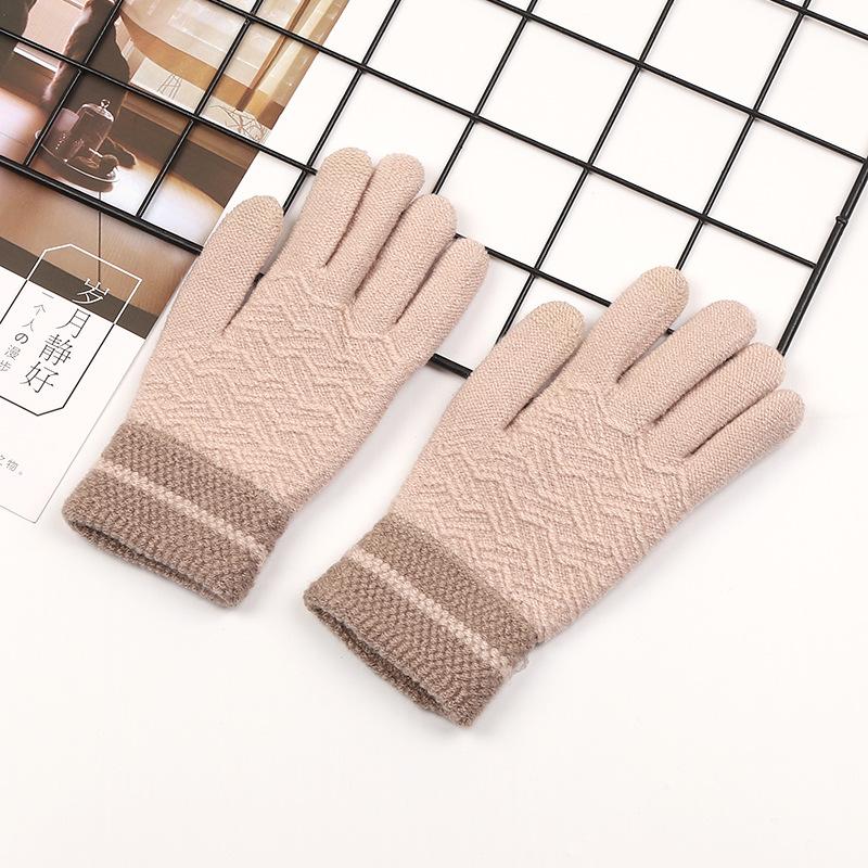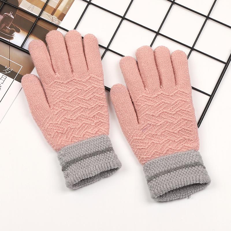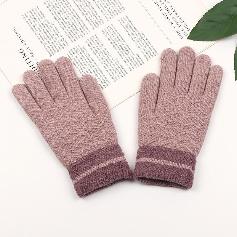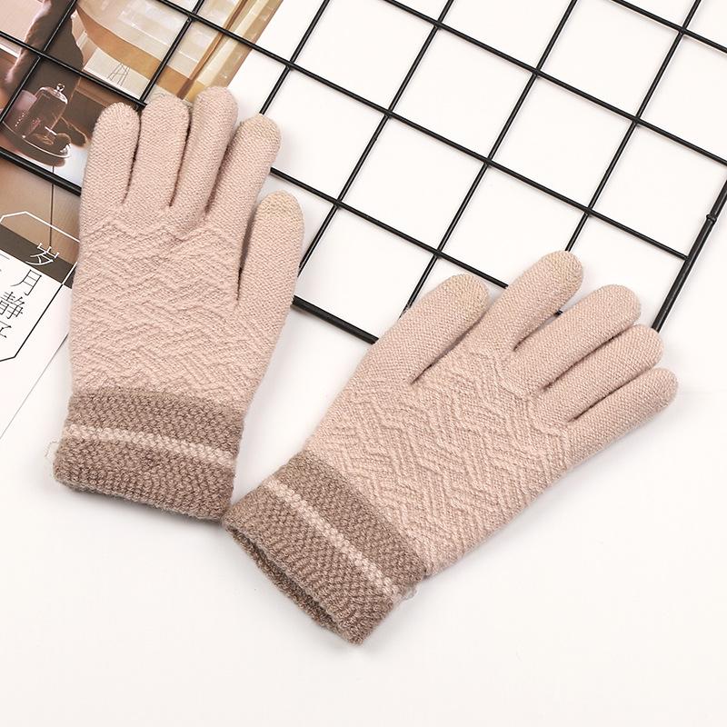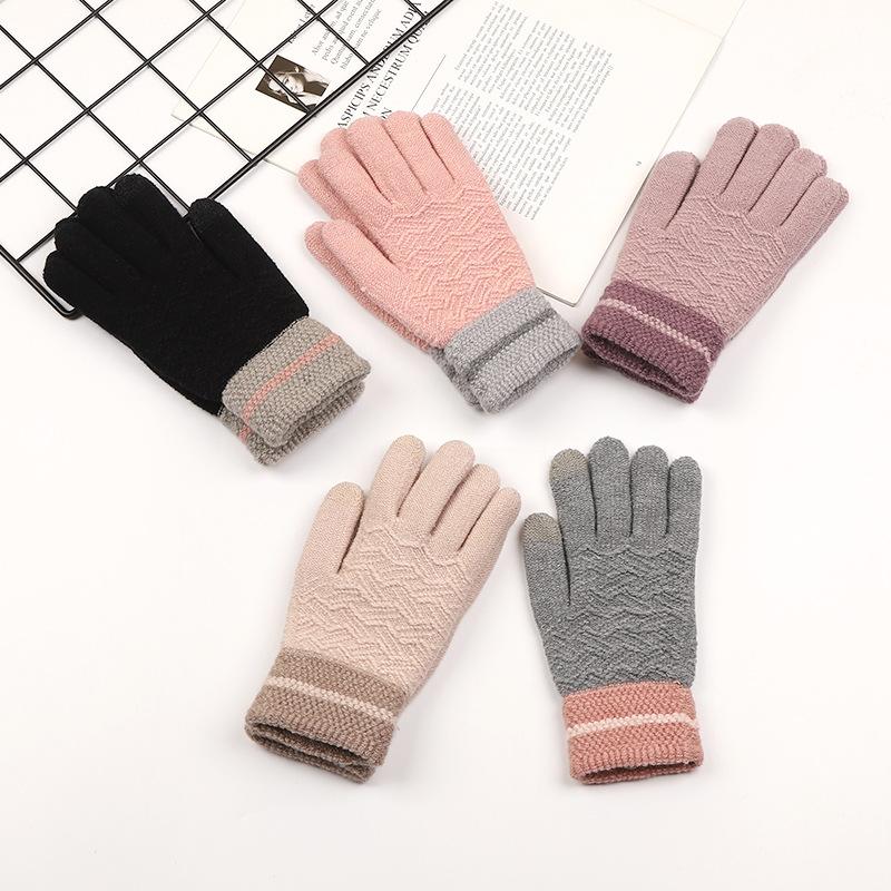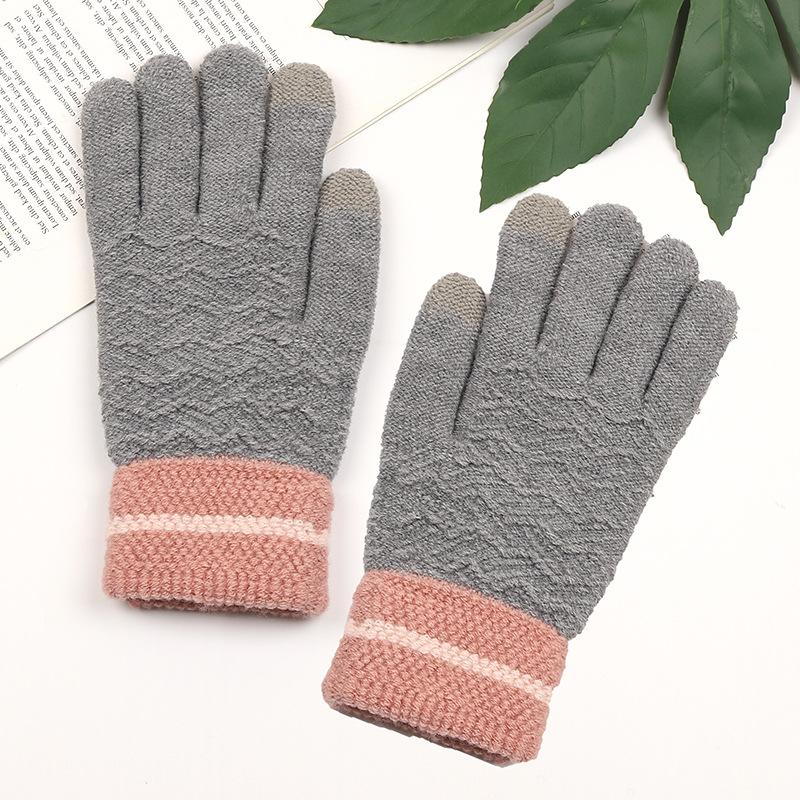Guantes cálidos para mujer, de otoño e invierno, para montar al aire libre, de moda, de colores a juego, con dedos completos, guantes de invierno con ondas de moda