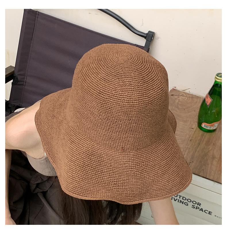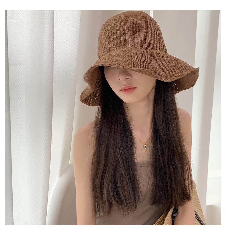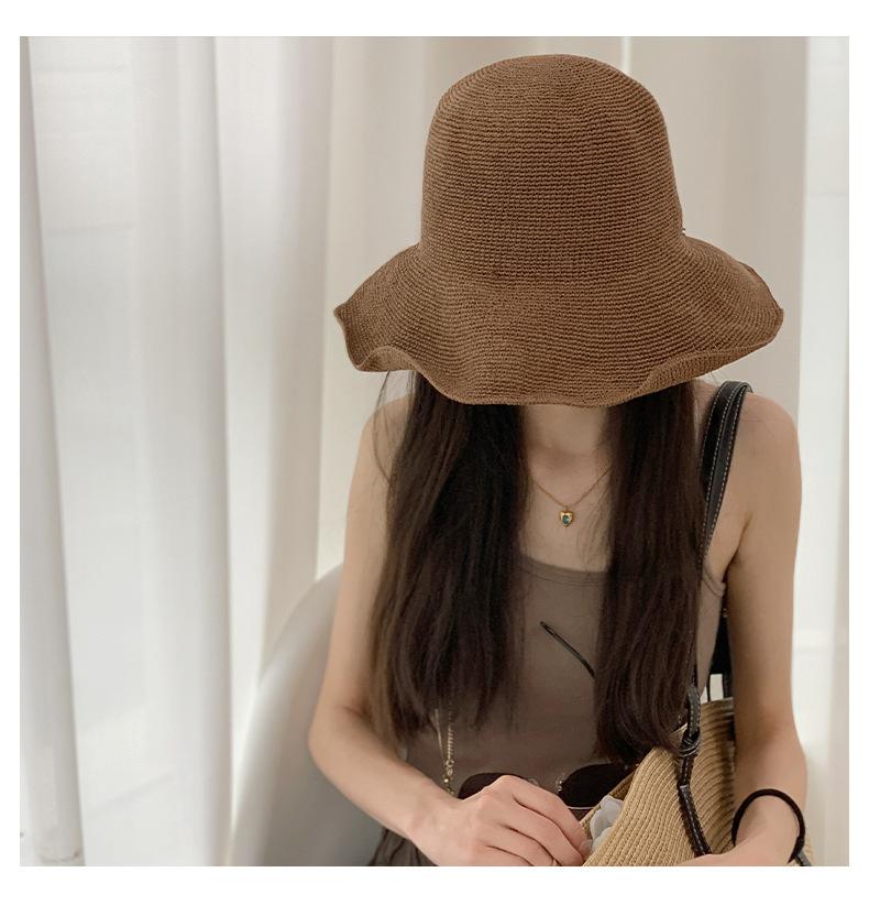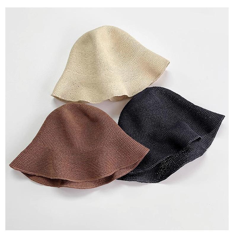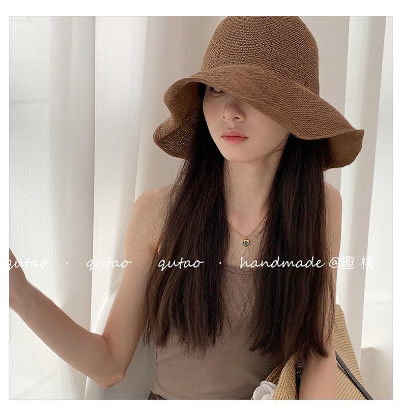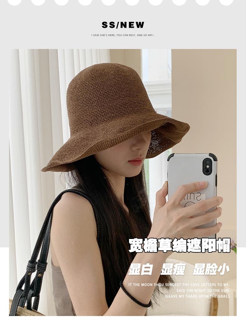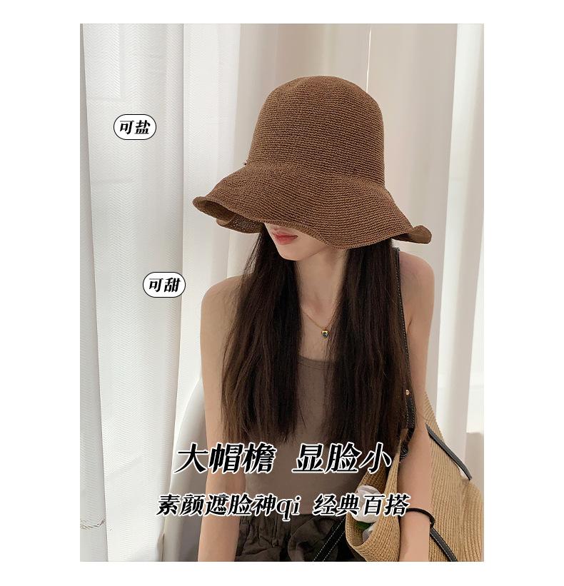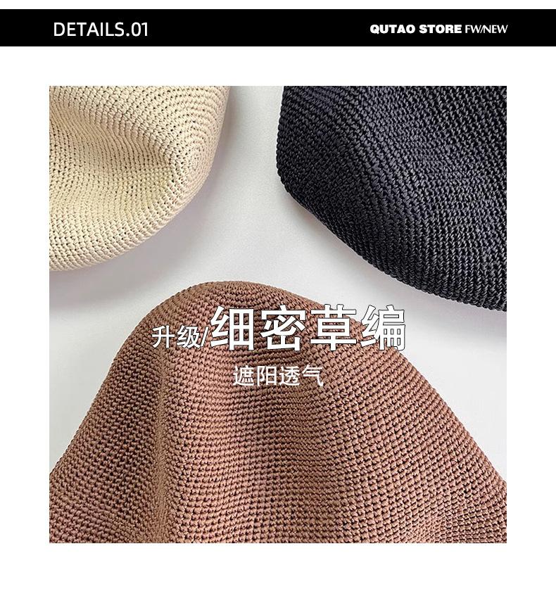 Sombrero de pescador de paja suave, tejido con papel y protector solar, sencillo y combinable, para playa, para mujer, 2024